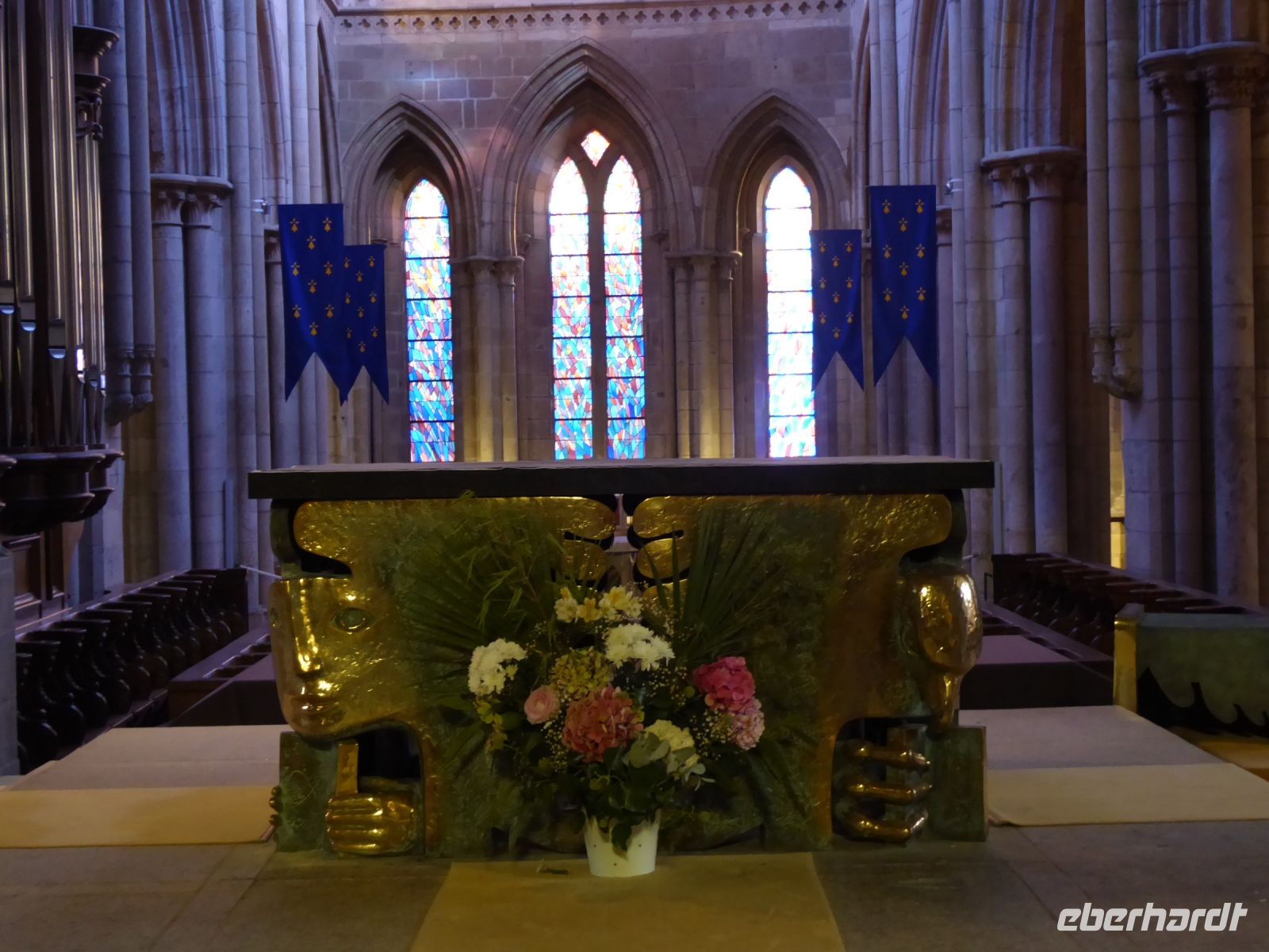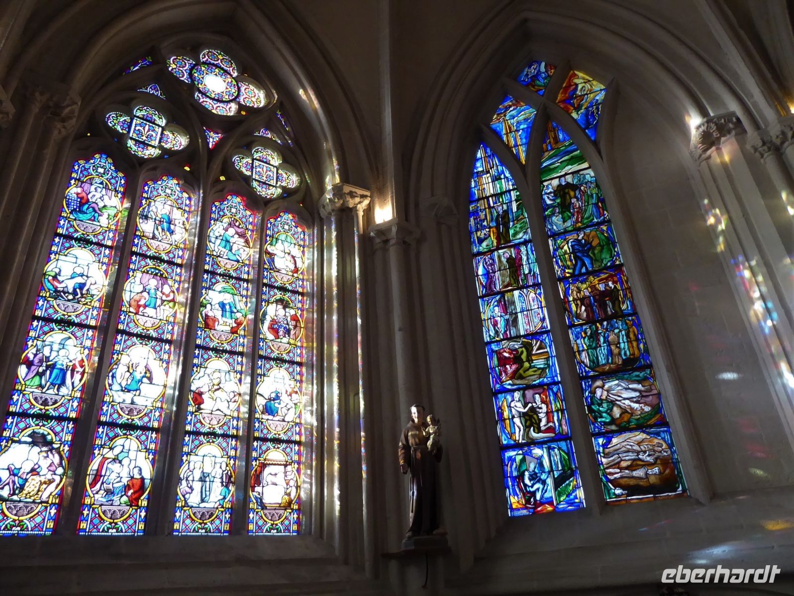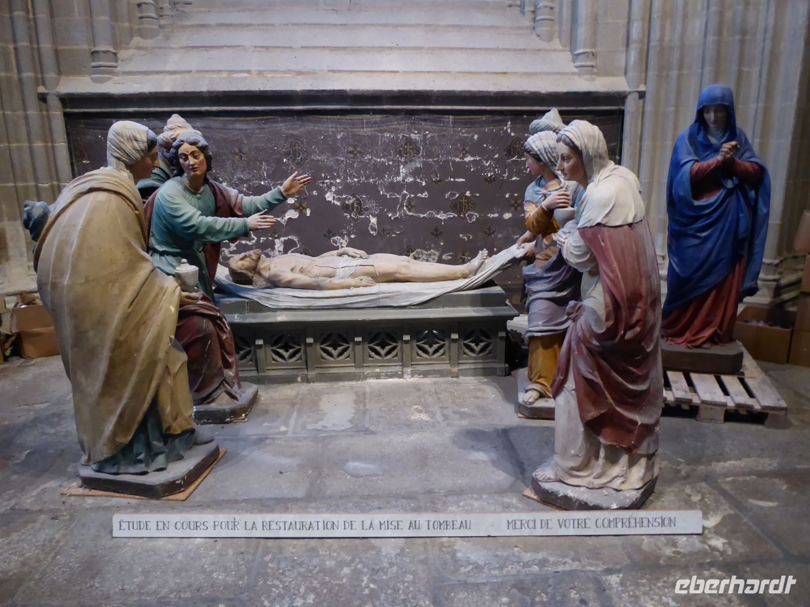 Am nächsten Morgen starteten wir zu unserer ersten Stadtbesichtigung. Das kleine Städtchen Troyes zeigte sich am Sonntagmorgen noch recht verschlafen. Wir bummelten durch die engen Gassen und bestaunten die bunten und windschiefen Fachwerkhäuser. Die Form der Altstadt erinnert an einen Champagnerkorken, worauf die Bürger der Stadt stolz hinweisen. In den dicht von Fachwerkhäusern bestandenen Straßen und Gassen spürt man bis heute den Geist des Mittelalters. Im elften Jahrhundert wurde hier Schlomo Jizchaki, der spätere Rabbiner und Gelehrte Raschi, geboren. Er ist einer der bedeutendsten jüdischen Gelehrten des Mittelalters, der auch in Worms und Mainz studierte. Thibault, der Befreier Jerusalems, schrieb hier seine Liebeslieder für Blanca von Kastilien und Chrétien de Troyes mischte christliche Tugenden, Ritterehre und Minne mit dem Mythos um die Ritter von der Tafelrunde und König Artus: im zwölften Jahrhundert wurde so hier der moderne Ritterroman geboren. Die Kathedrale St. Pierre und St. Paul wurde durch die französischen Revolutionäre ihres Figurenschmucks beraubt, doch im Inneren leuchten die wunderschönen, alten Glasfenster in ihrer ganzen Pracht. Die ganze Stadt erscheint heiter und lebensfroh. Wir schlenderten durch die gepflegten Parkanlagen, schnuppern an duftenden Rosen und bewunderten das alte Karussell aus der Zeit der Jahrhundertwende. Von den originellen modernen Skulpturen hat es uns besonders die fröhliche Kinderschar des belgischen Künstlers Tom Frantzen angetan, die sich gut gelaunt zum Bad im kühlen Nass der Seine am Ufer des Flusses trifft. Gerne wären wir noch länger in dieser netten, sympathischen Stadt geblieben, doch bis Vannes in der Bretagne lag noch ein weiter Weg vor uns.