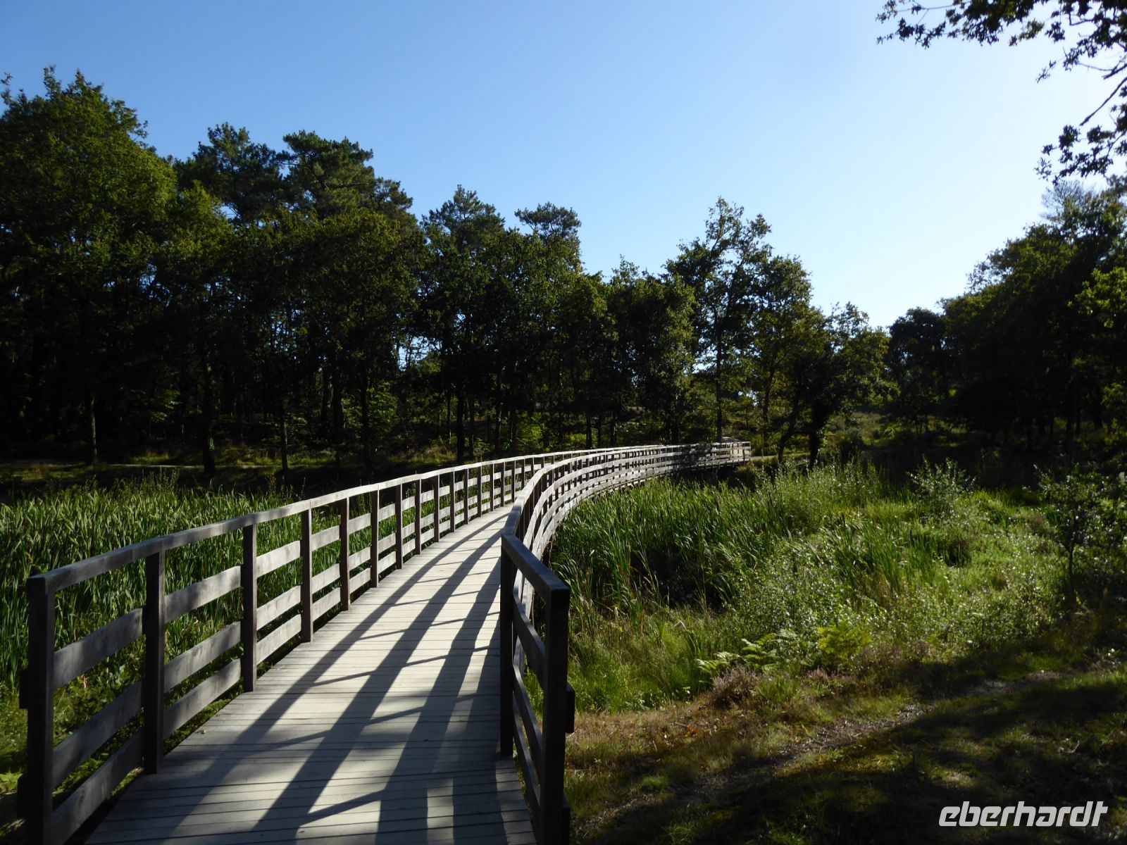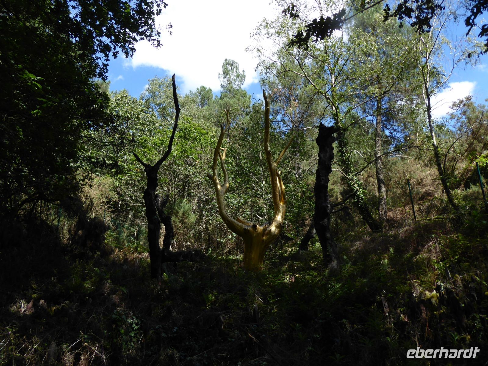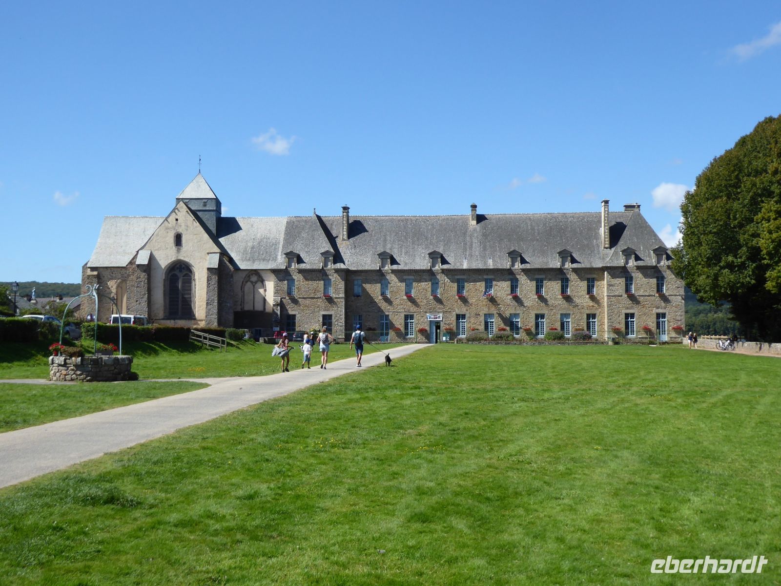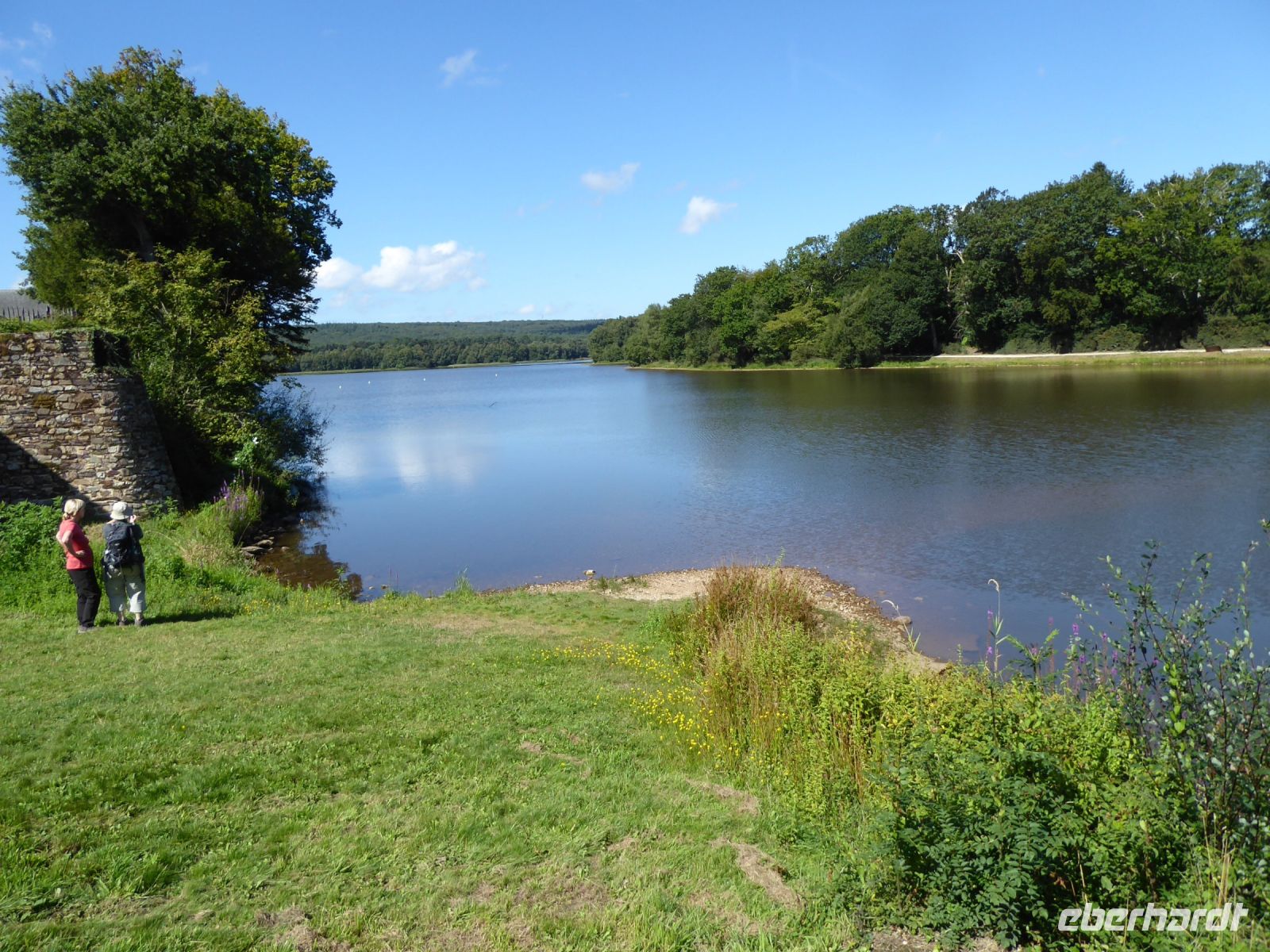 Bevor wir heute zu unserer ersten gemeinsamen Wanderung aufbrachen, widmeten wir uns noch der Stadt Vannes. Vor dem beeindruckenden Château de l'Hermine, das seinen Namen „Hermelinschloss“ dem Wappentier des Herzogs Jean IV verdankt, erzählte uns Christine, unsere Stadtführerin, eine waschechte Bretonin, Wissenswertes, Kurioses und Amüsantes von ihrer Stadt. Hunderte Segelschiffe schaukeln auf den Wellen und die Innenstadt wartete noch auf Besucher. Wir spazierten entlang der Stadtmauer und gelangten zum alten Waschhaus an der Marle. Christine zeigte uns auch ein lustiges Streetart Kunstwerk zweier Künstler aus Italien, ein blauer Schlumpf mit einem roten Halstuch, der den rebellischen Geist der Bretonen liebevoll auf die Schippe nimmt. Der Stadtgraben wird seit Jahrzehnten als wunderschöne Parkanlage zu Füßen des Schlosses und der Stadtmauer gestaltet. Von dem in allen Farben leuchtenden blühenden Wildkräutergarten entlang der trutzigen Mauern konnten wir uns fast nicht trennen. Über holpriges Kopfsteinpflaster gelangten wir durch das hintere Stadttor, Port Prison, wieder in den alten Stadtkern mit seinen pittoresken Plätzen und Fachwerkhäusern. An der Place de Lices, auf der im Mittelalter Turniere ausgetragen wurden, stehen moderne Stadtvillen neben alten Fachwerkhäusern. Die Fassaden leuchten in fröhlich bunten Farben. Viel zu schnell verging die Zeit, doch es reichte noch für einige Einkäufe für unsere erste Wanderung. Unser Fahrer Heiko brachte uns über kleine Nebenstraßen in den sagenumwobenen Wald von Brocéliande. Dieser Wald ist der Legende nach der Schauplatz der Artussage und es wimmelt geradezu von mystischen Plätzen. Zwischen Weihern, Quellen, Felsen und Dickicht sind der Fantasie keine Grenzen gesetzt und allein bei der Nennung des Namens Brocéliande denkt man unweigerlich an den Zauberer Merlin, Viviane und an den Ritter Lanzelot. Die Abtei Paimpont liegt idyllisch an einem wunderschönen See und die Kapelle wartet mit unerwarteten Kunstschätzen auf. Unsere erste gemeinsame Wanderung führte uns zur Quelle von Barenton. Gespannt auf die kommenden Tage setzten wir unseren Weg fort und erfreuten uns an den herrlichen blühenden Sträuchern und dem lichten Wald. Die kleine Kirche in Tréhorenteuc, einem kleinen Ort, der sich seit siebzig Jahren zum Zentrum der Gralssucher entwickelt hat, überraschen die bunten Glasfenster: auf der einen Seite wird das heilige Abendmahl dargestellt, auf der anderen Seite versammeln sich die Ritter der Tafelrunde um den Heiligen Gral. Wie viele Franzosen, die das schöne Wetter für eine Wanderung mit der Familie nutzten, spazierten auch wir weiter in das Tal ohne Wiederkehr, in dem Morgane le Fey ihre Liebhaber, allesamt untreue Ehemänner, gefangen hielt. Wir machten einen kurz Stopp am Arbre d´Or, dem goldenen Baum, einem Kunstobjekt des französischen Bildhauers François Davin. Das Kunstwerk ist 1991 entstanden, nachdem ein verheerender Waldbrand große Teile des Zauberwald zerstörte. Vorbei an den Seen der Feen erreichten wir nach einem kurzen Aufstieg das Hochplateau, von dem aus wir einen herrlichen Ausblick über das unberührt scheinende Waldgebiet genossen. Ganz so unberührt ist das Waldgebiet jedoch nicht: Hunderte junge und alte Menschen aller Nationen und sicherlich ebenso viele Hunde bevölkerten den Wanderweg. Glücklicherweise blieb der Sturz einer unserer Mitwanderinnen ohne schwere Folgen und wir erreichten mit vereinten Kräften über einen bequemen Feldweg wieder das Tal, wo uns im Schatten alter Bäume unser Reisebus schon erwartete.
