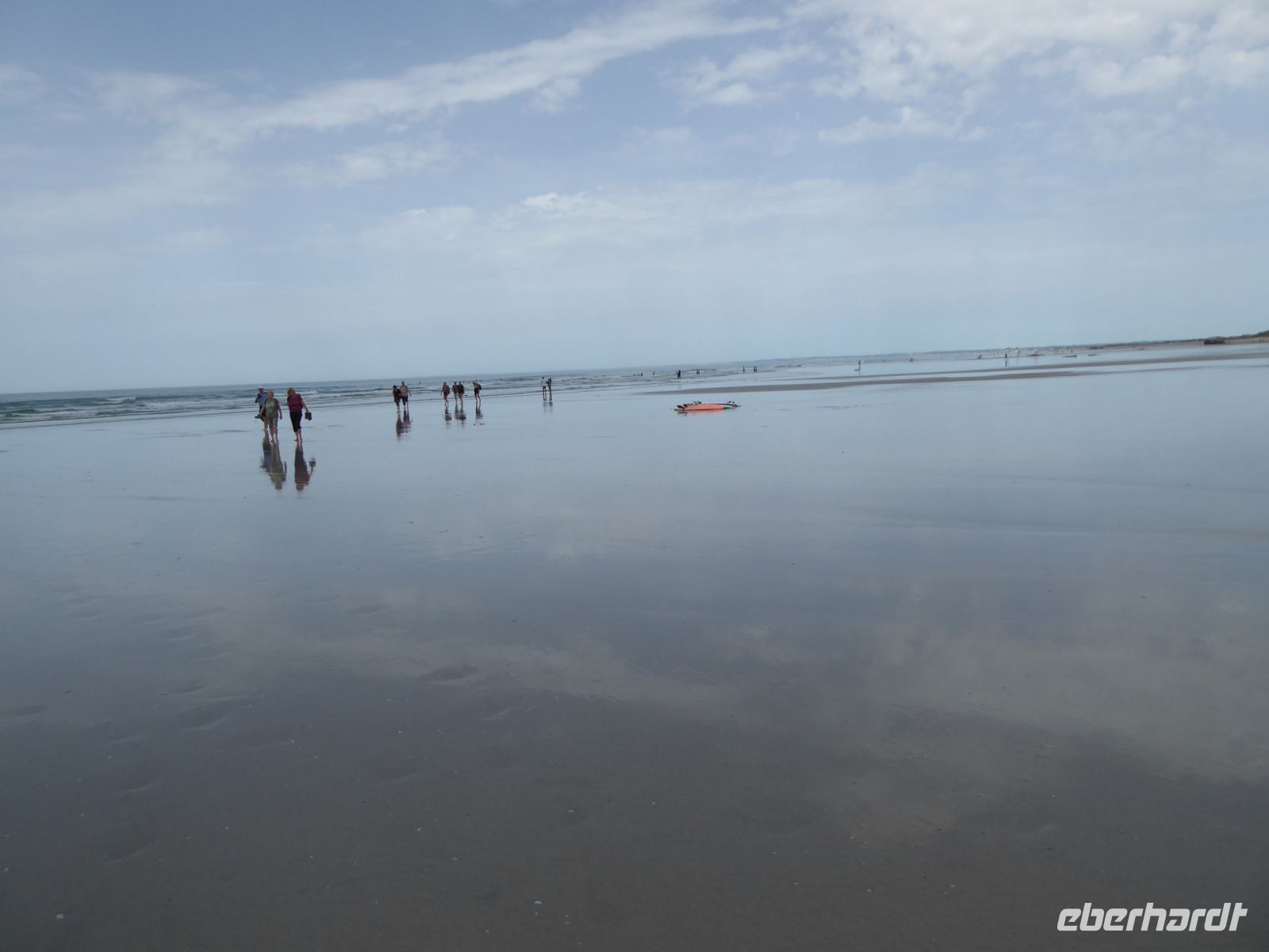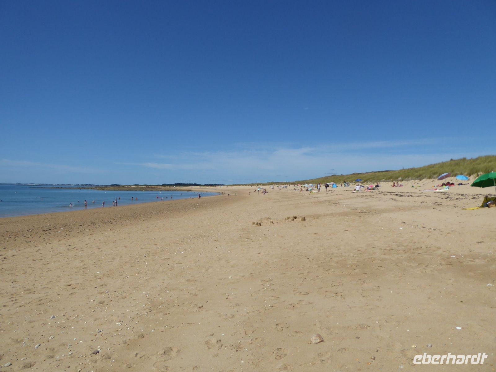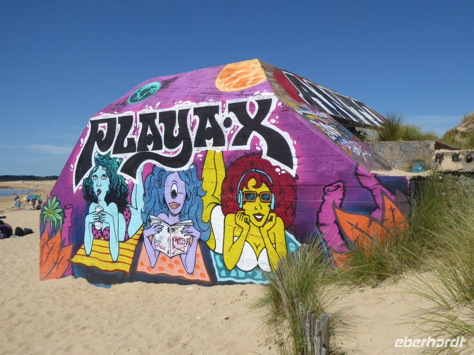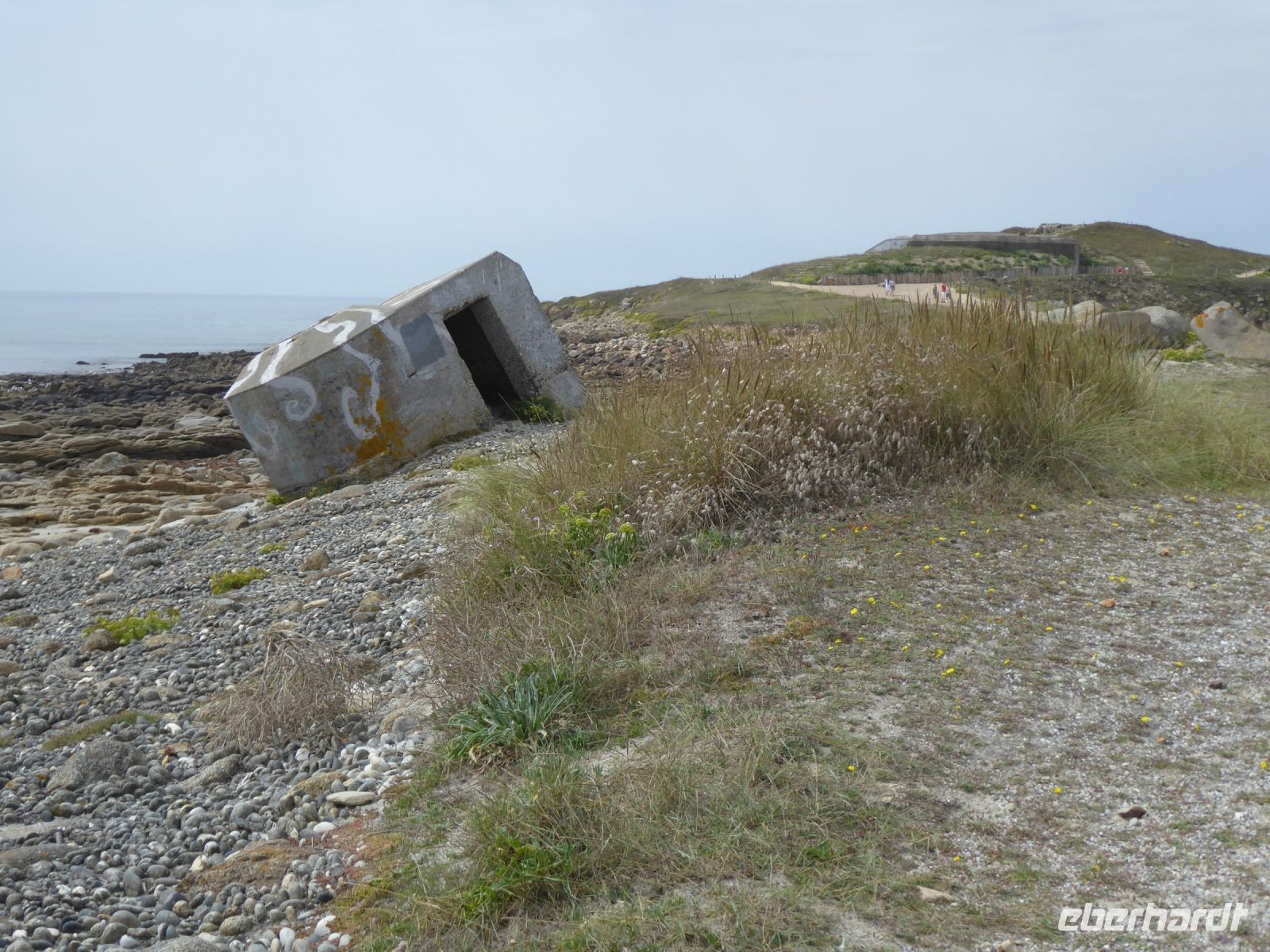 Gleich am nächsten Morgen brachen wir auf nach Concarneau. Früh am Morgen waren noch wenige Touristen in der Ville Close, der der Stadt vorgelagerten Seefeste, die deutlich die Handschrift Vaubans, des großen Festungsbaumeisters Ludwigs XIV trägt. Bunte Fahnen, die die Weltoffenheit der Hafenstadt unterstreichen, begrüßen die Besucher. Von den massiven Wehrmauern hat man einen schönen Blick auf die Uferstraße. Dort befindet sich das legendäre Stammlokal, l´Amiral, des (fiktiven) Kommissar Dupin. Unter dem Pseudonym Jean-Luc Bannalec hat 2012 der Autor und Verleger Jörg Bong einen neuen Serienhelden geschaffen, dessen Einsatzgebiet in der Bretagne ist. Pünktlich zu den Sommerferien ist der zwölfte Band der Serie erschienen. Die Romane wurden vor der herrlichen Kulisse der Bretagne verfilmt und haben, vor allem in Deutschland, einen unglaublichen Bretagne Boom ausgelöst. Auch wir ließen uns von diese Stadt in ihren Bann ziehen, schlenderten durch die engen Gassen, stöberten in den pittoresken Läden und entdeckten, für sich und die Daheimgebliebenen, das eine oder andere Mitbringsel, darunter auch die berühmten Öl Sardinen, die über große Handelsketten mittlerweile auch in Deutschland zu bekommen sind. Die wunderschönen Fischdosen der lokalen kleinen Hersteller findet man allerdings nur hier! Nach einem kleinen „Ekspresso“ im Amiral ging unsere Fahrt weiter nach Tronoën, wo wir vor unserer Wanderung einen der ältesten Kalvarienberge der Bretagne aus dem fünfzehnten Jahrhundert besichtigten. Er ist ein beeindruckendes Zeugnis der Volksfrömmigkeit der Region. Unser Weg führte uns direkt zu den Dünen und dort entlang der herrlichen Küste barfuß über den weißen Sand der Baie d´Audierne. Bei herrlichem Wetter und leichtem Wind genossen wir die kostenlose Thalasso-Therapie! Wir umrundeten eine kleine Halbinsel zur Pointe de la Torche, auf der sich die Zeugnisse der Geschichte seltsam summieren: ein Dolmen und daneben eine große Bunkeranlage aus dem Zweiten Weltkrieg. Überall in der Bretagne liegen am Strand die kleinen Wachbunker des Atlantikwalles, wie Würfel, von Teufelshand geworfen. Auch die nächste Bucht, Pors Carn, bei Penmarch lockte mit weißem Sandstrand und so sprangen wir fast ausnahmslos ins Meer, das bei aufkommende Flut wunderschöne Wellen bis weit an den Strand brachte und uns im flachen wärmeren Wasser angenehm umspülte. Nach der Erfrischung stiefelten wir weiter bis Sankt Guenolé, vorbei an bizarren Felsformationen, die im smaragdblauen Wasser der Cornouaille-Küste um die Gunst der Betrachter wetteiferten. Nach gut elf Wanderkilometern beendeten wir dort unseren Tag mit einem kleinen Blick auf einen Flohmarkt, an dessen Rand unser Bus schon auf uns wartete. Zum Abendessen waren wir in einer kleinen Crêperie in Quimper eingeladen, wo uns Nathalie und ihr Team mit leckeren Galettes aus Buchweizenmehl, feinen süßen Crêpes und viel frischem Cidre bewirtete. Ein schöner Ausklang eines schönen Tages!
