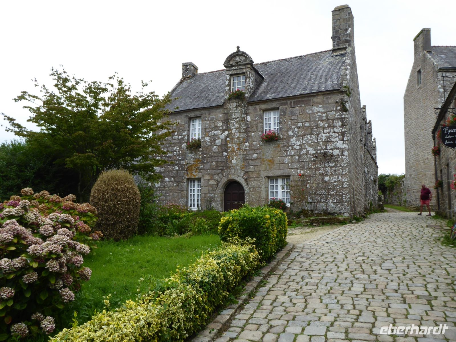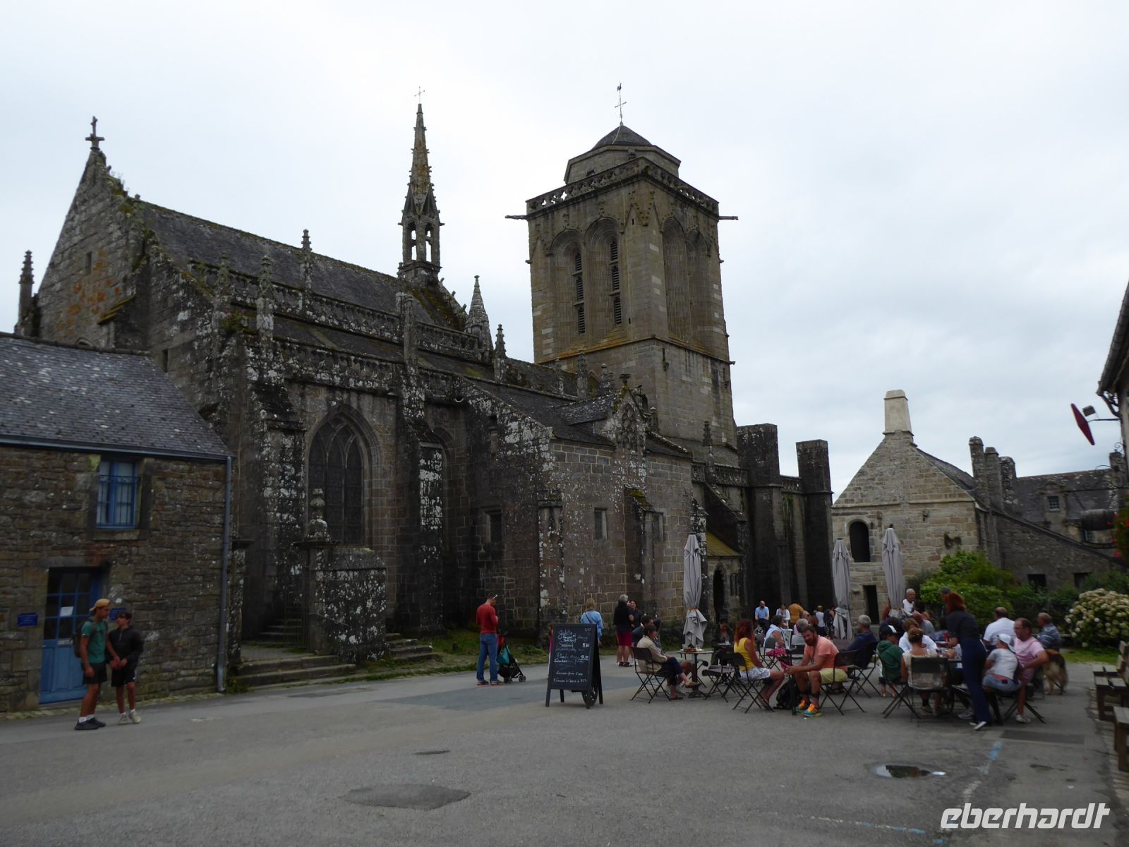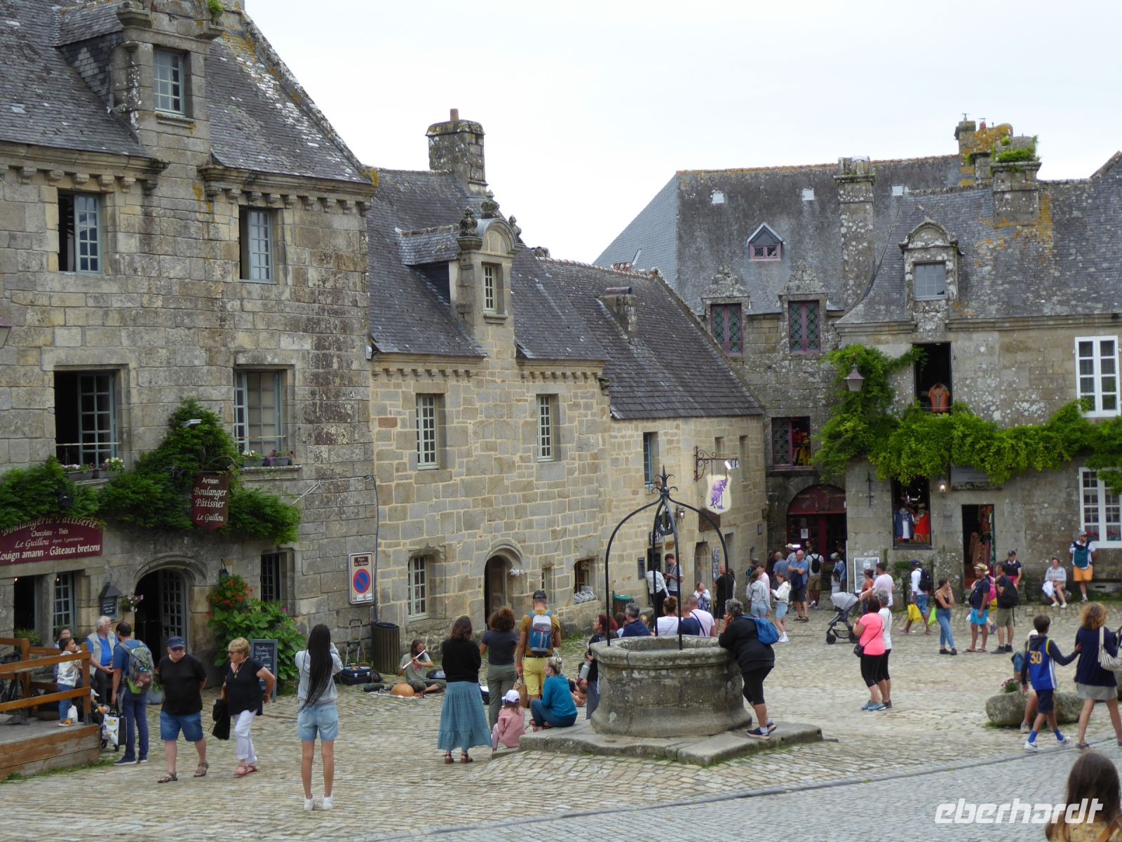 Auf unserem Plan stand heute eine Wanderung um die Pointe du Raz, der westlichsten Landspitze Frankreichs in Finistère, gut 60 Kilometer von Quimper entfernt. Auf der Hinfahrt legten wir einen kurzen Zwischenhalt in Confort-Meilars ein. Die Kirche, direkt an der Straße gelegen, birgt ein kleines Geheimnis: das Rad der wundertätigen Maria. Schon seit über 400 Jahren hängt hoch im Kirchenschiff ein hölzernes Rad, das mit zwölf kleinen Glöckchen besetzt ist. Mittels einer Kette in Schwung gebracht, ertönt eine seltsame Melodei. Ein einzigartiges Erlebnis. Ergriffen lauschten wir dem einzigartigen Glockenspiel. Unsere Wanderung führte uns heute wieder entlang der GR 34, der Grand Route, dem berühmten Küstenpfad, der 1700 km um jede Klippe, jede Bucht der Bretagne vom Mont St. Michel bis nach St. Nazaire führt. Ganz so viele Kilometer hatten wir nicht im Sinn! Der schmale Pfad vom Parkplatz an der Pointe de Raz schlängelte sich durch hohe Farne und stacheligen Ginster, danach öffnete sich der Weg zum Meer. Wacker stapften wir in stetigem Auf und Ab entlang des Küstenpfades. Blühende Erilka tauchten die Hügel in violette Töne, Quellen sprangen aus den Felsen, ständig wechselte die Flora und bot dem Auge wie der Fotolinse stets neue Attraktionen allmählich näherten wir uns der Landspitze, der Pointe du Raz, die sich 72 Meter über dem Meer erhebt. Wir sahen die Leuchttürme auf den beiden vorgelagerten Inseln und beschlossen hier eine längere Pause einzulegen, damit jeder selbst entscheiden konnte, wie weit er über die felsigen Klippen klettern wollte. Gleich neben der Statue der Mutter Gottes der Schiffbrüchigen ist der moderne Hochleistungsleuchtturm, der den Schiffen bis heute den Weg durch die zerklüfteten Buchten weist. Danach setzten wir unsere Wanderung fort zur Baie de Trépassés, einer herrlichen Bucht, die karibische Gefühle aufkommen ließ. Unterwegs ließen wir uns von dem unglaublichen Farbspiel des Meeres verzaubern. Am Strand angekommen, ließen wir es uns nicht nehmen in die herrlichen türkisfarbenen Wellen zu hüpfen. „Une fois dedans…“ sagen die Franzosen und meinen damit, wenn man einmal drin ist im kühlen Wasser, es doch sehr schön ist! Anschließend erwartete uns ein weiterer Höhepunkt unserer Reise: der Besuch des Städtchens Locronan, dem Ort des Heiligen Ronan. Nicht umsonst ist dieser Ort der einst vom Tuchhandel reich geworden war, mit dem Label „besonders malerischer Ort der Bretagne“ ausgezeichnet. Hier in diesem sehr englisch wirkenden Ort mit seinen alten Steinhäusern aus bretonischem Granit, drehte 1979 Roman Polanski den Film „Tess“, mit der jungen Nastassja Kinski in der Hauptrolle, der zum internationalen Durchbruch für die damals gerade achtzehnjährige Schauspielerin wurde. Zum Abendessen trafen wir uns wieder in fröhlicher Runde in unserem am Stadtrand von Quimper gelegenen Hotel.