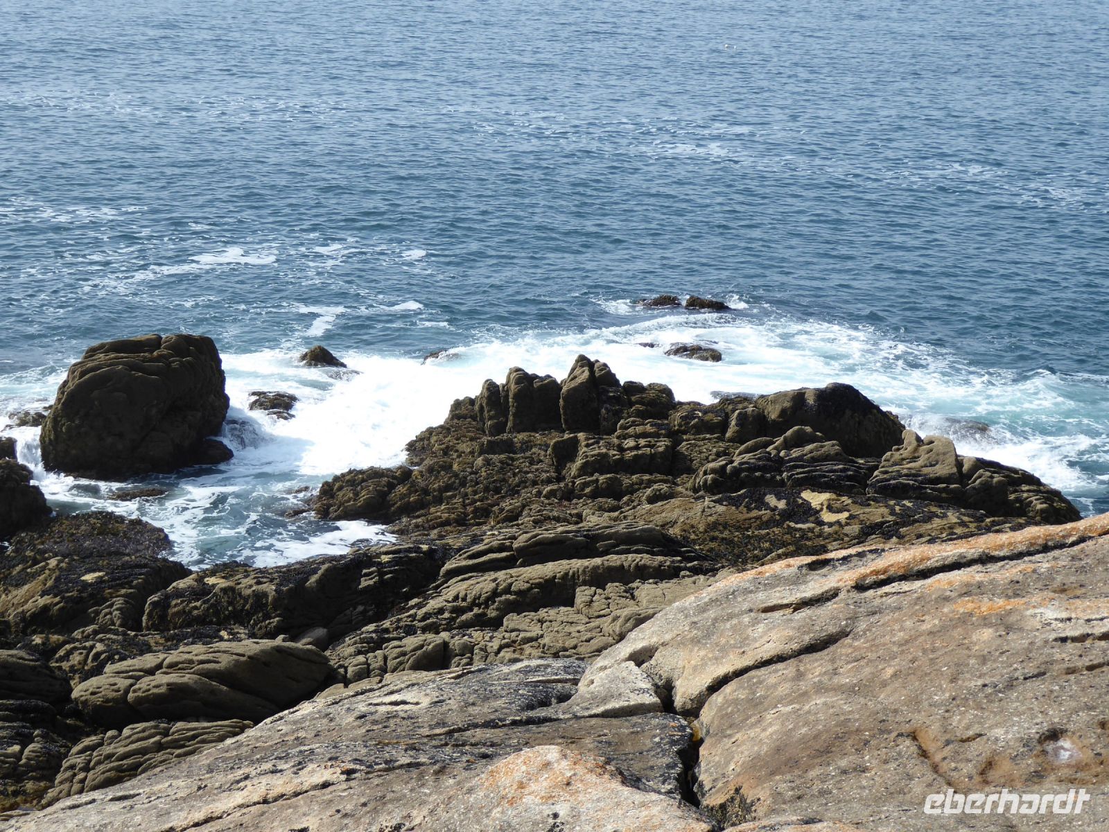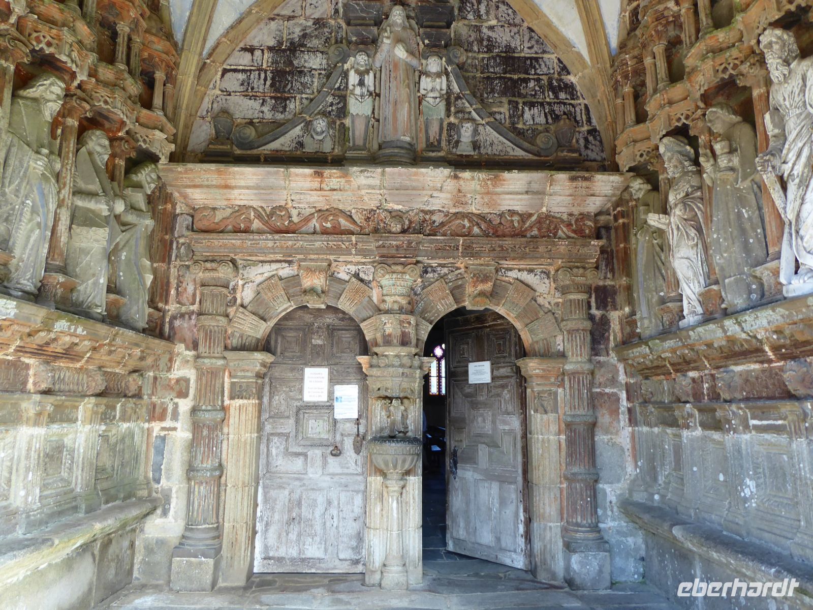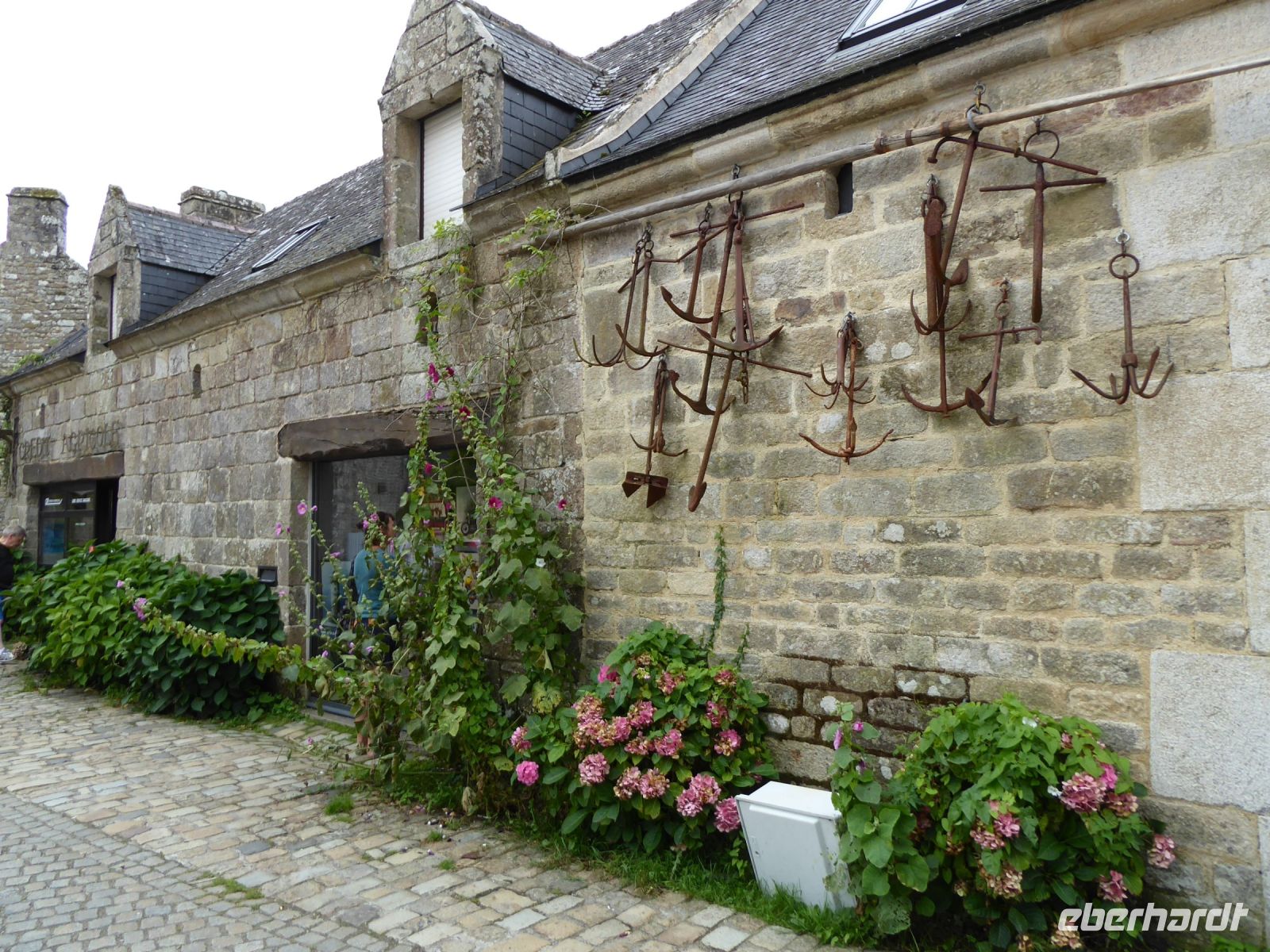 Auf unserem Plan stand heute eine Wanderung um die Pointe du Raz, der westlichsten Landspitze Frankreichs in Finistère, gut 60 Kilometer von Quimper entfernt. Auf der Hinfahrt legten wir einen kurzen Zwischenhalt in Confort-Meilars ein. Die Kirche, direkt an der Straße gelegen, birgt ein kleines Geheimnis: das Rad der wundertätigen Maria. Schon seit über 400 Jahren hängt hoch im Kirchenschiff ein hölzernes Rad, das mit zwölf kleinen Glöckchen besetzt ist. Mittels einer Kette in Schwung gebracht, ertönt eine seltsame Melodei. Ein einzigartiges Erlebnis. Ergriffen lauschten wir dem einzigartigen Glockenspiel. Unsere Wanderung führte uns heute wieder entlang der GR 34, der Grand Route, dem berühmten Küstenpfad, der 1700 km um jede Klippe, jede Bucht der Bretagne vom Mont St. Michel bis nach St. Nazaire führt. Ganz so viele Kilometer hatten wir nicht im Sinn! Der schmale Pfad vom Parkplatz an der Pointe de Raz schlängelte sich durch hohe Farne und stacheligen Ginster, danach öffnete sich der Weg zum Meer. Wacker stapften wir in stetigem Auf und Ab entlang des Küstenpfades. Blühende Erilka tauchten die Hügel in violette Töne, Quellen sprangen aus den Felsen, ständig wechselte die Flora und bot dem Auge wie der Fotolinse stets neue Attraktionen allmählich näherten wir uns der Landspitze, der Pointe du Raz, die sich 72 Meter über dem Meer erhebt. Wir sahen die Leuchttürme auf den beiden vorgelagerten Inseln und beschlossen hier eine längere Pause einzulegen, damit jeder selbst entscheiden konnte, wie weit er über die felsigen Klippen klettern wollte. Gleich neben der Statue der Mutter Gottes der Schiffbrüchigen ist der moderne Hochleistungsleuchtturm, der den Schiffen bis heute den Weg durch die zerklüfteten Buchten weist. Danach setzten wir unsere Wanderung fort zur Baie de Trépassés, einer herrlichen Bucht, die karibische Gefühle aufkommen ließ. Unterwegs ließen wir uns von dem unglaublichen Farbspiel des Meeres verzaubern. Am Strand angekommen, ließen wir es uns nicht nehmen in die herrlichen türkisfarbenen Wellen zu hüpfen. „Une fois dedans…“ sagen die Franzosen und meinen damit, wenn man einmal drin ist im kühlen Wasser, es doch sehr schön ist! Anschließend erwartete uns ein weiterer Höhepunkt unserer Reise: der Besuch des Städtchens Locronan, dem Ort des Heiligen Ronan. Nicht umsonst ist dieser Ort der einst vom Tuchhandel reich geworden war, mit dem Label „besonders malerischer Ort der Bretagne“ ausgezeichnet. Hier in diesem sehr englisch wirkenden Ort mit seinen alten Steinhäusern aus bretonischem Granit, drehte 1979 Roman Polanski den Film „Tess“, mit der jungen Nastassja Kinski in der Hauptrolle, der zum internationalen Durchbruch für die damals gerade achtzehnjährige Schauspielerin wurde. Zum Abendessen trafen wir uns wieder in fröhlicher Runde in unserem am Stadtrand von Quimper gelegenen Hotel.
