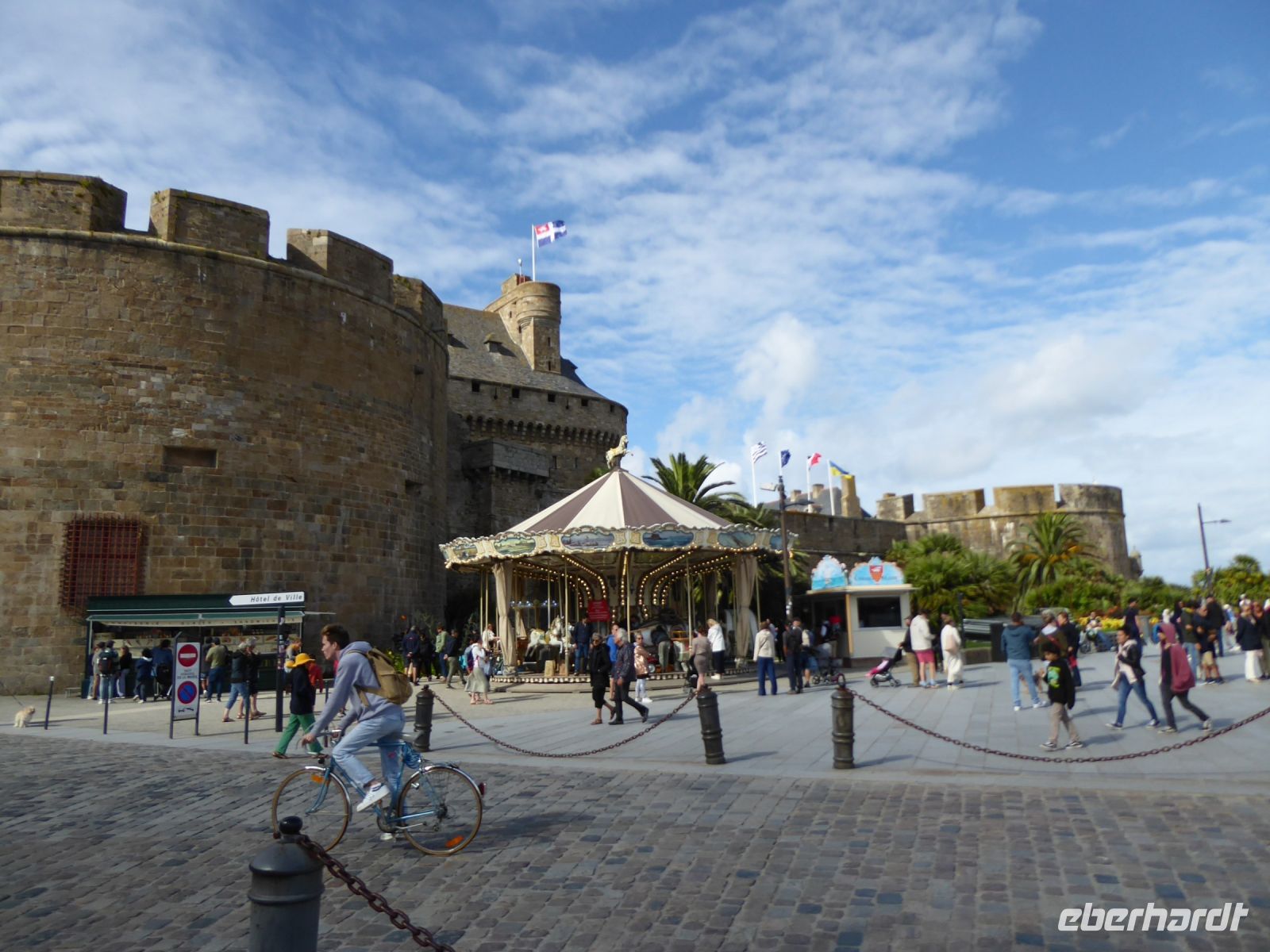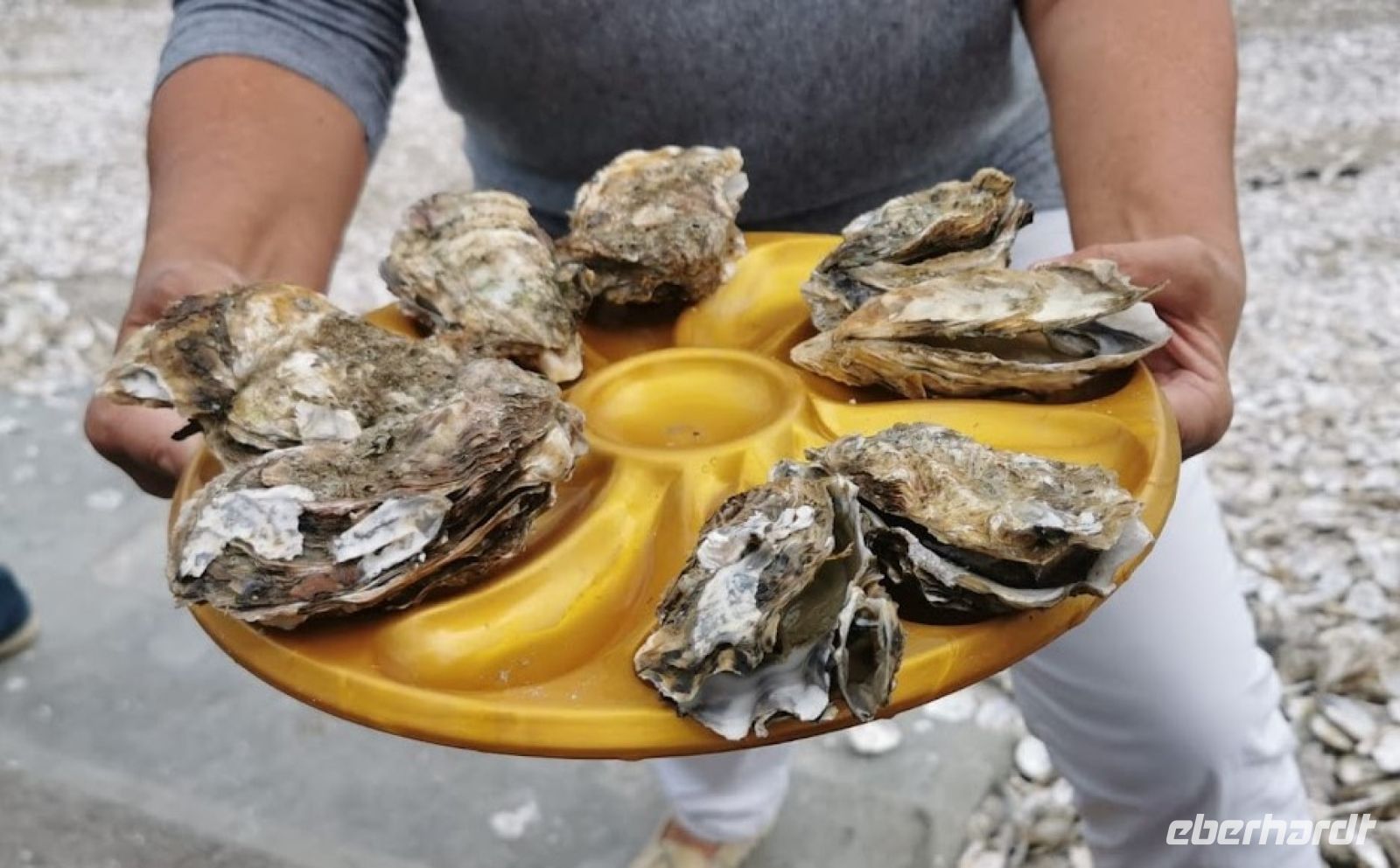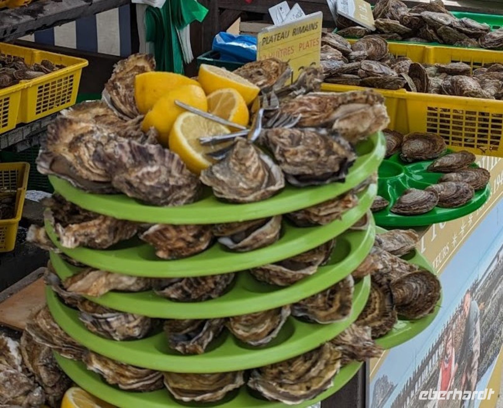 Zu ungewöhnlich frühen Stunde machten wir uns auf zum Mont St. Michel, um noch vor dem großen Ansturm den Inselberg zu erreichen. Auch bei Ebbe bietet sich ein imposantes Bild. Wir entschieden uns zu Fuß über die erst vor vierzehn Jahren gebaute Stelzenbrücke zu gehen. Langsam näherten wir uns dem Inselberg, der die Menschen seit 1300 Jahren in seinen Bann zieht. Jedes Jahr wird die Anlage, die seit 1979 UNESCO Weltkulturerbe ist, von über 3 Millionen Touristen und Pilgern besucht. Bis in die Mitte des neunzehnten Jahrhunderts wurde die Klosteranlage als gefürchtetes Staatsgefängnis genutzt. Erst Victor Hugo und andere haben sich für die Schließung des Gefängnisses eingesetzt. Heute ist der Klosterberg das touristische Highlight der Normandie. Vor der grandiosen Aussicht des, ohne Gebäude, 92 Meter hohen Berges, müssen viele steile Stufen erklommen werden. 300 Stufen sind es zum oberen Plateau und unzählige weitere Treppen im Inneren der Anlage lassen keine rechte Freude bei unseren kniegeschädigten Reiseteilnehmern aufkommen. Doch das Erlebnis Mont Saint Michel entschädigt für alle Mühen und Schmerzen. Selbst der immer wieder einsetzende Regen konnte die Freude, an dem Erlebnis nicht trüben. Le Merveille, das Wunder, das ist der Mont Saint Michel für alle Menschen: für fromme Pilger wie für Touristen mit unterschiedlichsten Interessen. Niemand kann sich dem Bann des Bauwerks entziehen. Ausgerüstet mit Audioguides ließen wir uns die Geschichte der bedeutenden christlichen Wallfahrtsstätte erklären. Gemeinsam fuhren wir mit dem Shuttlebus wieder zurück zum Parkplatz. Als nächstes Ziel stand die Stadt Cancale und unsere Austernverkostung auf dem Programm. Die Austernzucht in Cancale blickt auf eine lange Tradition zurück, sie ist schon seit dem dreizehnten Jahrhundert nachgewiesen. Nirgends sind die Austern frischer, nirgends bekommt man bessere Austern als in Cancale. Marktfrisch wird überwiegend die pazifische Felsenauster angeboten und mit etwas Zitrone direkt am Strand verzehrt. Auch die seltenere europäische Auster, die Huître plat, bei Feinschmeckern wegen ihres leicht nussigen Geschmacks gerühmt, wird hier auf dem Austernmarkt angeboten. Ausgestattet mit mehreren Flaschen gut gekühlten Weißweins, einem leckeren Sauvignon blanc, gesellten wir uns zu den anderen Gourmets und schlürften genüsslich direkt am Meer die frischen Austern. Zurück in St. Malò bummelten wir durch die von dicken Mauern umgebene Korsaren Stadt. Wir staunten über den perfekten Wiederaufbau der im August 1944 zu 85% durch angloamerikanische Bombardierungen zerstörte Stadt, in der sich die deutschen Besatzer verschanzt hatten und sich weigerten zu kapitulieren. Heute tummeln sich Touristen in den Gassen, aus allen Lokalen tönt Musik und Lachen - längst ist so Malò zu einer Hochburg des internationalen Tourismus geworden. Erst spät in der Nacht wird es ruhig und die Wellen des Meeres branden sanft an die hölzernen Wellenbrecher.