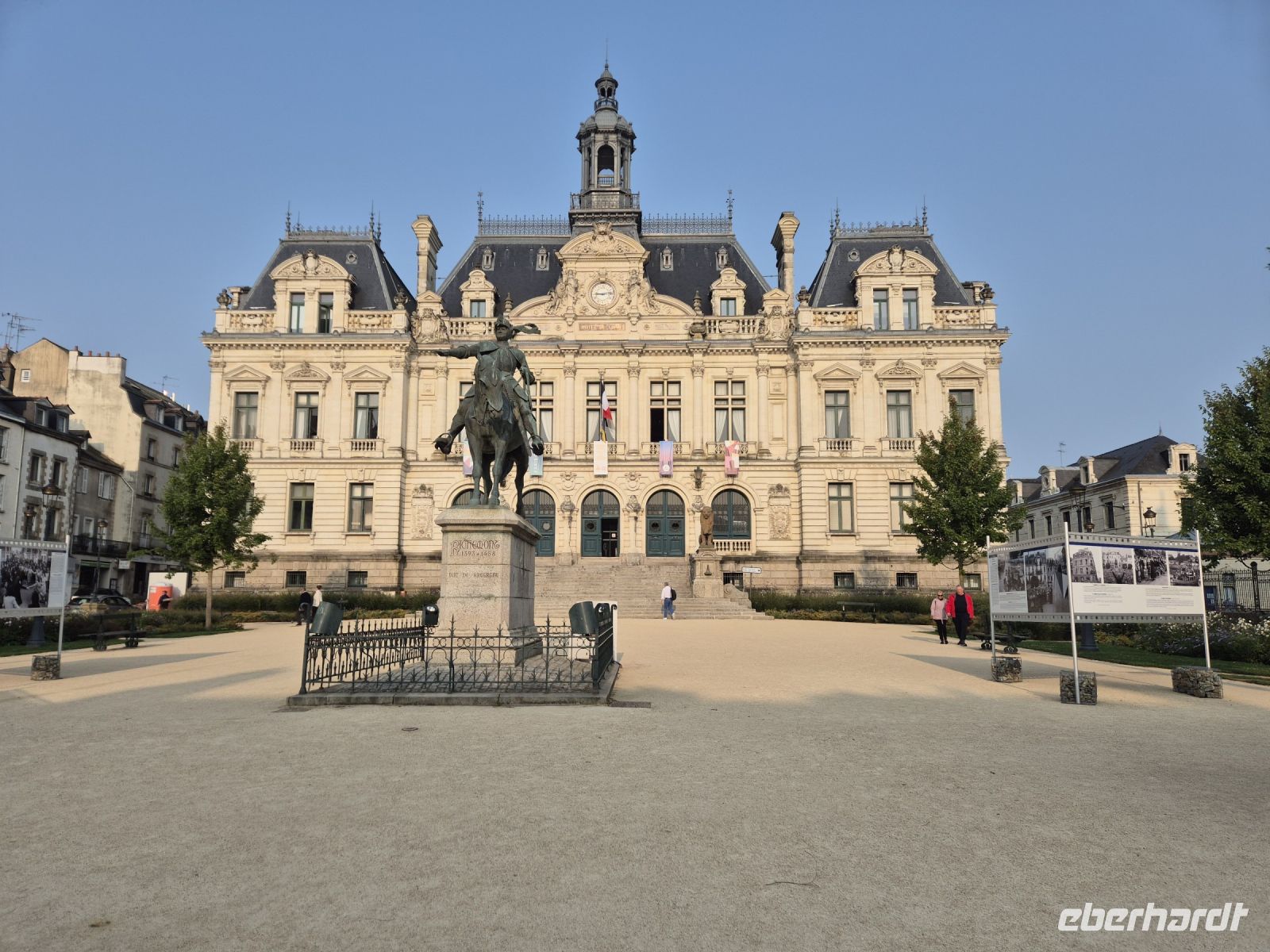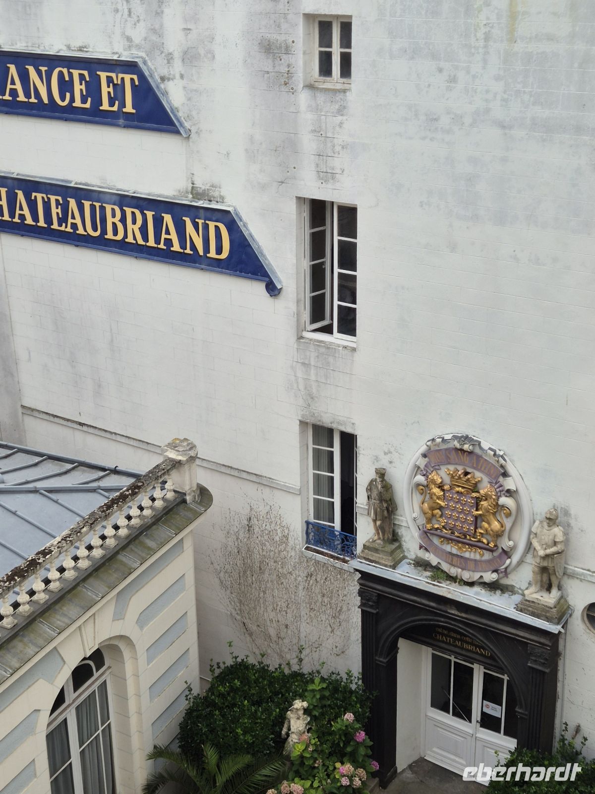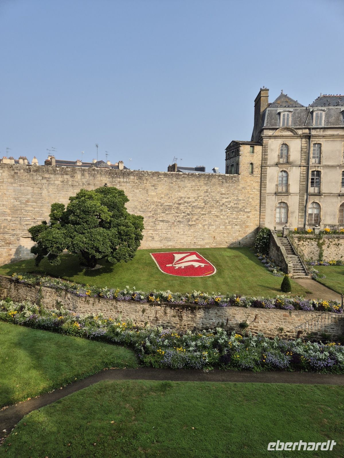 Die Burg am Stadteingang, die die „Kleine Bretonin“ bauen ließ (und zwar nicht für, sondern gegen die Stadt) ist heute Rathaus. Oben weht die bretonische Flagge mit dem Hermelin (Hermeline sollen lieber sterben, als sich zu beschmutzen), unten die französische.