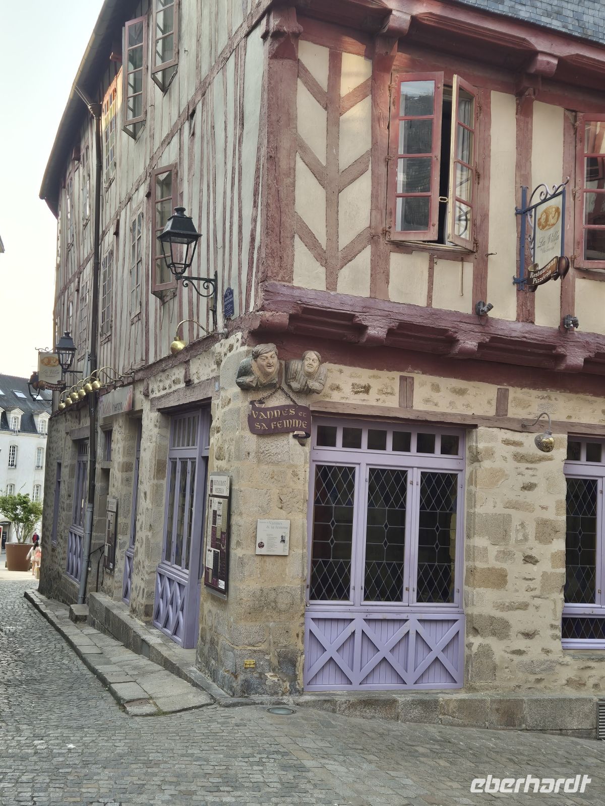 Die Altstadt mit schönen Ecken beginnt man im Süden an der Place Gambetta, im Rücken den kleinen Hafen, einen der vielen, die sich hier am Ende eines Fjords befinden. Man geht durch die Porte St.Vincent und die Marktstraße Poissonnerie bis zum Altstadtplatz des Lices. Im Osten der Altstadt findet sich die ortsbildprägende Stadtmauer mit der Tour du Connétable, weiter nördlich mit der Porte Prison aus dem 13.Jh. und den nahen Waschhäusern. Das Chateau-Gaillard wird nach Renovierung archälologisches Museum. Der Park im französischen Stil, mit dem die Stadtmauer inszeniert wird, wurde in seiner heutigen Form erst in jüngerer Zeit angelegt. In der Rue des Halles befindet sich das Maison de Vannes mit viel fotografierten Holzfiguren. Fachwerk gibt es auch an der Place Henri IV und St. Pierre. Schließlich steht da die Kathedrale, die alles vom 12. bis 19. Jh. vereint, und gegenüber die Markthalle La Cohne.
