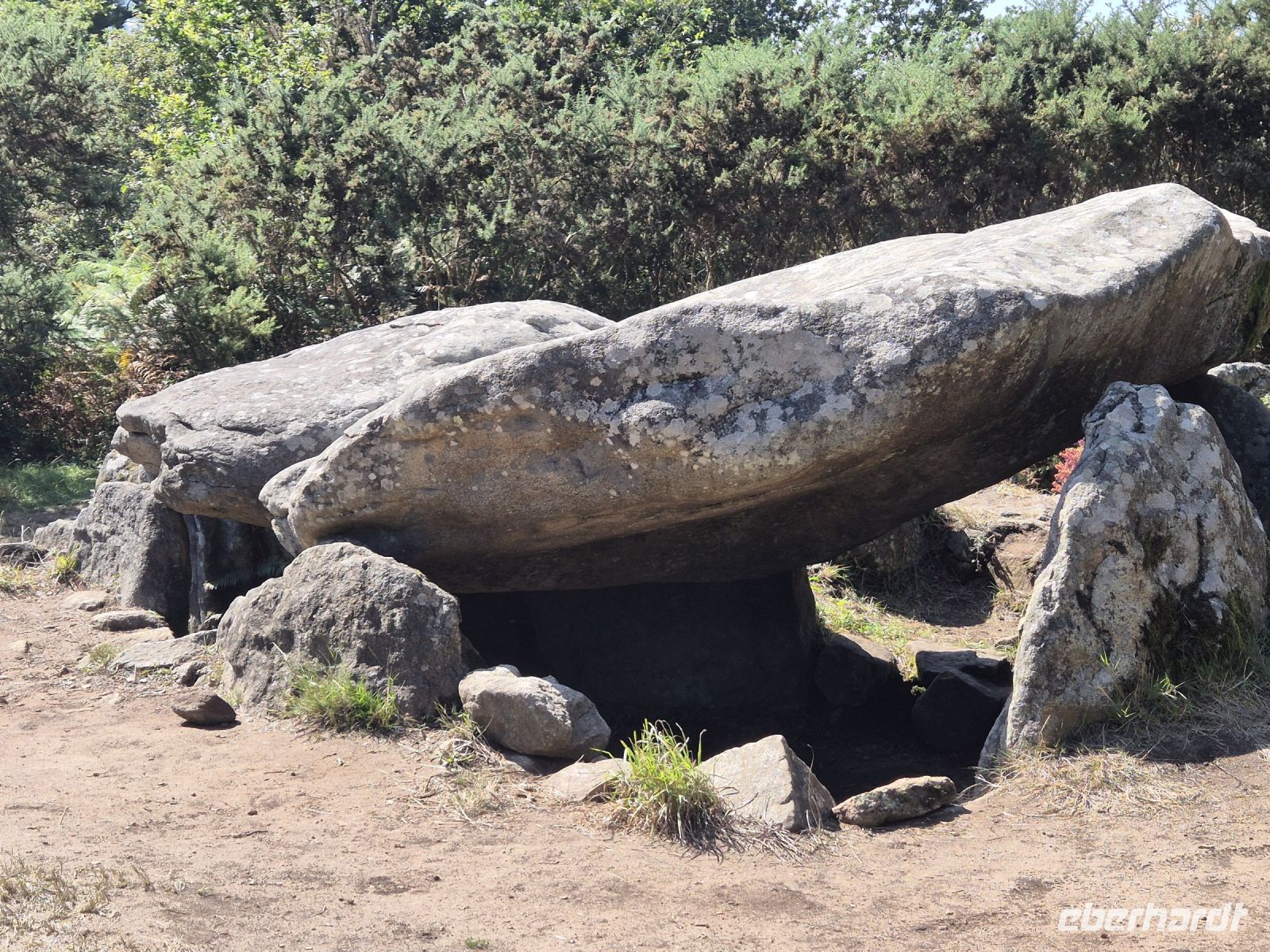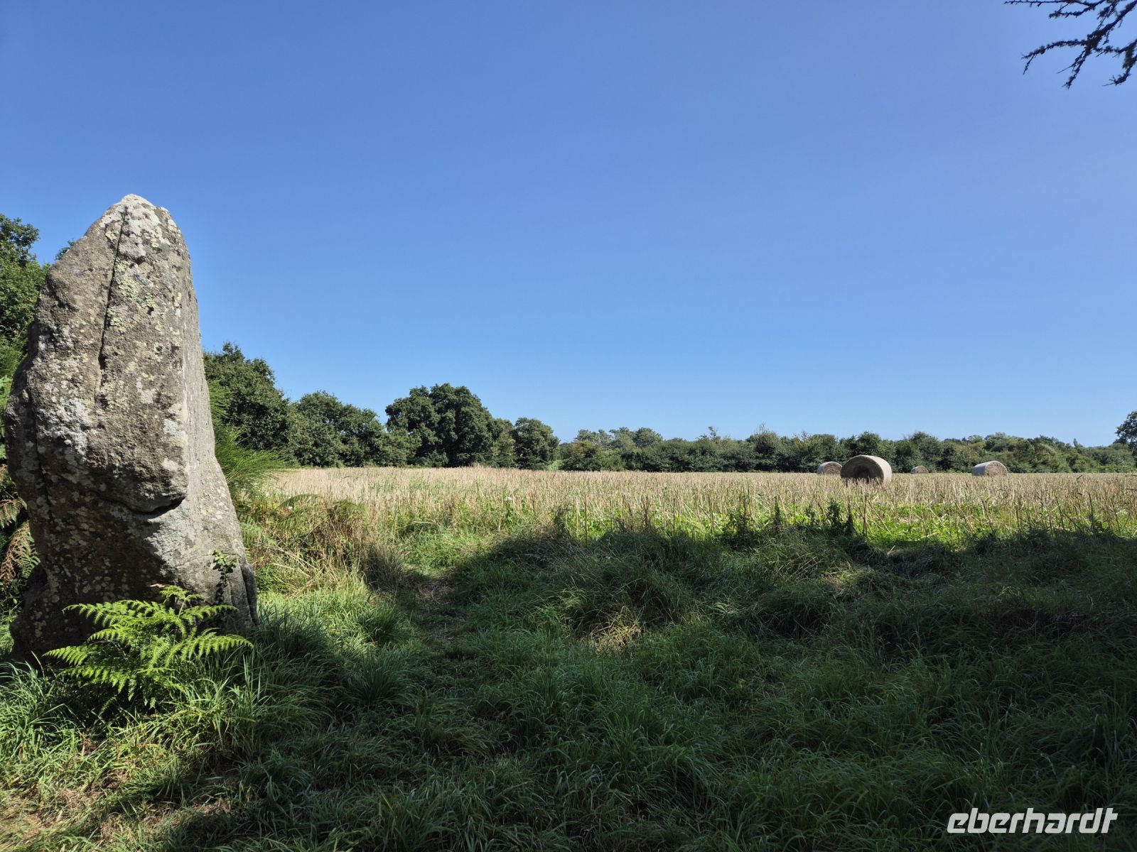 Hinter dem kleinen Ort Crocuno stiegen wir später nochmals aus für eine kleine Wanderung entlang gleich mehrerer Dolmen, bis zu den Alignements de Kerzerho, weiteren Steinreihen. Die größten Menhire ragen 6 m auf.