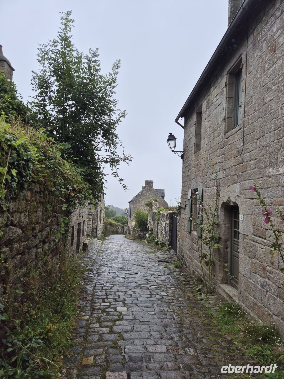 Locronan ist ein überaus malerischer kleiner Ort aus grauen Granitbauten, der Platz vor der Kirche ist städtebaulich sehr gelungen. Hier drehte Polanski seinen Film „Tess“ mit Nastassja Kinski in der Hauptrolle. Leider regnete es an diesem Nachmittag, sodass ein Kaffeetrinken vor einer der zahlreichen Bars nicht möglich war.