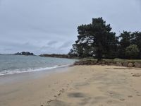 Ein weiterer Höhepunkt dieser Reise war die - leider durch Regen verkürzte - Wanderung von Trégastel entlang der verschlungenen Küstenlinie nach St.Guirec. Wir befanden uns an der Cote du Granit Rosé, der rosa Granitküste. Unzählige rosa Felsen, die wie zufällig ins Wasser geworfen erscheinen, säumen den Weg, ebenso teils kitschige Märchenschlösser und immer wieder Bäume in bizarren Formen, die alles wie Szenen ostasiatischer Tuschebilder erscheinen lassen. Der kleine Strand von St. Guirec bezieht seinen Namen von einem mittelalterlichen Bildstock am Strand zu Ehren des Heiligen. Hier befindet man sich bereits auf dem Zöllnerpfad.