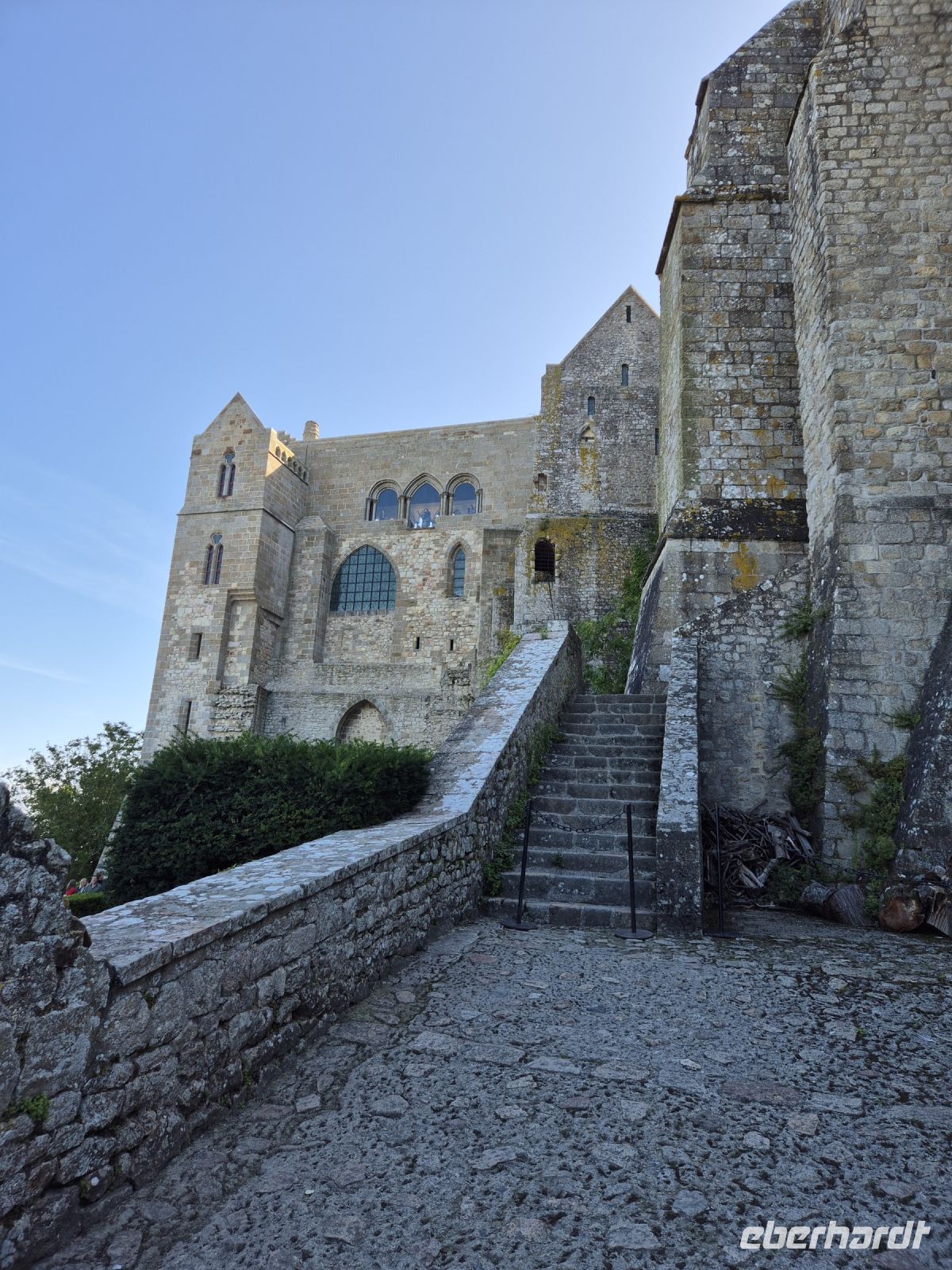 97 ha misst die Inselanlage, ab 80 m Höhe hat man den Level der Abteikirche erreicht, 157 m über dem Meer erreicht der markante Vierungsturm, der übrigens, wie auch die Michaelsskulptur darauf, aus dem 19.Jahrhundert stammt.