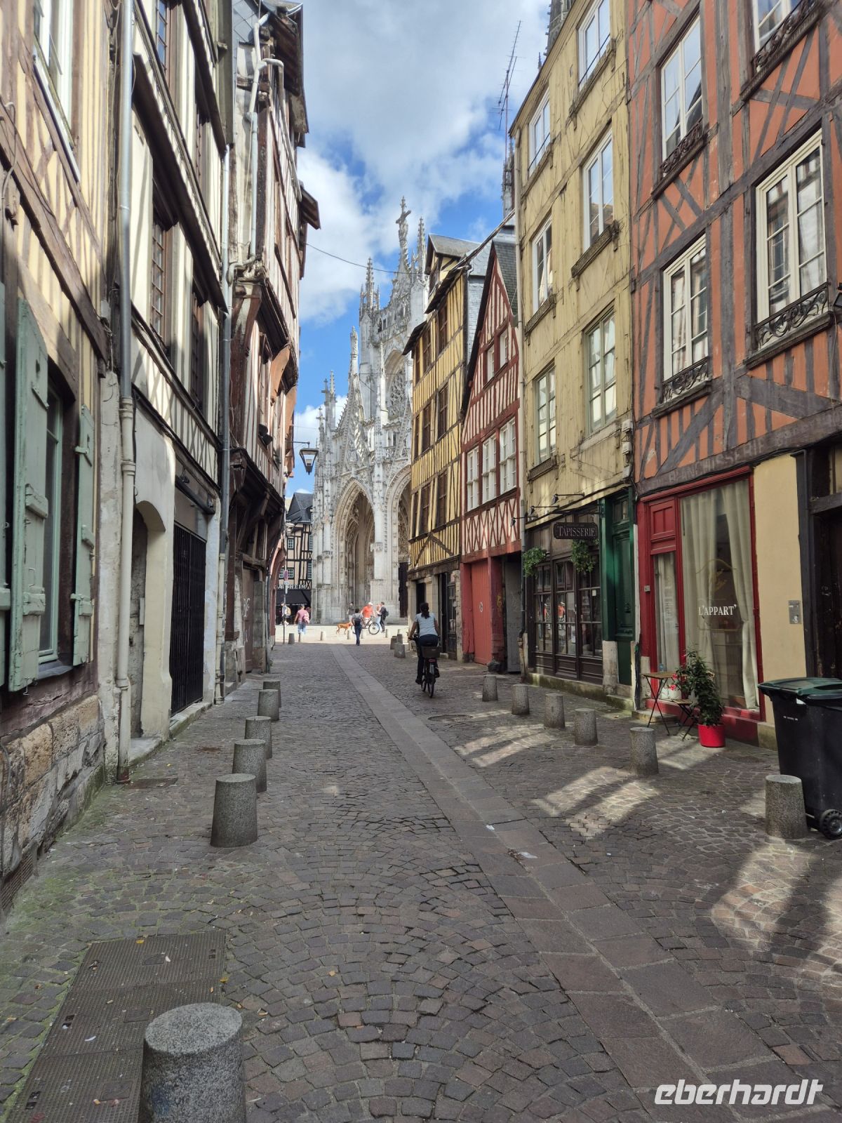 Auf der langen Rückfahrt gab es noch einen Halt mit Stadtrundgang in Rouen. Rouen ist heute der fünftgrößte Hafen Frankreichs, auf der ausgebaggerten Seine können bis hier Schiffe mit bis zu 140.000 BRT fahren. In Seine-Nähe und vor allem im Industriegebiet links des Flusses gab es im 2.WK große Zerstörungen. Auch die Altstadt war betroffen, ist aber in einzigartiger Weise wieder restauriert worden.
