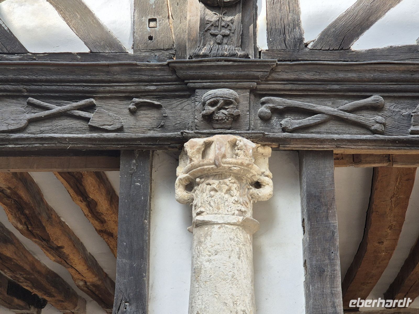 Für so eine imposante Anlage gibt es natürlich einen Gründungsmythos. 708 wurde Bischof Aubert von Avranches vom Erzengel Michael in einem Traum aufgefordert, auf dem Berg eine Kirche für ihn zu gründen. Der Bischof war seinen Träumen gegenüber aber skeptisch, so dass der Erzengel handgreiflich werden musste und das Haupt Auberts „berührte“. Dieses Haupt, das sich, einst zusammen mit anderen Reliquien importiert vom Monte Gargano im Süden Italiens, in Avranches befindet, zeigt eine runde Öffnung in der Schädeldecke. Diese Heiligengeschichte kann man übrigens auch als Relief beim Rundgang durch die Anlage erleben.
