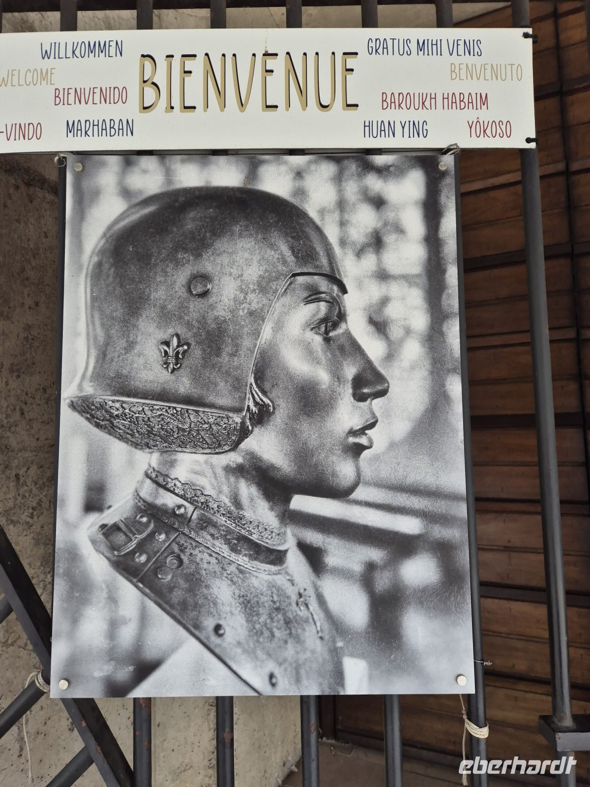 Als im frühen 15.Jh. die Normandie von den Engländern besetzt wurde, ereignete sich die Geschichte von Jeanne d’Arc aus Lothringen, die dem späteren französischen König Karl VII gegen die mit den Engländern verbündeten Burgunder zu Hilfe kam. Sie wurde Weihnachten 1430 bei dem Versuch, das von den Burgundern besetzte Compiègne zu befreien, gefangen genommen. Eigentlich hatte sie längst „abgeschworen“, doch die Engländer kauften ihre Gegnerin für 10.000 Franken, um sie am 30.Mai 1431 auf dem alten Marktplatz hinrichten zu lassen. Sie wurde später nicht nur rehabilitiert, sondern auch heiliggesprochen. Was dieses 19jährige Mädchen angetrieben und so gestärkt hat, dass Mächtige auf sie aufmerksam wurden, ob Gott ihr befahl, - all das bleibt im mythischen Dunkel. Zahlreiche Rezeptionen dieser Geschichte gibt es im Film, Theater, in der Musik, in der Literatur und in Computerspielen.