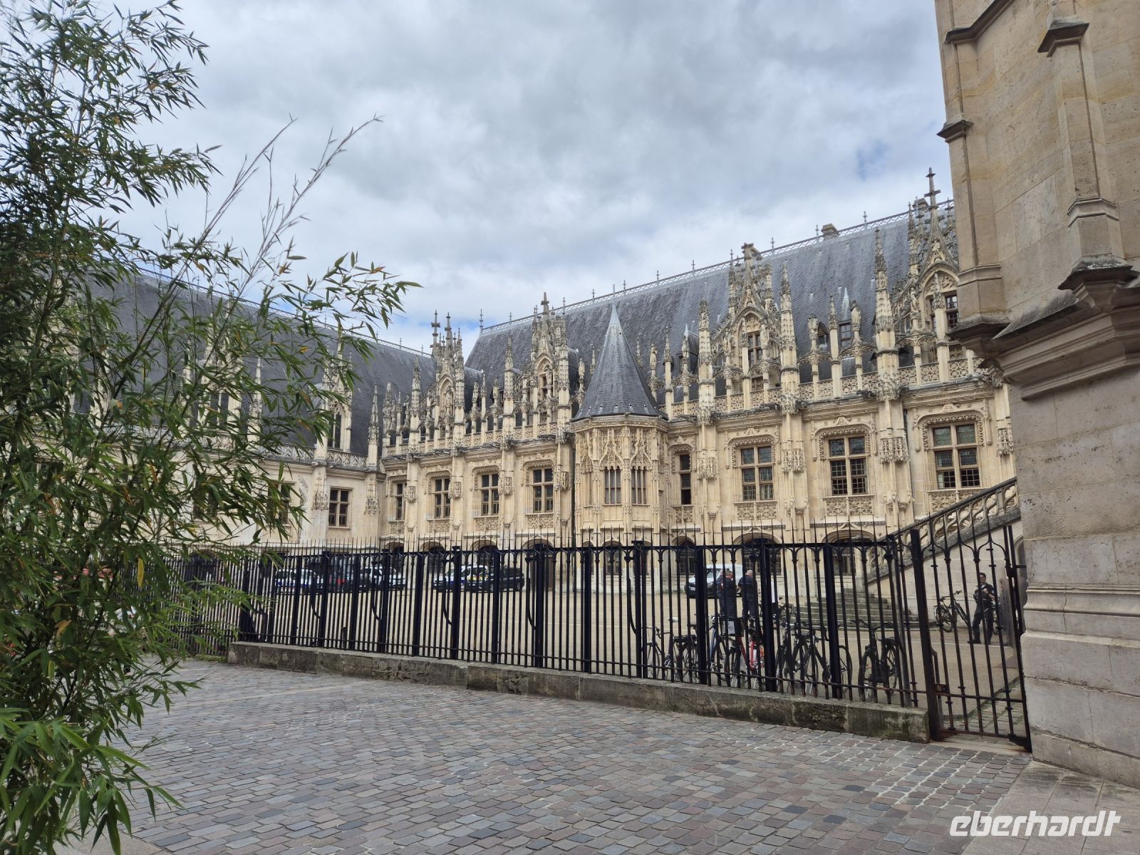 Gros Horloge. Die „dicke Uhr“ wurde ab 1527 errichtet. Technische Kunstwerke dieser Art waren der Stolz der Städte (vgl. Auxerre). Bildprägend ist auch der prächtige Palais de Justice mit einem spätgotischen West-und Nordflügel. Ansonsten ist der Palais aber geprägt durch einen klassizistischen Flügel (1778) und einen „spätgotischen“ Neubau.