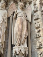Abends gelangten wir nach Reims, der Krönungsstadt der französischen Könige. Wie bei Troyes auf der Hinfahrt reichte es nur zu einer kleinen Stippvisite in die Stadt mit der gewaltigen Kathedrale, Inbegriff der französischen Gotik und trotz Zerstörungen in den Kriegen des 20.Jahrhunderts mit Paris, Chartres und Amiens die wohl bedeutendste in Frankreich. Ihr Skulpturenprogramm - am prominentesten der lachende Engel - hat die Plastik des 13.Jahrhunderts auch weiter östlich entscheidend beeinflusst (u.a. Straßburg, Naumburg, Meißen).