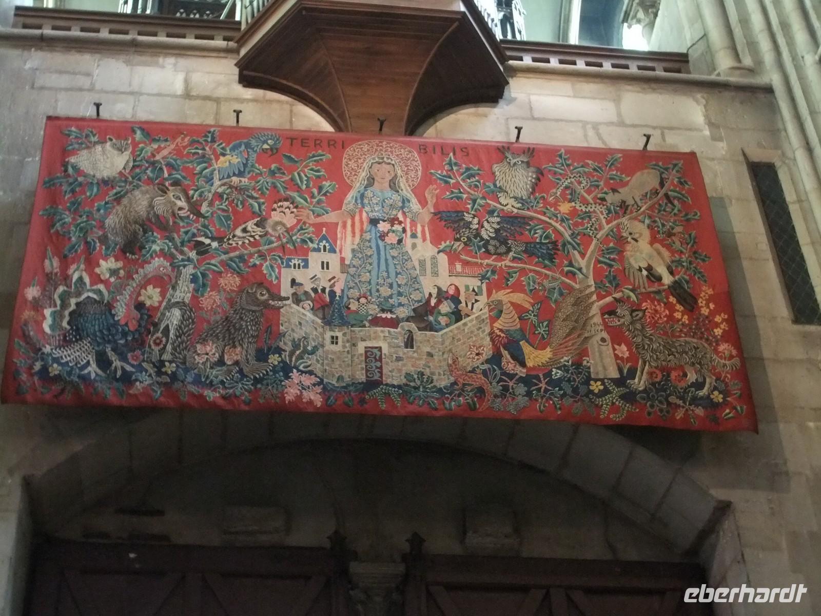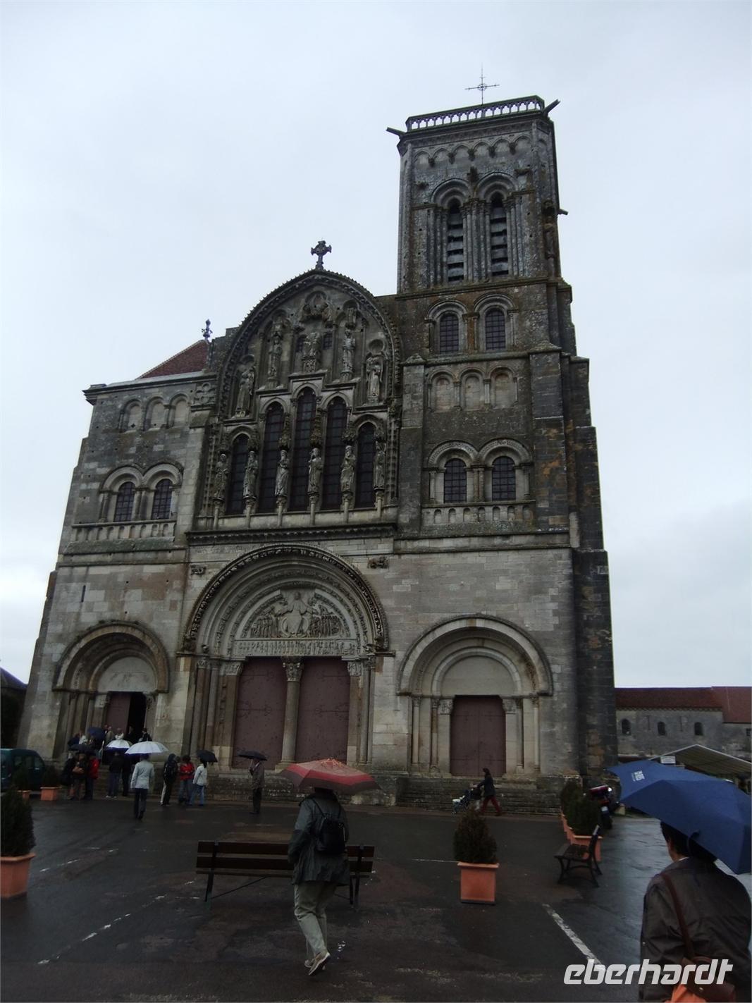 Vezeley ist voller Geschichte. Hier hatte Bernard von Clairvaux, der im neu gegründeten Zisterzienserordern zum geistigen Führer aufgestiegen war, zum 2. Kreuzzug aufgerufen, hier trafen sich der englische und französische König zu einem weiteren Kreuzzug. Es waren die Reliquien der Maria Magdalena, die Menschen aus ganz Europa hierher führten, um auf den Jakobsweg zu pilgern. Vezelay wurde eine große und reiche Stadt, bis der gute König René von Anjou im Traum die Reliquien in der Provence sah und der Papst das auch bestätigte. Es folgte ein Abstieg der Stadt. Aber auch heute noch treffen sich die Pilger hier, an diesem Sonntag die Teilnehmer einer dreitägigen Jugendwallfahrt bei einer Messe in der romanischen Kirche. Wenn auch der Kirche nicht nur durch ihre Feinde sondern auch durch ihre Freunde geschadet wurde (gemeint ist die etwas freizügige Restauration durch Viollet-le-Duc), so zeigt der großartige Baus eine Vorahnung der Gotik und plastischen Schmuck der Romanik in höchster Vollendung wie das Tympanon mit dem Pfingstwunder im Narthex und die herrlichen Kapitelle.