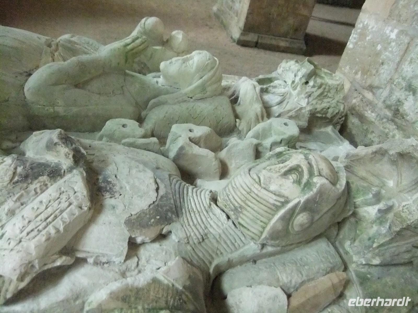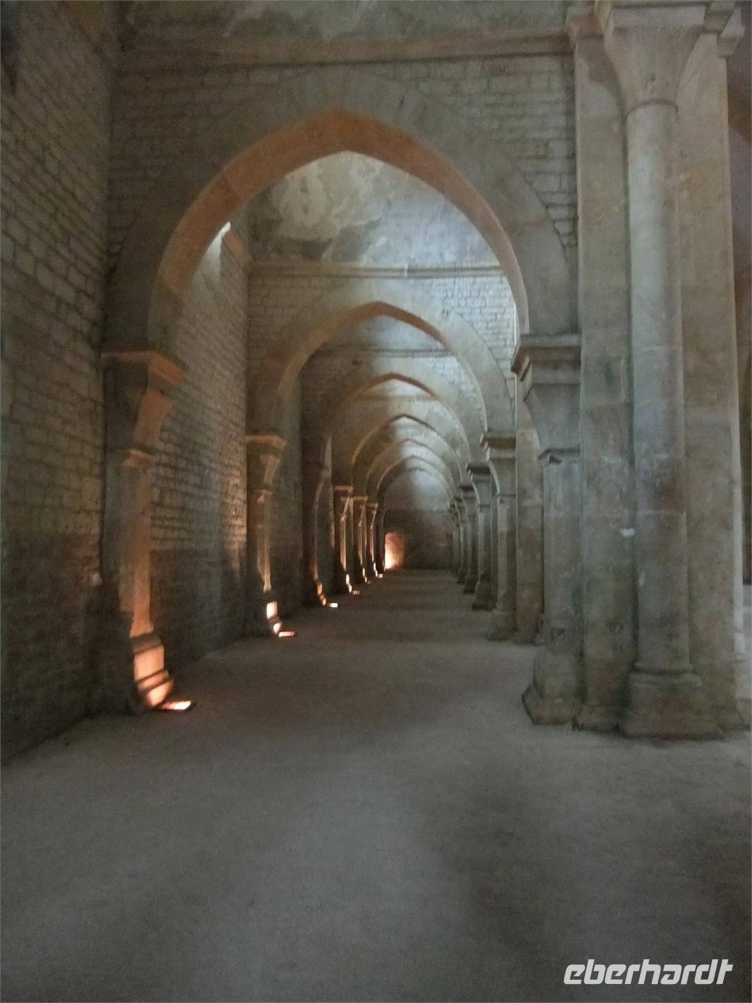 Steinbruch. Wenn man sich im riesigen, heute wieder restaurierten, Querschiffarm mit dem Weihwasserturm befindet, kann man sich nicht die gigantischen Ausmaße des Kirchenbaus vorstellen, die erst durch den Petersdom übertroffen wurden. Einmalig auch die im alten Kornspeicher aufgestellten Kapitelle, die den Sturz aus 11 m Höhe leidlich überstanden haben. Aus Wohnhäusern und dem Nationalgestüt tauchten immer wieder Bruchstücke