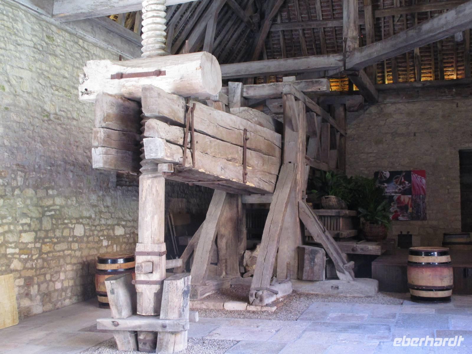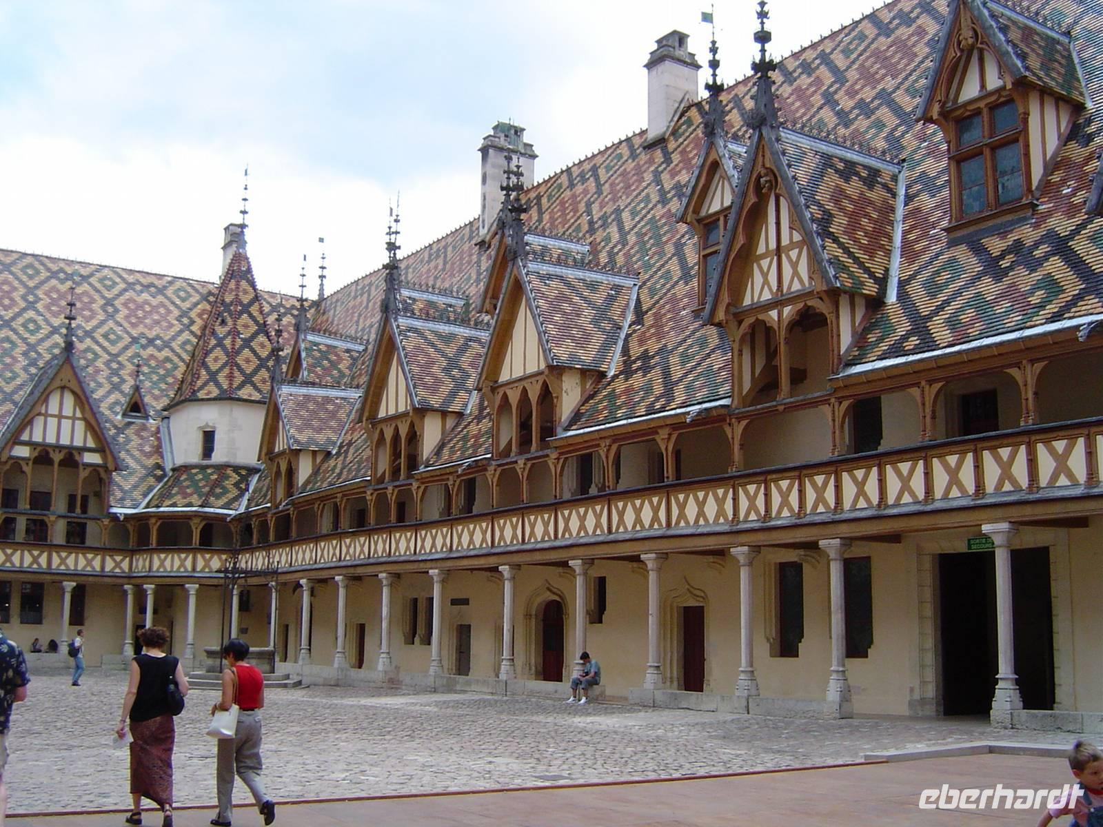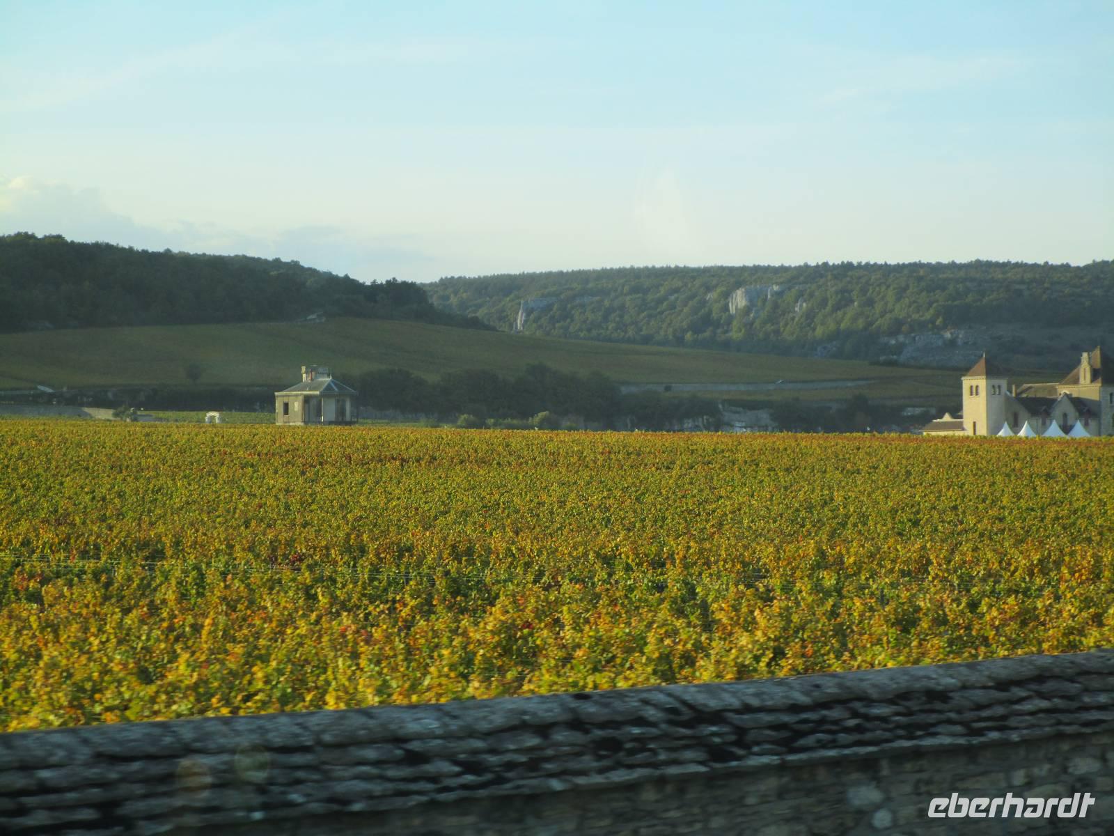 Die Ziele des heutigen Tages liegen nicht weit auseinander: zwischen Dijon und Beaune. Eines der berühmtesten Weinanbaugebiete Frankreichs zieht sich zwischen Nationalstraße und der Hügelkette entlang, die Cote de Nuits. Nach Süden schließt sich die Cote de Beaune an. Beaune ist deshalb Zentrum des Weinbaus der Bourgogne. Der Ort war früher auch Hauptstadt, bevor die Herzöge nach Dijon zogen. Ihr Kanzler, Nicolas Rolin war einer der reichsten und mächtigsten Männer der Zeit. Er stiftete zusammen mit seiner ebenso reichen Frau ein Hospital für arme Kranke. Sie dachten dabei sicher an ihr Seelenheil. Hier zog 1452 der erste Kranke ein und erst 1971 übersiedelte der letzte Kranke in ein neues Krankenhaus. Dazwischen hatte sich die Innenreinrichtung wenig verändert. Das Gebäude ist schon ein Schmuckstück mit seinen Dächern aus bunten glasierten Ziegeln, seiner jahrhundertealten Inneneinrichtung und seinen wertvollen Wandteppichen. Das größte Juwel ist jedoch der Weltgerichtsaltar von Rogier van der Weyden, zur Mahnung und Erbauung der Kranken geschaffen und zum Ruhme der edlen Stifter. Bevor wir in das Kloster Citeaux weiterverfahren, besuchen wir das mauerumschlossenes Weingut Clos Vougeot seiner Mönche. Damals versorgte das Gut die Mönche, denn die Benediktinerregel hatte Ihnen ein Viertel Wein pro Tag zugestanden. Heute wird auf 51 ha von 86 Besitzern der Grand Cru Clos Vougeot produziert. Ein großer Teil der Gebäude stammt aus dem 12.Jhdt., ebenso die 4 mächtigen Weinpressen. Das Schloss ist seit 80 Jahren Sitz des Ordens der Weinkenner, der Chevalier de Tastevin. Vom Stammkloster der Zisterzienser Citeaux ist nach der Revolution wenig geblieben, aber heute leben wieder 3 Dutzend Mönche hier. Ihre neu erbaute Kirche ist schlicht gehalten, so wie es Bernhard von Clairvaux schon vor 800 Jahren vorschrieb. Durch die Herstellung eines bekannten Käse sind sie wirtschaftlich selbständig. Burgund ist vielleicht nicht die bekannteste Käseregion Frankreichs, aber der Epoisses-Käse der Fromagerie Gaugry ist einer der besten Weichkäse. Wir verkosten verschiedene Ausführungen, dazu ein Glas guten Bourgogne-Wein. Aber Wein und Käse sind nicht alles. Eine weitere Köstlichkeit wird in Nuits-St.-George aus schwarzen Johannisbeeren gewonnen, Creme de Cassis. Dieses Elixier ist nicht nur Grundlage des Kir, einem Aperitif aus diesem Likör und dem Burgunder Weißwein Aligoté, sondern soll auch Allzweck-Heilmittel sein. Bei der Besichtigung der Produktionsanlage erfahren wir viel über die Herstellung und die Verkostung bestätigt die hohe Qualität der Erzeugnisse.