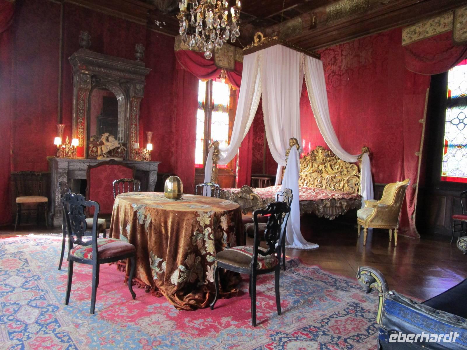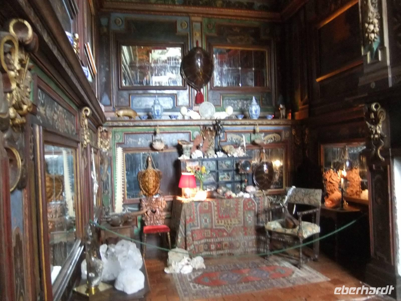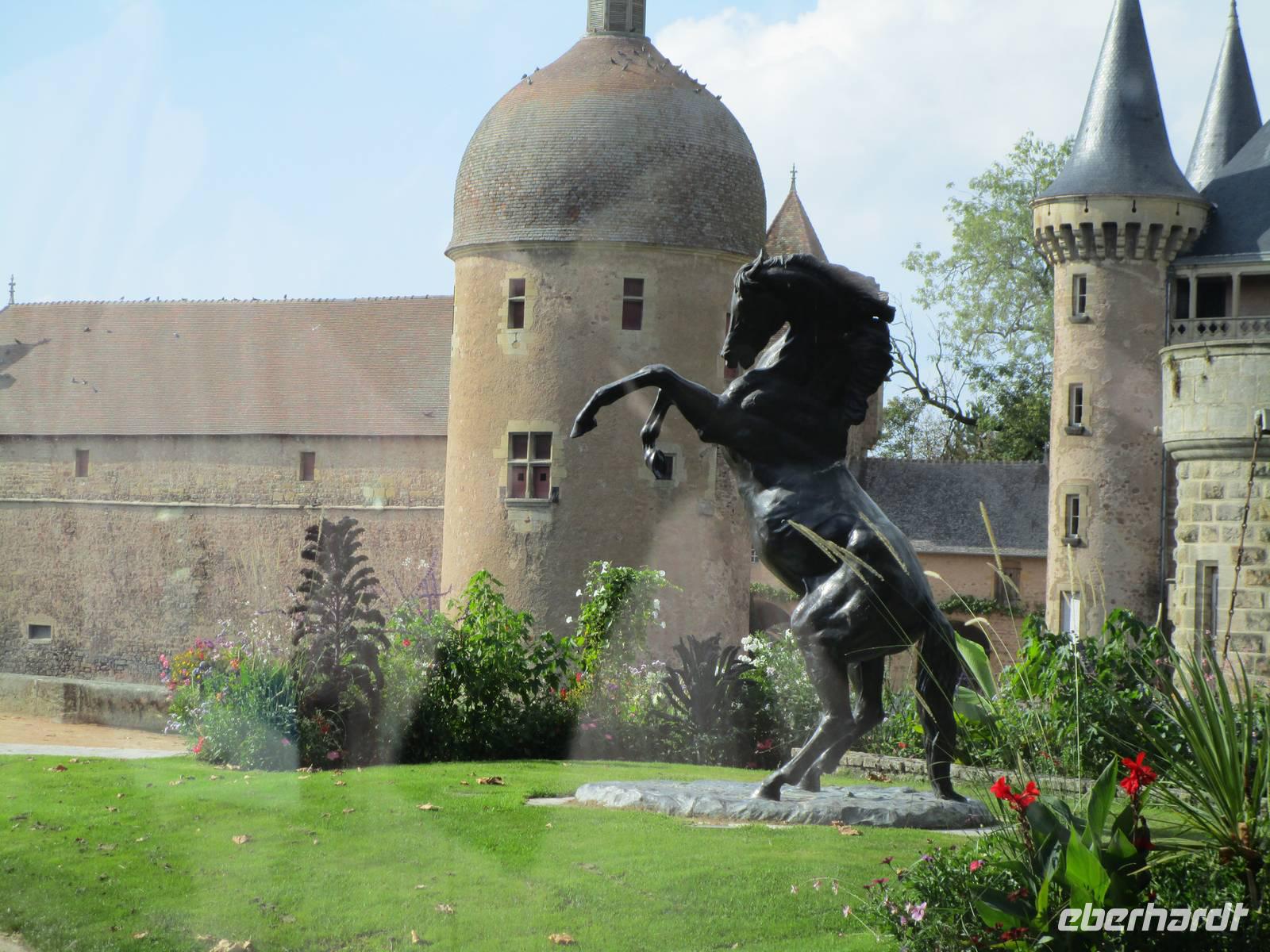 Heute besuchen wir Südburgund. Uns erwartet das Schloss Cormartin. Auf den ersten Blick erscheint es wie eine Anlage, von denen es sehr viele in Frankreich gibt, ein Renaissanceschloss auf den Mauern einer alten Burg und mit Elementen einer Militärarchitektur. Manches ist abgetragen worden, zwei Flügel existieren noch. Aber innen bietet die unveränderte Inneneinrichtung der 1. Hälfte des 17.Jhdt. in den Zimmern des Schlossherren und seiner Gattin eine seltene Kostbarkeit im schlösserreichen Frankreich. Maria von Medici, Witwe Heinrich IV, hatte ihre Künstler und Handwerker zur Verfügung gestellt, um die prachtvollen Balkendecken und Wandpaneele zu schmücken. Die Revolution hat das Schloss weitgehend verschont, aber die Pracht wäre zerfallen, hätten nicht drei mutige Menschen das Anwesen gekauft, die Räume restauriert und die Gärten neu angelegt. Auch die Einrichtung des Direktors der Oper Monaco, R.Gunzbourg blieb als Beispiel für die Belle Epoque erhalten.