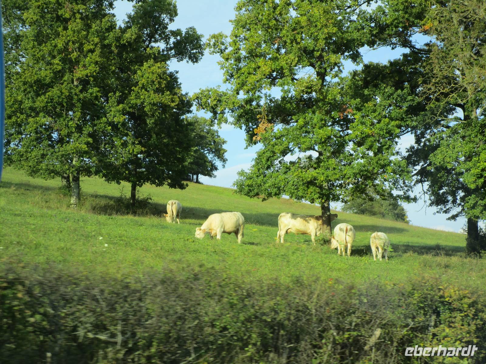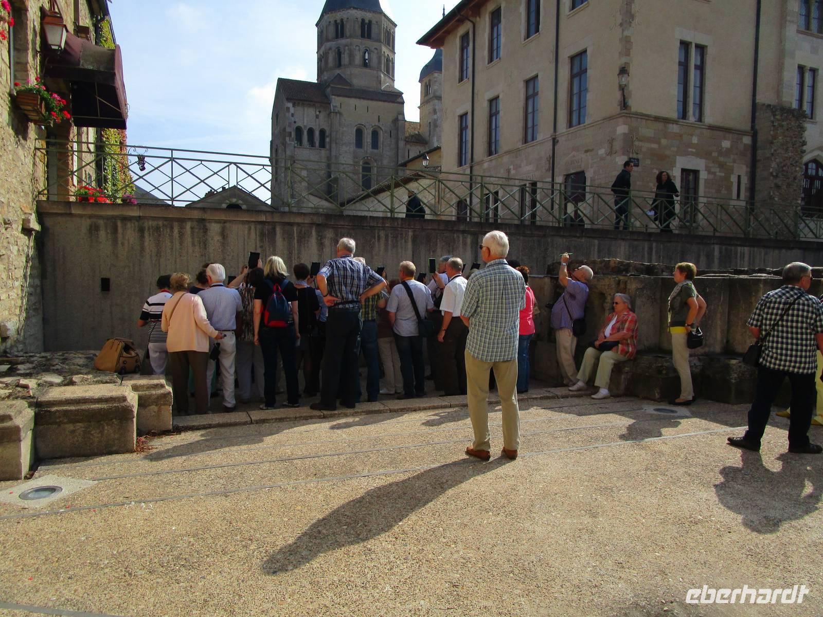 Nicht immer jedoch ließ sich der Verfall nicht aufhalten. In Cluny, Sitz des größten Klosterimperiums, stand größte Kirche der Christenheit, bis sie vom Petersdom übertroffen wurde. Diese Abteikirche war ein Meisterwerk der Romanik, deren gewaltige Dimensionen sich an den wenigen Resten erahnen lassen. 33 m erreicht das Gewölbe im rechten Querschiffarm, nur wenige der späteren gotischen Kirchen erreichen eine solche Höhe. Mit der französischen Revolution hatte der Staat das Kloster geerbt, aber konnte außer dem Blei der Verglasung und der Dächer mit dem Kirchenbau nichts anfangen. Er wurde Steinbruch, etwa 50 Jahre bevor sich das allgemeine Bewusstsein entwickelte, dass man die Zeugnisse der Vorfahren bewahren muss. Seit diesem Jahr haben die Forschungsarbeiten zur Visualisierung des verschwundenen Kirchenbaus zu einer neuen Form der Besichtigung geführt: auf Tablett-Computern wird die alte Pracht rekonstruiert, werden Informationen und die Besichtigung der erhaltenen Reste und durch Bilder und Zeichnungen ergänzt. Die Landschaft Burgunds ist vielseitig. Wäldchen wechseln mit Weiden, auf denen die weißen Charollaisrinder grasen, Hecken trennen die die einzelnen Flächen, Weinberge liegen an den Hängen. In Dörfern mit massigen romanischen Kirchen scheint die Zeit still zu stehen. Einzelstehende Bauernhöfe haben hohe Mauern und Verteidigungstürme.