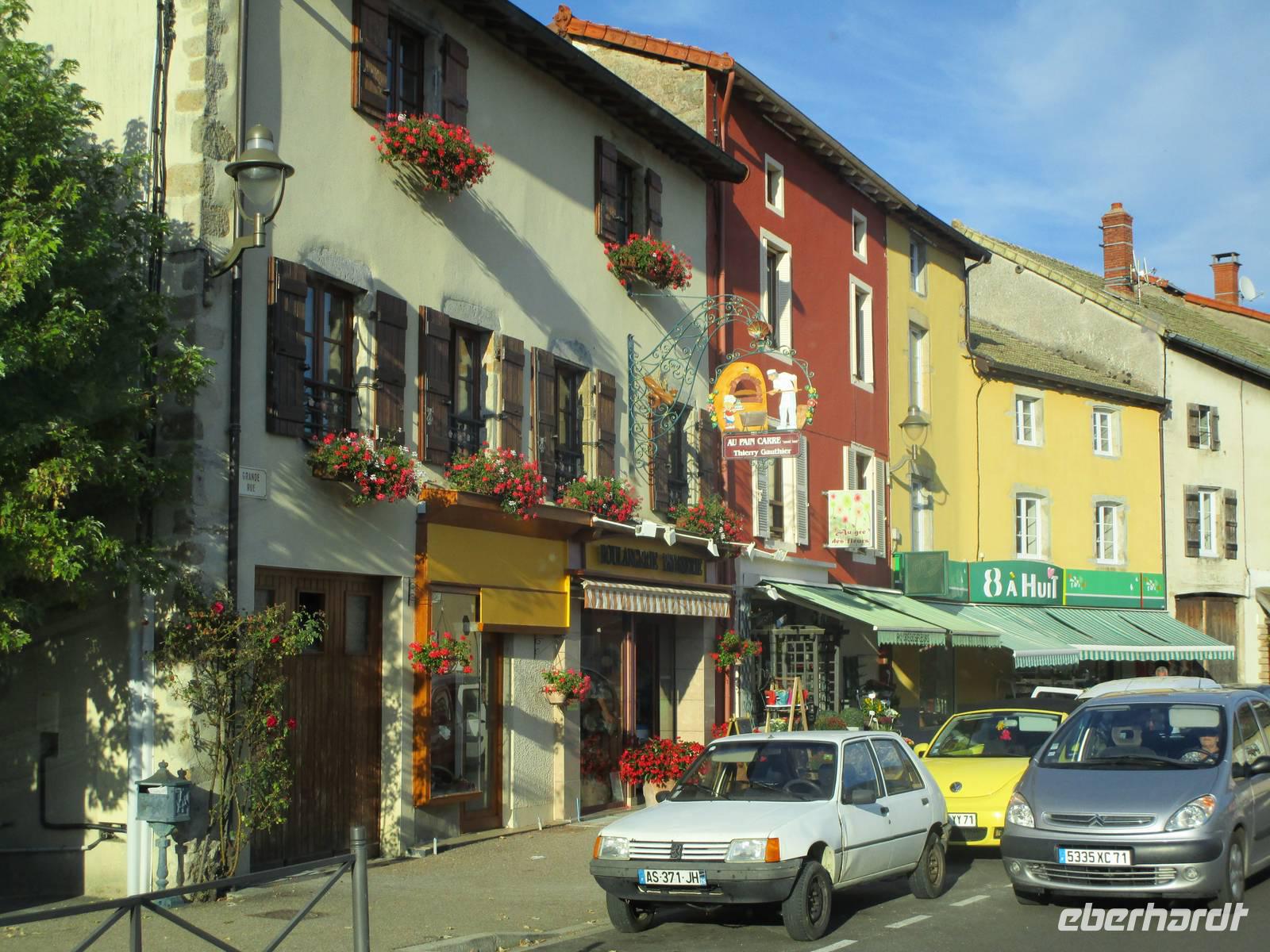 In La Clayette steht ein großes Wasserschloss, es ist in Privatbesitz und nicht zu besichtigen. Besichtigen kann man aber die Schokoladenwerkstatt von Bernard Dufoux. Der Meister, einer der besten Chocolatiers von Frankreich, ist zwar im Urlaub, aber wir werden durch einen Mitarbeiter genauso sachkundig in die Geheimnisse der Herstellung der Kreationen aus ausgewählten Kakao eingeführt. Alles wird in Handarbeit gefertigt. Und die Verkostung verschiedener Schokoladen- und Pralinenstückchen am Schluss überzeugt wohl jeden von der Qualität und dem Ideenreichtum dieser Schokoladenmacher.