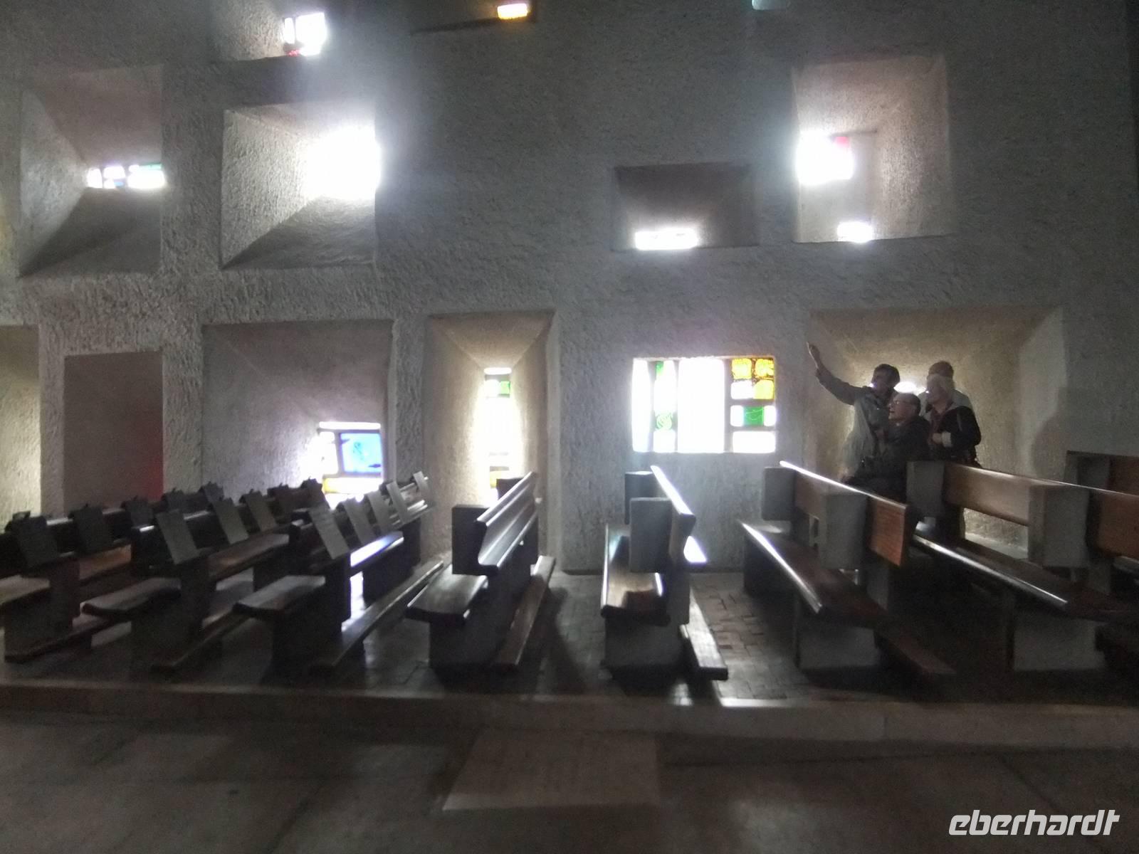 Wir kommen von der Regien Elsass in die Region Franche-Comté, der Freigrafschaft Burgund. Das waldreichen Gebiet ist bekannt durch die Produktion von PKws, Uhren, Spielzeug aber auch hervorragendem Käse. Durch die 30 km breite Burgundische Pforte zwischen Vogesen und Jura sind seit jeher Völkerscharen marschiert. In Belfort wurde ein gewaltiges Festungssystem errichtet, das in 4 großen Kriegen der letzten 200 Jahre zwischen Deutschland und Frankreich eine herausragende Rolle spielte. Wir sehen Teile der Befestigungen Vaubans bei der Durchfahrt durch die Stadt. Einige Kilometer weiter leuchtet die weiße Kapelle der Notre Dame von Ronchamp auf einer Hügelkuppe. Einer der bedeutendsten Architekten des 20. Jhdt., Le Corbusier, hat in Ortsbeton ein modernes sakrales Bauwerk geschaffen. Die Kapelle ist Ziel von Wallfahrten. Ein nicht weniger berühmter Architekt, Renzo Piano, hat ein kleines Kloster und Nebengebäude geschaffen, ohne das Bild der Kapelle zu stören und ohne den Ehrgeiz, Le Corbusier zu übertrumpfen.