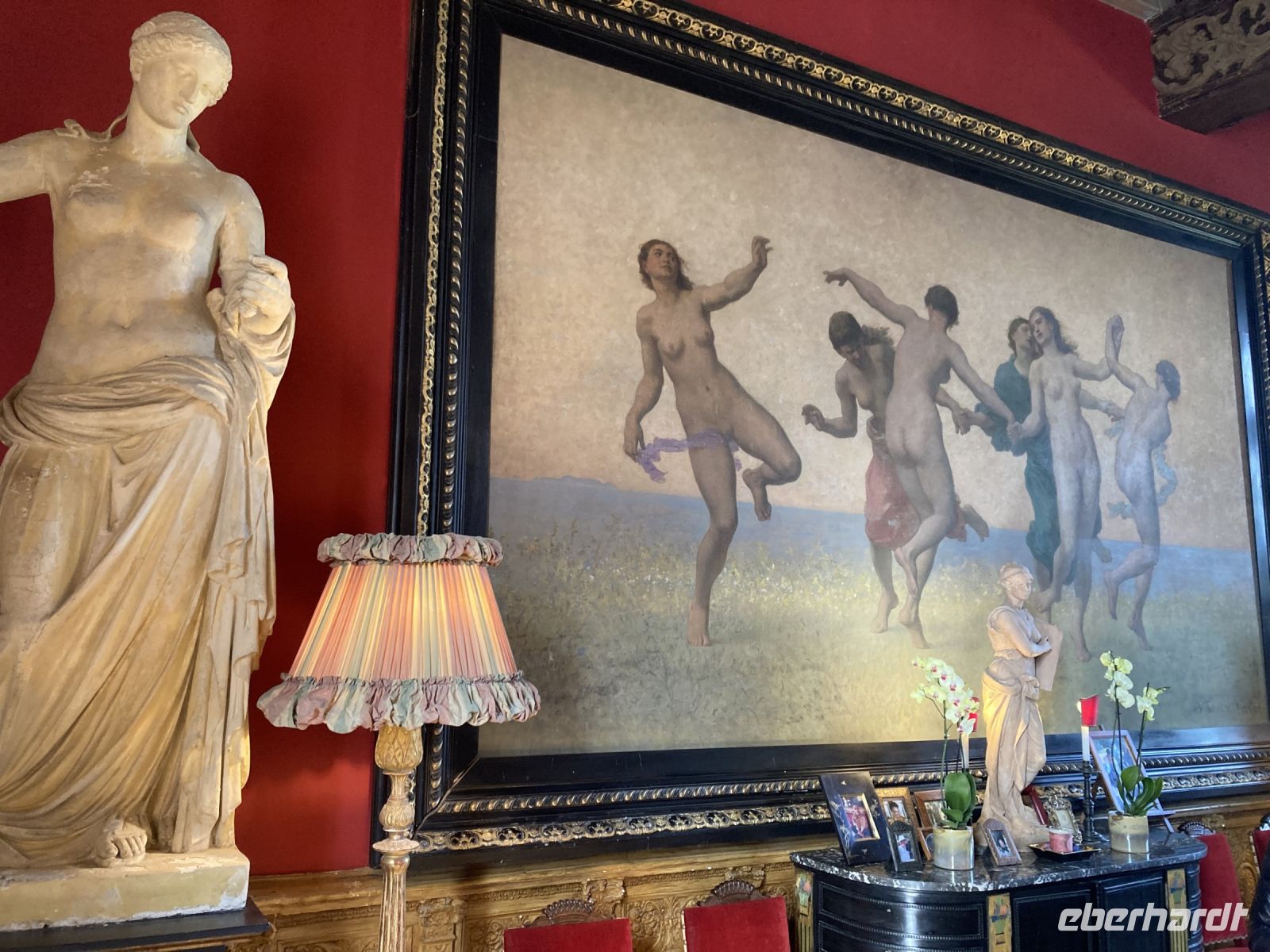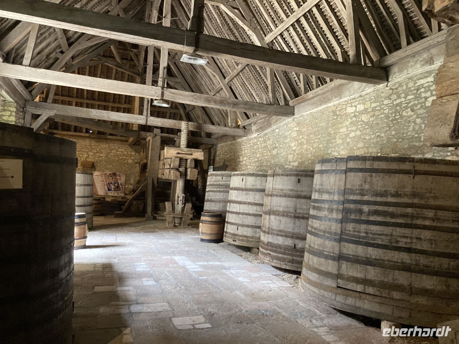 Dies alles erfahren wir von einer charmanten Expertin, die uns in nettem, französisch gefärbten Englisch über das Gelände führt, uns die uralten Weinpressen und riesigen Holzfässer zeigt und uns auch einen Blick in den geheiligten Rittersaal werfen lässt, in dem sich alles um den kostbaren Wein dreht.