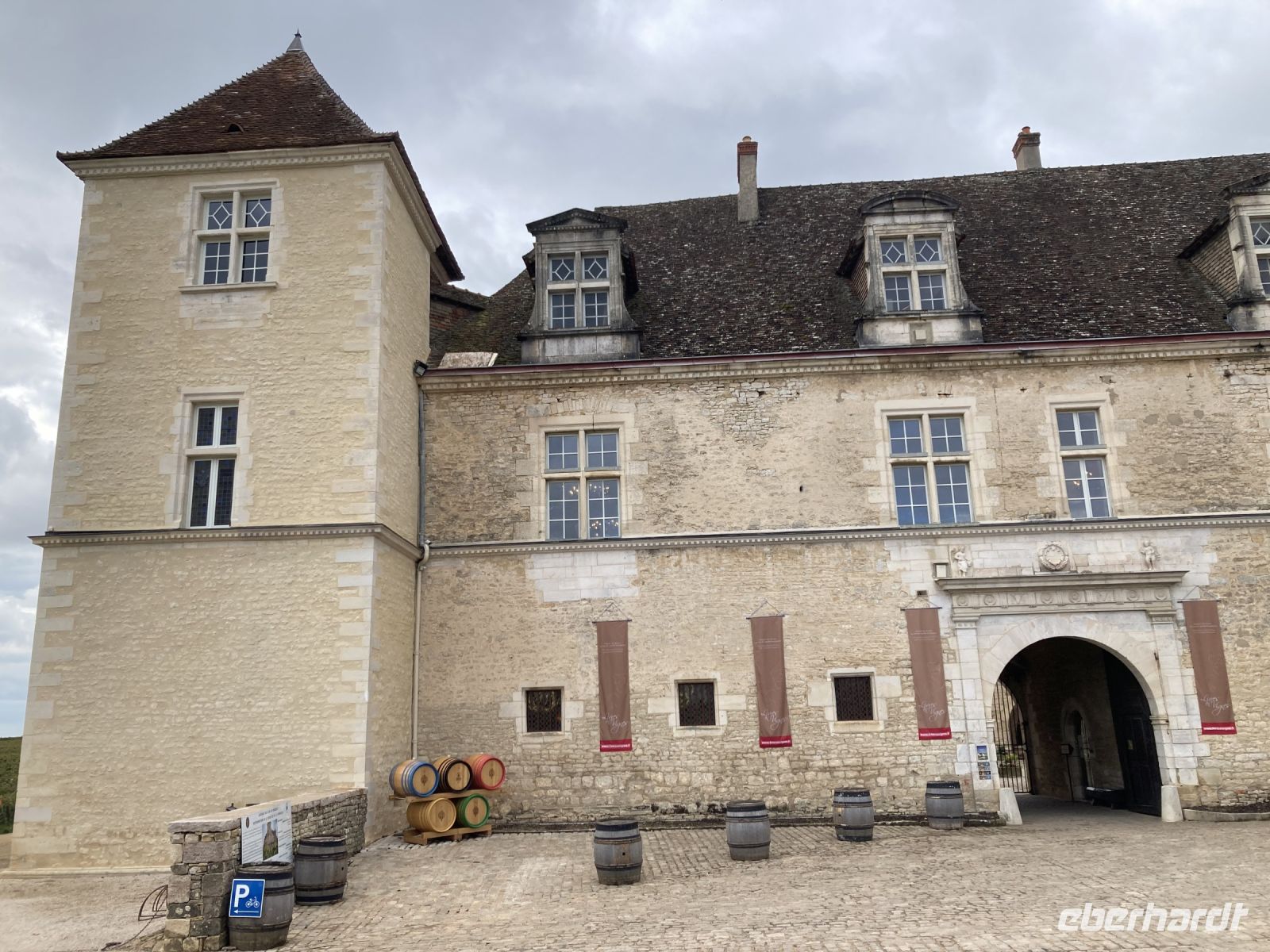 So gestärkt fahren wir durch die teuersten Weinberge der Welt weiter zum Château du Clos du Vougeot. Das Schloss gehörte mit seinen umliegenden Weinbergen im Mittelalter den Zisterziensermönchen von Citeaux. Nach mehrfachen Besitzerwechseln ist es seit Mitte des 20. Jh. im Besitz der Ritterschaft der Weinverkoster, der „Chevaliers du Tastevin“, die gegründet wurde, um dem Burgundischen Wein zum Weltruhm zu verhelfen. Mehrmals im Jahr veranstalten die Ritter hier große Festessen mit Weinverkostungen, die prominentes und zahlungskräftiges Publikum anzieht und die in der Weinversteigerung im November gipfelt.