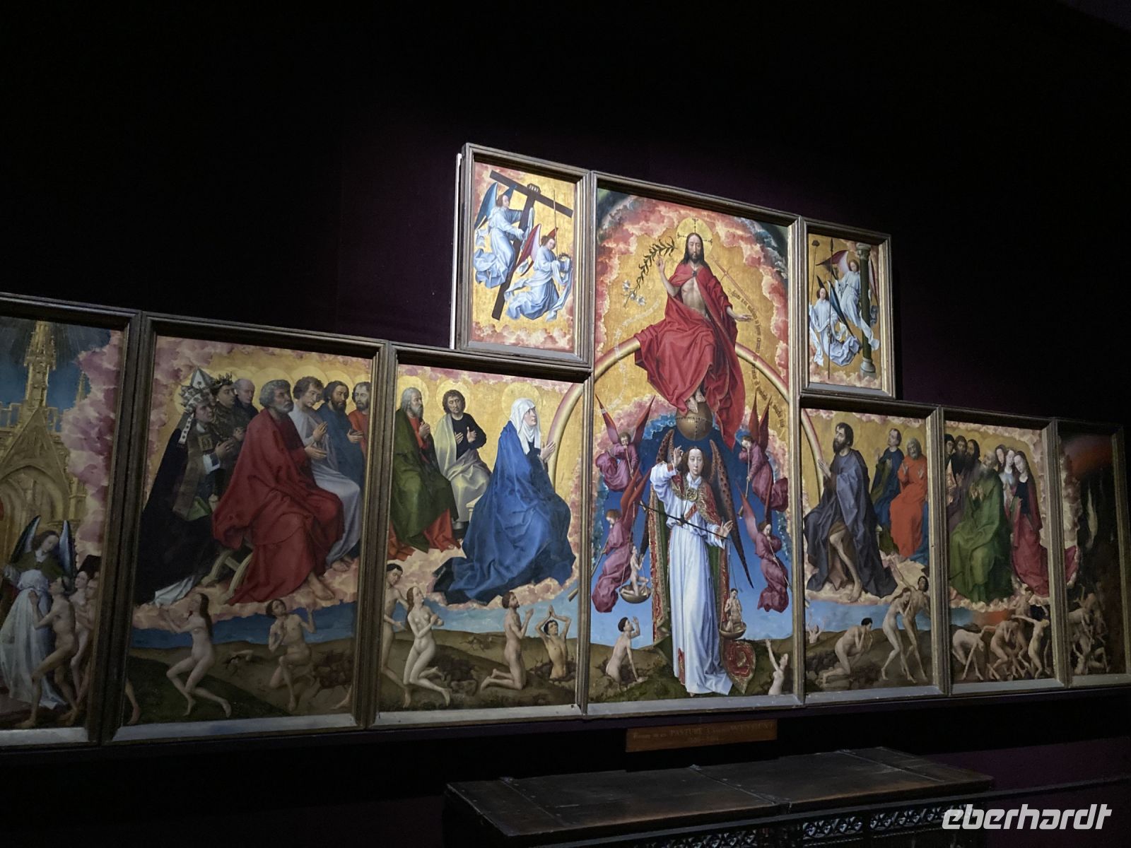 Dank der organisierten Audioguides kann sich jeder Gast dieses herrliche Kunstwerk sowie den Krankensaal und die medizinischen Räume eigenständig an- und im Anschluss noch ein wenig im Städtchen umsehen, um vielleicht den Belfried zu besteigen oder dem Tapisserien-Zyklus der Mariengeschichte in der Kollegiatskirche einen Besuch abzustatten.