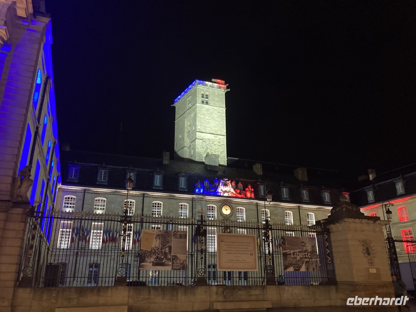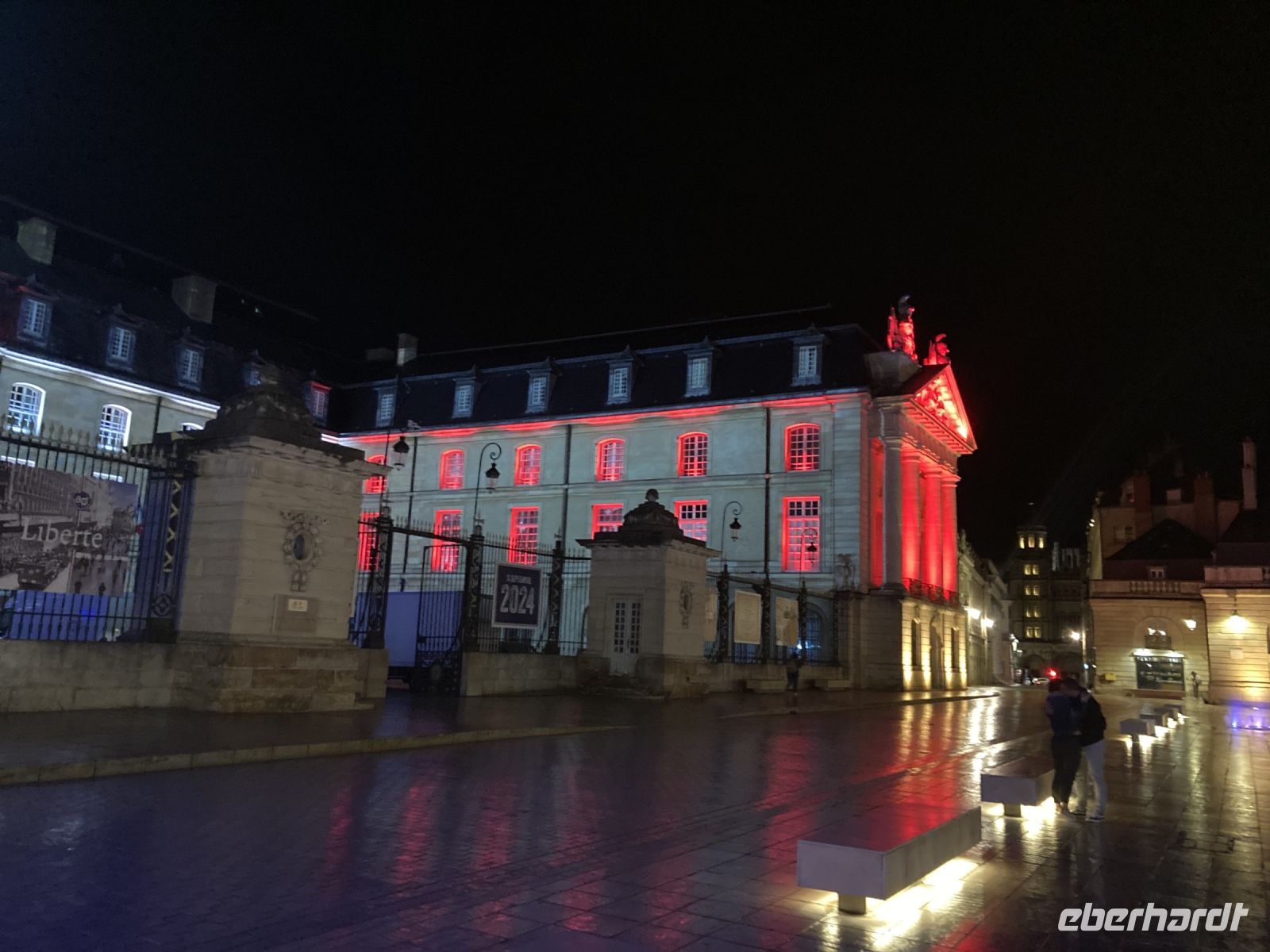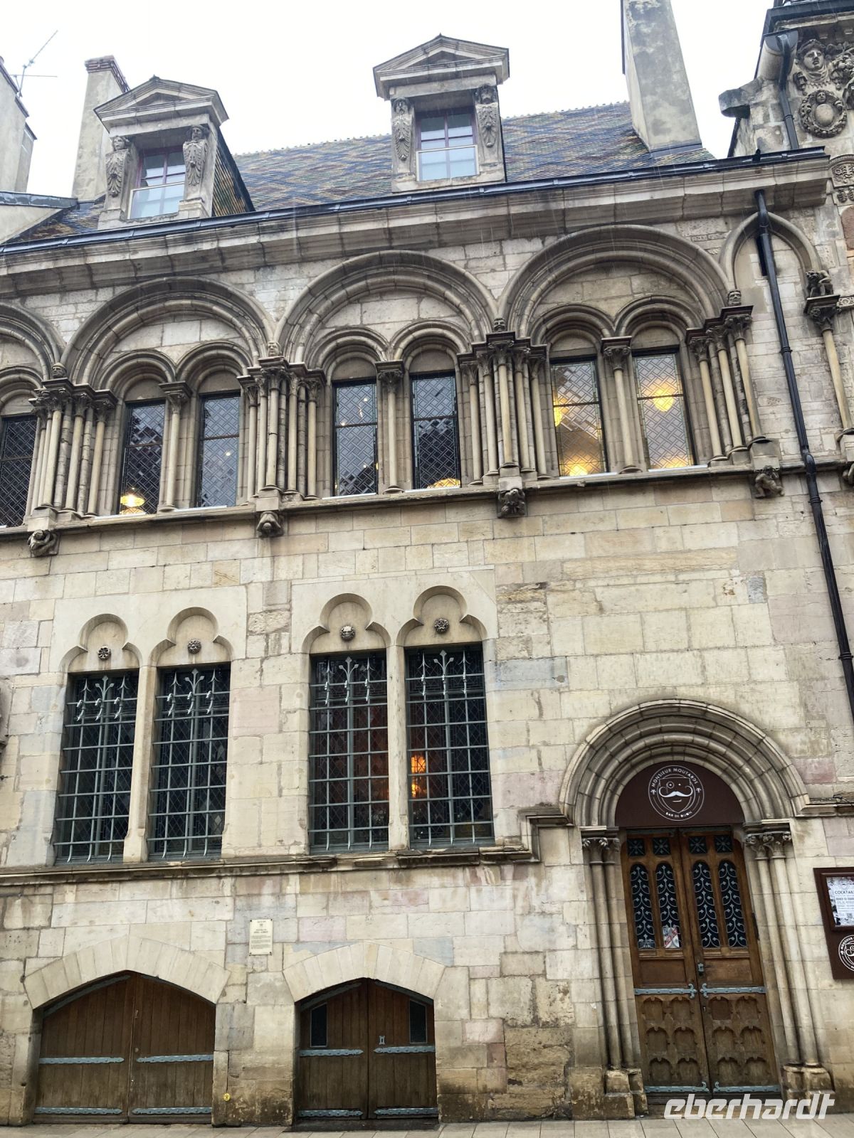 Am Abend erreichen wir schließlich Dijon, die alte Residenzstadt der Burgundischen Herzöge, die auch heute wieder Hauptstadt der ziemlich großen Region Grand Est ist. Nahe der Altstadt checken wir in unserem Hotel ein, in dem wir für die nächsten sechs Tage residieren. In einem mittelalterlichen Gebäude liegenden Restaurant nehmen wir unser erstes gemeinsames Abendessen ein, wobei der Reiseleiter dem Manager die vielen Sonderwünsche bezüglich der Speisen nahebringen muss.