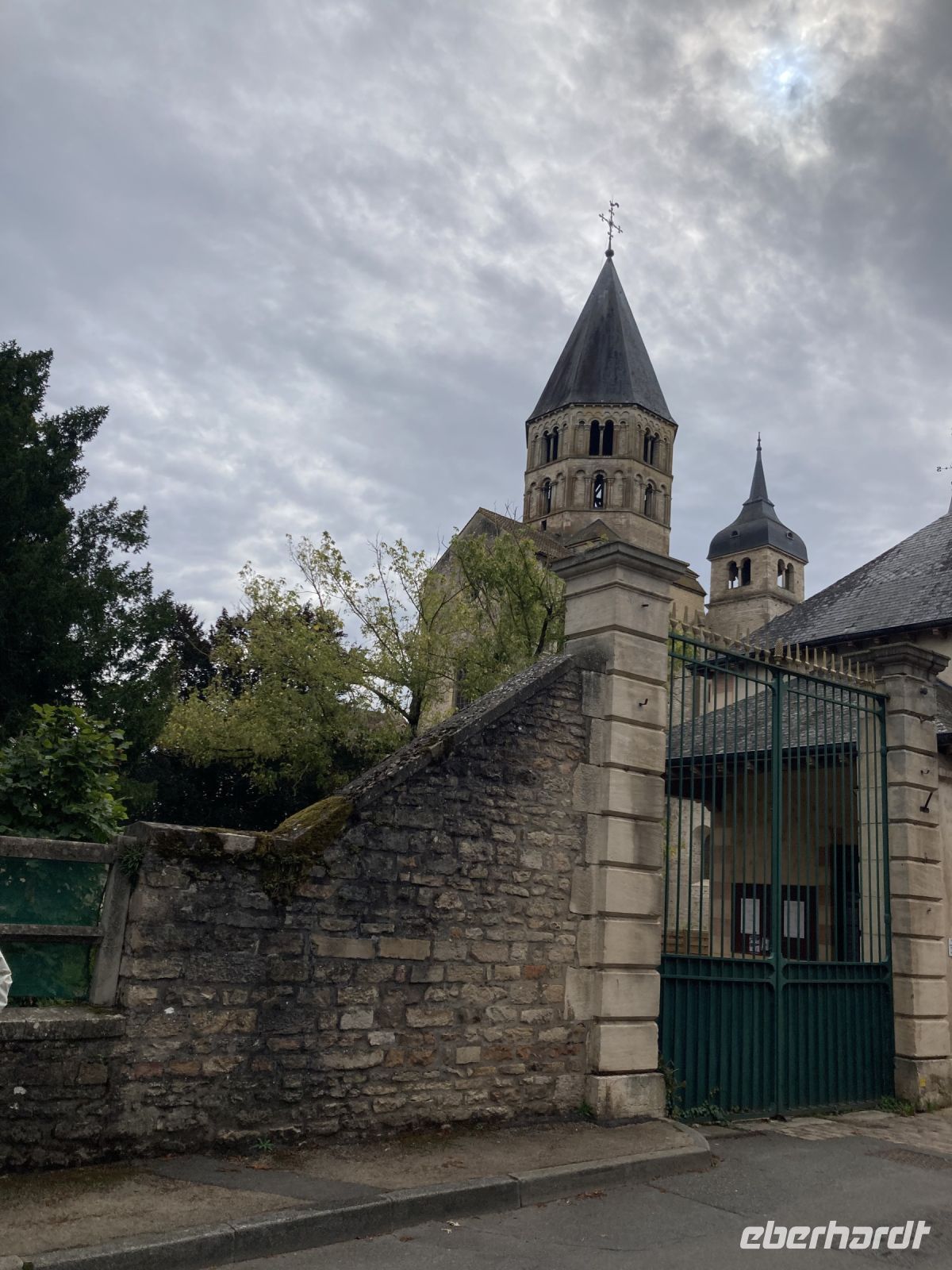 Dasselbe können wir auch bei unserem nächsten Kirchenbesuch feststellen. In Parey-le- Monial stellt die um 1100 erbaute Kirche Sacre-Coeur eine verkleinerte Ausgabe der ursprünglichen Abteikirche von Cluny dar, da der bekannter Abt Hugo auch diese Basilika errichten ließ. Zwar ist das Bauwerk im fast durchgängig romanischen Stil sehr schlicht gehalten, wirkt aber mit seinen klaren Formen, der räumlichen Anordnung und seinen überaus stimmigen Proportionen extrem anziehend. Lohnend ist auch eine Umrundung der Kirche, um die Apsis mit ihrem herrlichen Kapellenkranz zu bewundern.