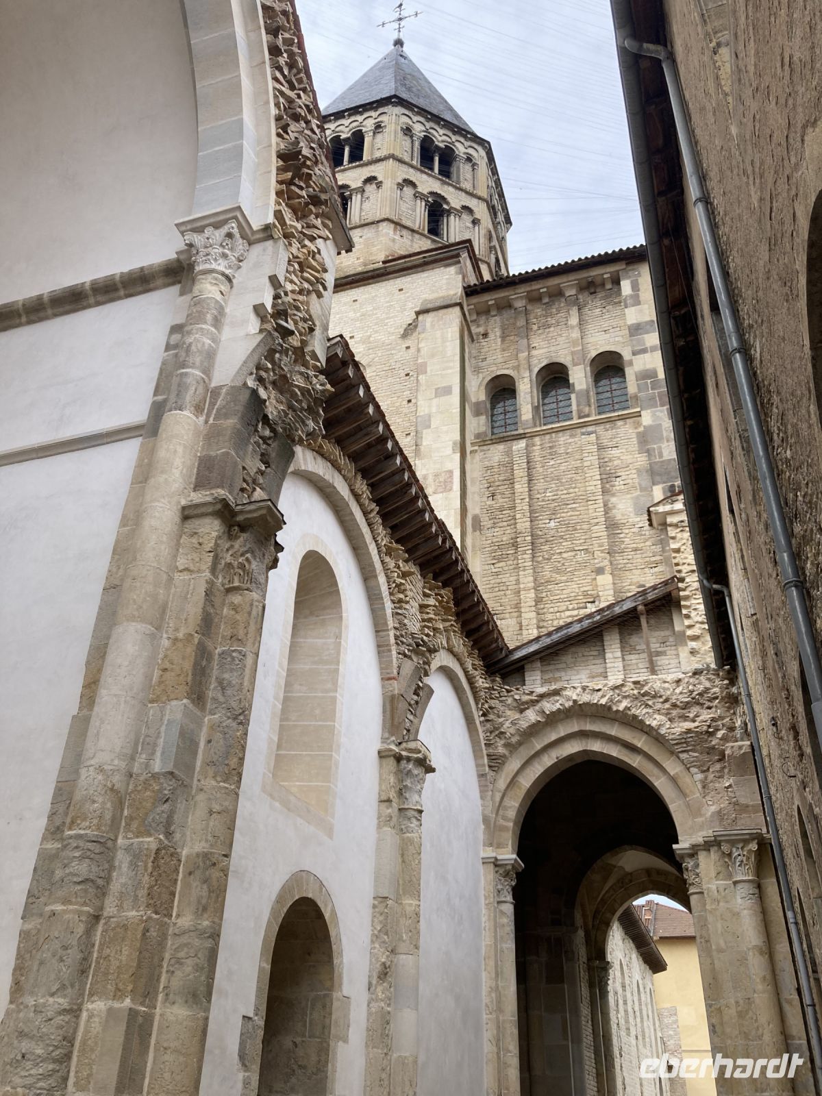Nach so viel Adelspracht wenden wir uns als Nächstes dem vordergründig kargen Mönchsleben zu und besuchen das absolute klerikale Zentrum des Mittelalters, das Städtchen Cluny. Hier stand im 12.Jahrhundert die größte Kirche des Kontinents, von deren Abtei aus über 1000 neue Klöster gegründet wurden und deren Äbte eine gewichtige Rolle in der Europäischen Politik spielten. Der Grundriss der 187 Meter langen fünfschiffigen Basilika hatte die Form eines Patriarchenkreuzes mit zwei Querbalken. Diese außerordentliche Gebäudelänge wurde für die häufig stattfindenden Prozessionen gebraucht, die vor den Augen der Pilger die Macht der Kirche repräsentieren sollten. Von Bedeutung für die Architekturgeschichte sind die hier erstmals in Europa verwendeten spitzbogigen Tonnengewölbe von Mittelschiff und Querhaus, die Vorbild für viele Kirchen in weitem Umkreis waren, etwa für die schon besichtigten Kathedralen in Paray-le-Monial und in Autun.