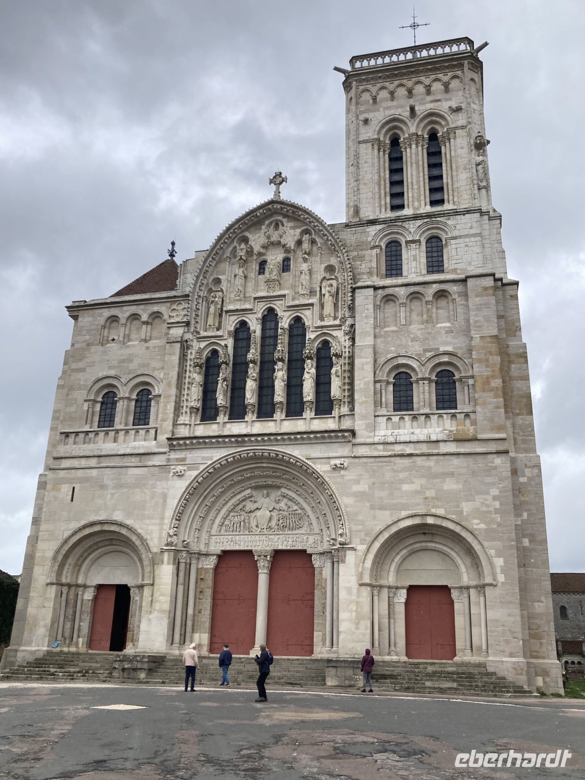 Doch wir haben an diesem Tag noch viel vor und fahren im wieder einsetzenden Regen weiter nach Vézelay, um die hoch über dem Ort thronende Basilika zu besuchen. Schon ab dem 9. Jahrhundert verfügte Vézelay angeblich über Reliquien der heiligen Maria Magdalena. Ein in dieser Zeit gegründetes Kloster förderte diesen Magdalenenkult und entwickelte sich im Hochmittelalter so zu einem der wichtigsten Wallfahrtsorte des Abendlandes, zumal auch die Pilger nach Santiago de la Compostela sich hier zu Gruppen zusammenschlossen. Weltgeschichtliche Bedeutung erfuhr die Kathedrale, als der Heilige Bernhard von Clairvaux 1146 auf der Treppe eine riesige Menschenmenge zur Teilnahme am 2. Kreuzzug motivierte. Nachdem aber um 1270 die echten Gebeine Magdalenas in St.-Maximin in Südfrankreich entdeckt wurden und der damalige Papst sich auf deren Seite schlug, blieben die Pilger aus und Kirche und Kloster verloren ihre Bedeutung. Erst mit der im Zuge der Romantik erfolgten Neubewertung des Mittelalters erwachte wieder ein breites Interesse für die Kathedrale, die 1840 von dem jungen Viollet le Duc, dem König aller Kirchenrenovierer, umfassend restauriert wurde, was schließlich 1979 zur Deklaration als Unesco-Weltkulturerbe führte.