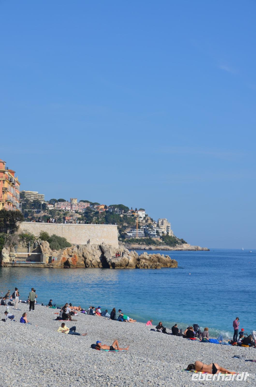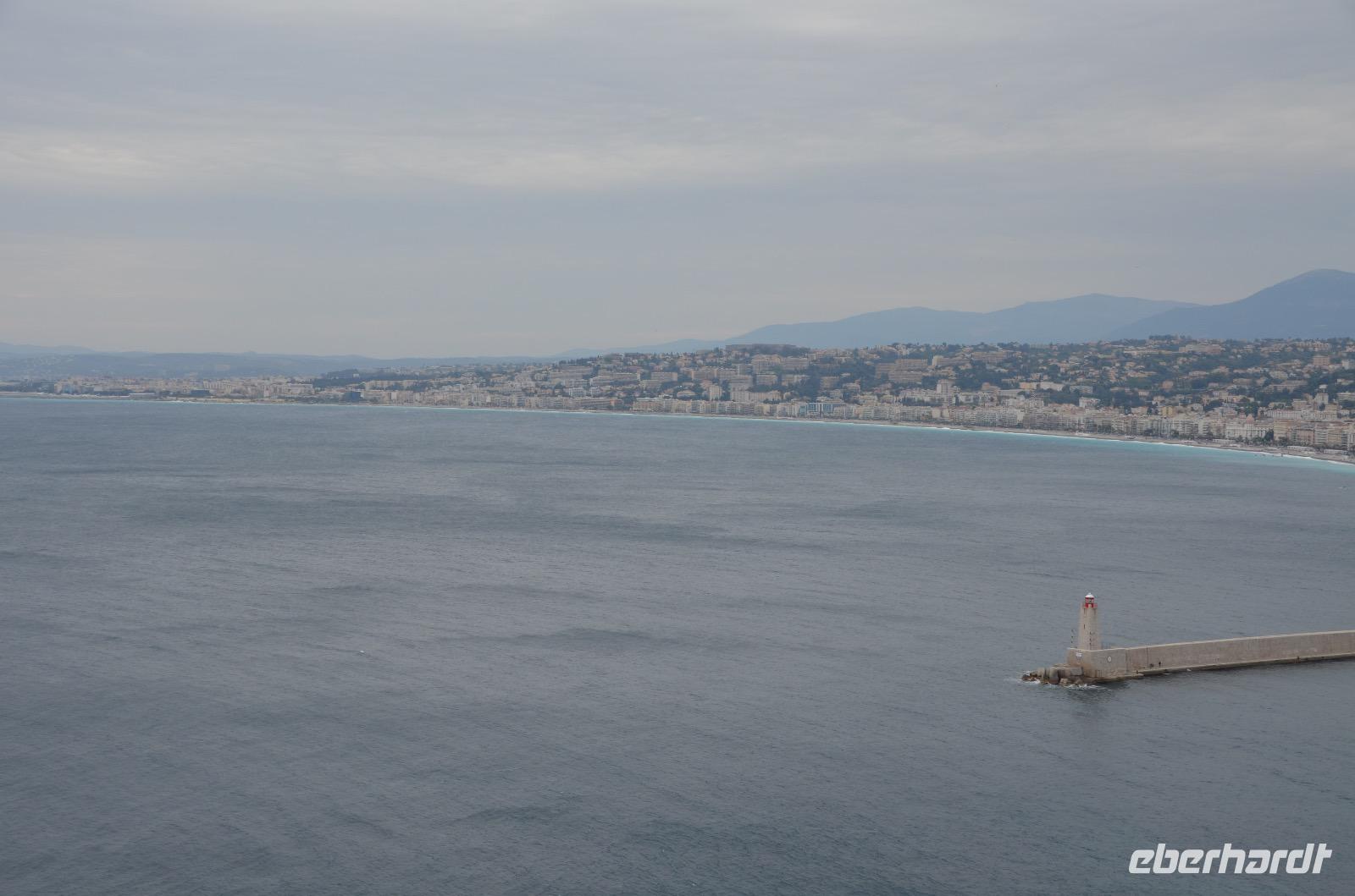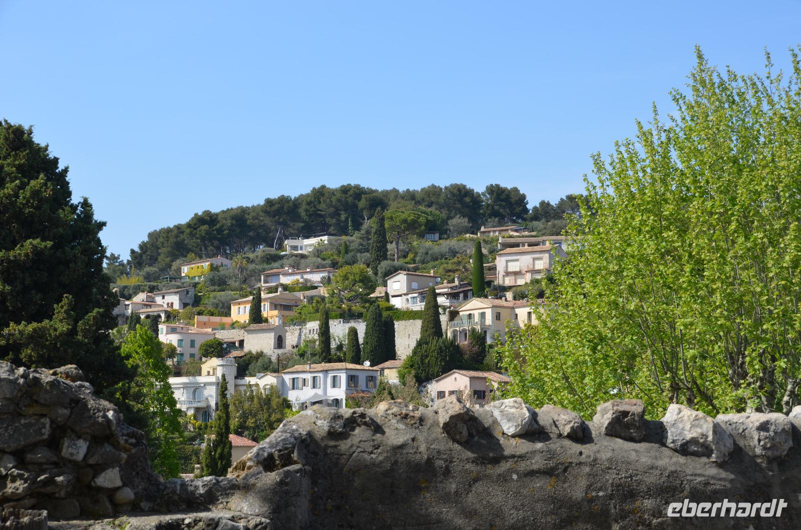 Frisch gestärkt, machten wir uns auf den Weg zurück nach Nizza. Vorbei an den Ruinen einer römischen Wasserleitung, fuhren wir auf die wunderschöne Küstenstraße. Immer entlang des blauglänzenden Mittelmeeres, boten sich nach jeder Kurve neue atemberaubende Aussichten. Hier liegt auch die kleine Goldinsel, um die sich viele Mythen halten. Sie erhielt ihren Namen im Jahre 1897, als sie für 280 Goldfranken versteigert wurde. Seitdem ist das Grundstück in Privatbesitz. Man erzählt, dass später ein Arzt bei einem Kartenspiel die Insel gewonnen haben soll. Er baute einen Turm auf der Landzunge und ernannte sich selbst zum König seiner Insel.