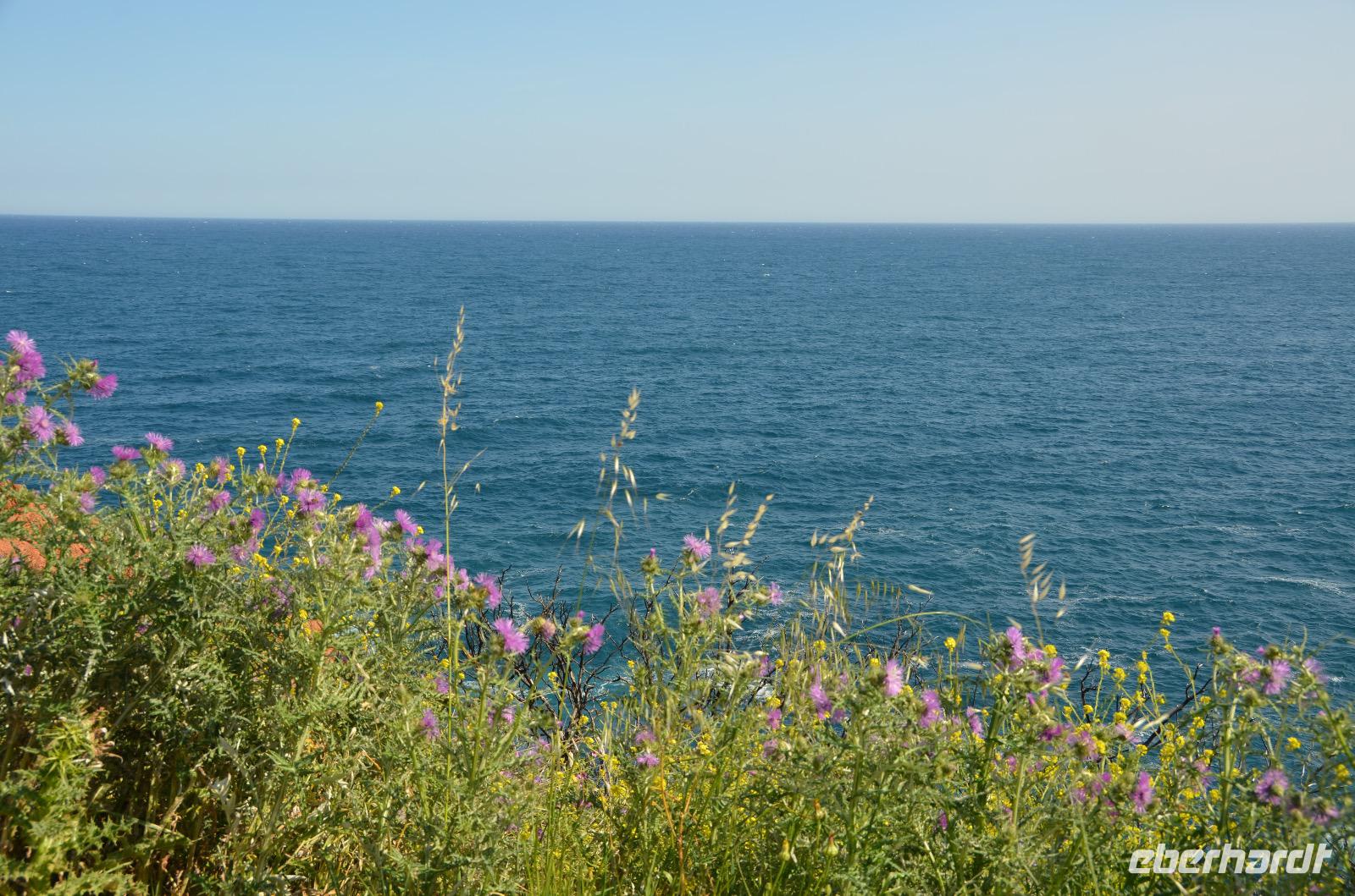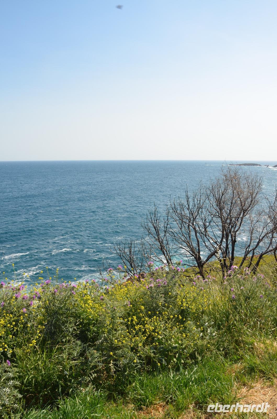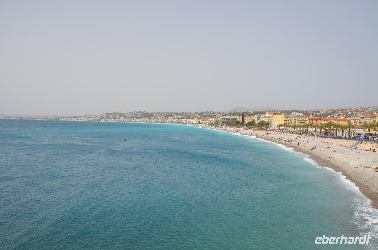 Frisch gestärkt, machten wir uns auf den Weg zurück nach Nizza. Vorbei an den Ruinen einer römischen Wasserleitung, fuhren wir auf die wunderschöne Küstenstraße. Immer entlang des blauglänzenden Mittelmeeres, boten sich nach jeder Kurve neue atemberaubende Aussichten. Hier liegt auch die kleine Goldinsel, um die sich viele Mythen halten. Sie erhielt ihren Namen im Jahre 1897, als sie für 280 Goldfranken versteigert wurde. Seitdem ist das Grundstück in Privatbesitz. Man erzählt, dass später ein Arzt bei einem Kartenspiel die Insel gewonnen haben soll. Er baute einen Turm auf der Landzunge und ernannte sich selbst zum König seiner Insel.