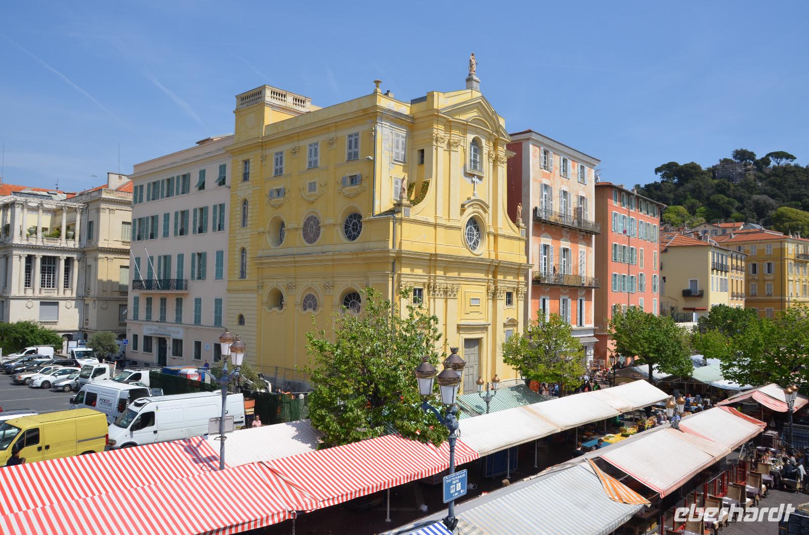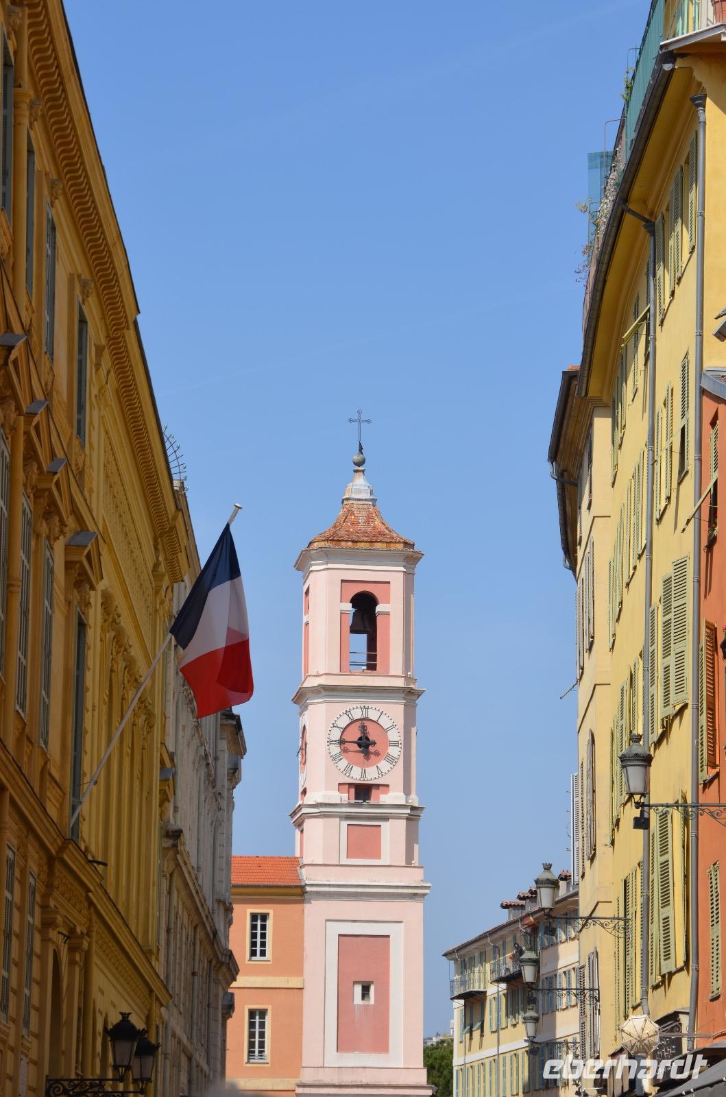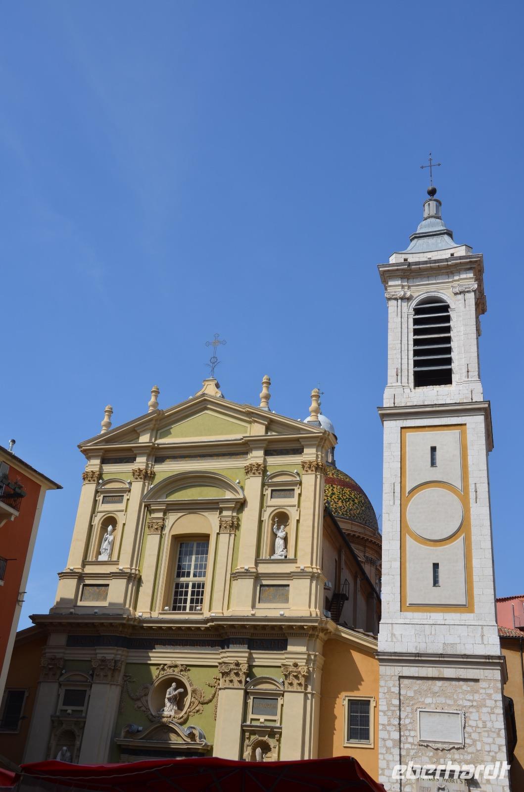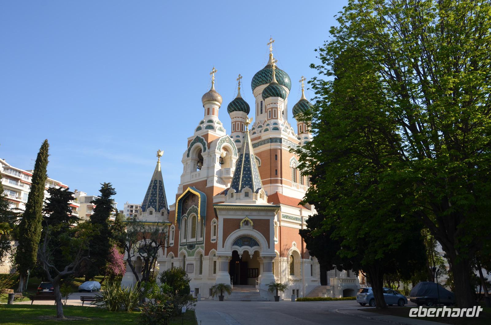 Nach unserem ersten französischen Frühstück, begann unsere Stadtrundfahrt durch Nizza, die fünft größte Stadt Frankreichs. Unser Reiseleiter Richard führte uns als erstes zu einer 1912 erbauten russischen Kirche. Mit ihren prächtigen Zwiebelkuppeln bot sie uns ein tolles Fotomotiv. Das Gotteshaus gehört heute dem russischen Staat. Die Geschichte für die Entstehung dieser Kirche reicht allerdings bis Mitte des 19. Jahrhunderts zurück, als die russische Zarin Alexandra begann, ihren Urlaub in Nizza zu verbringen. Diese Tradition führte die Zarenfamilie fort.
