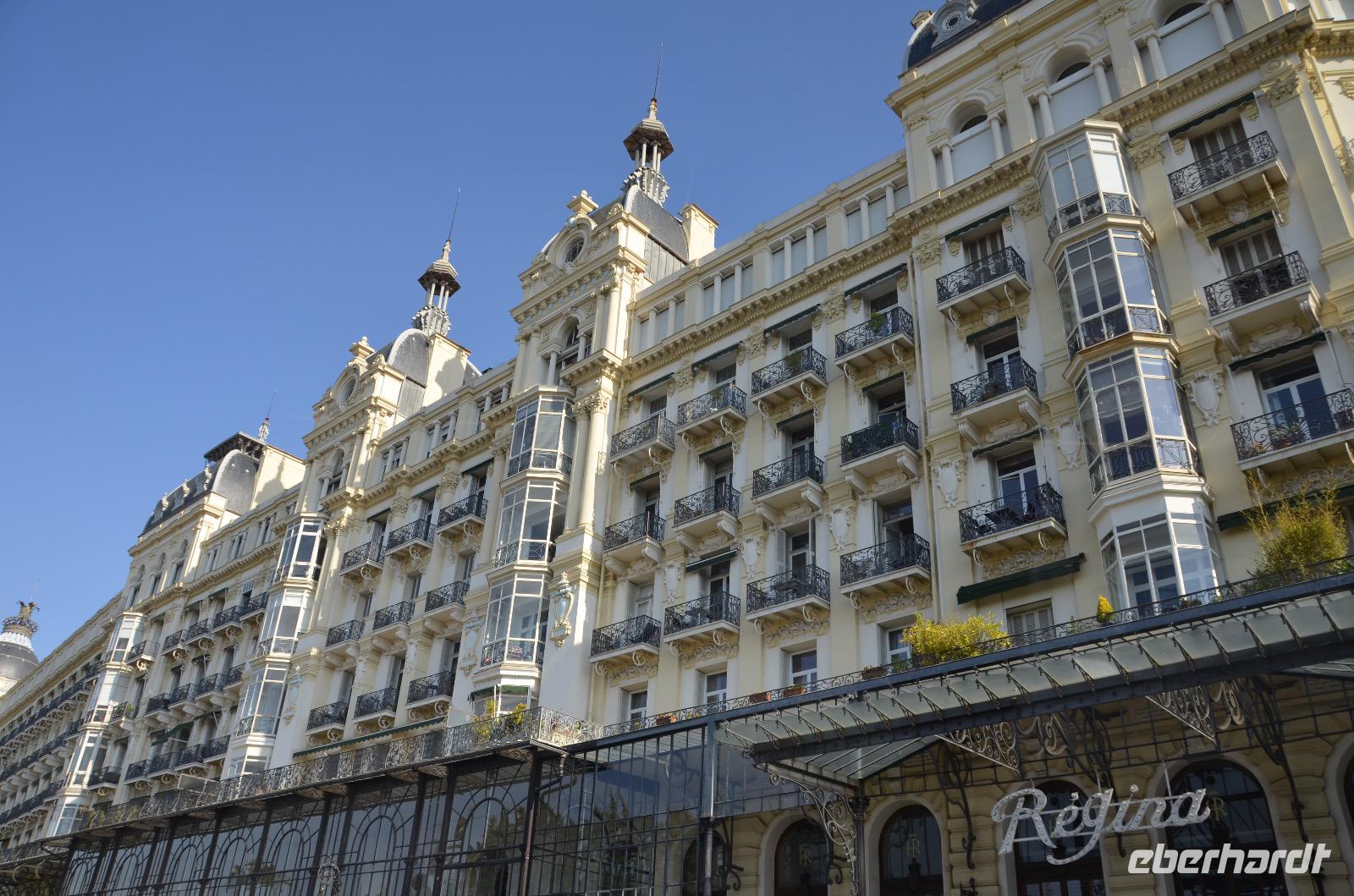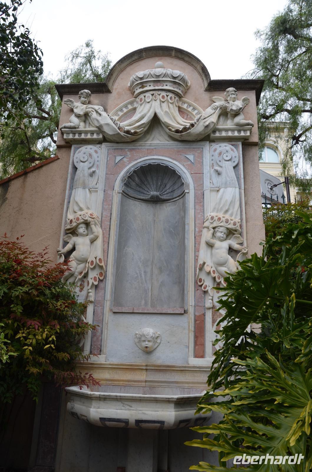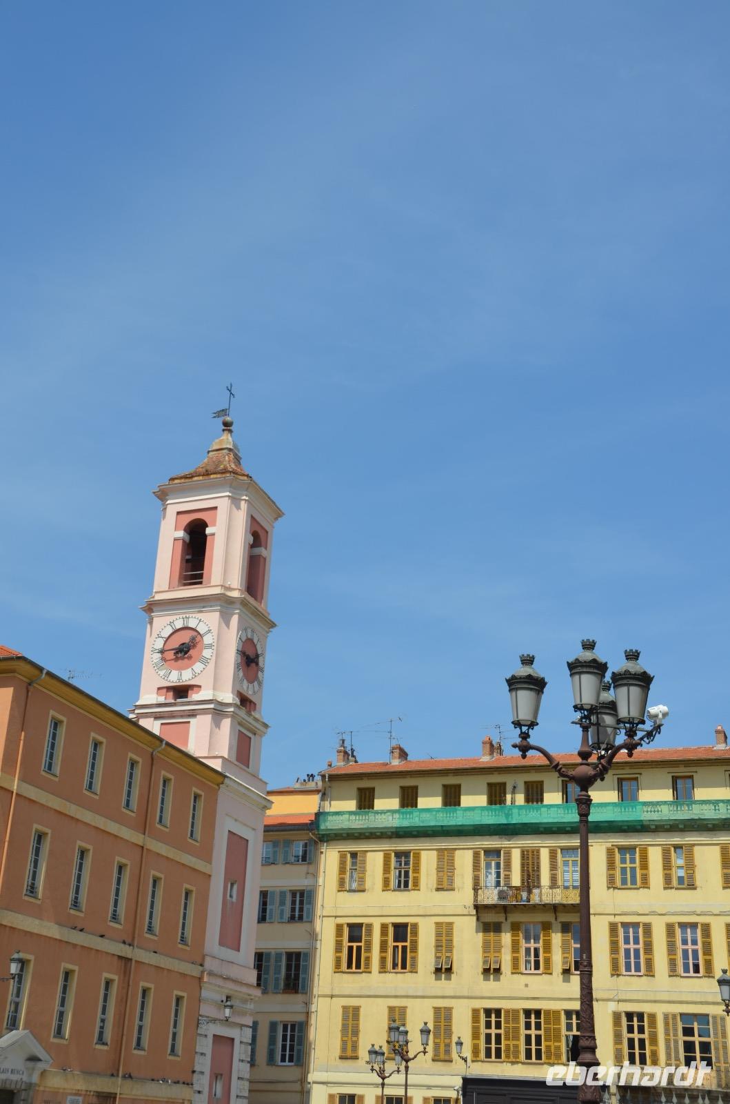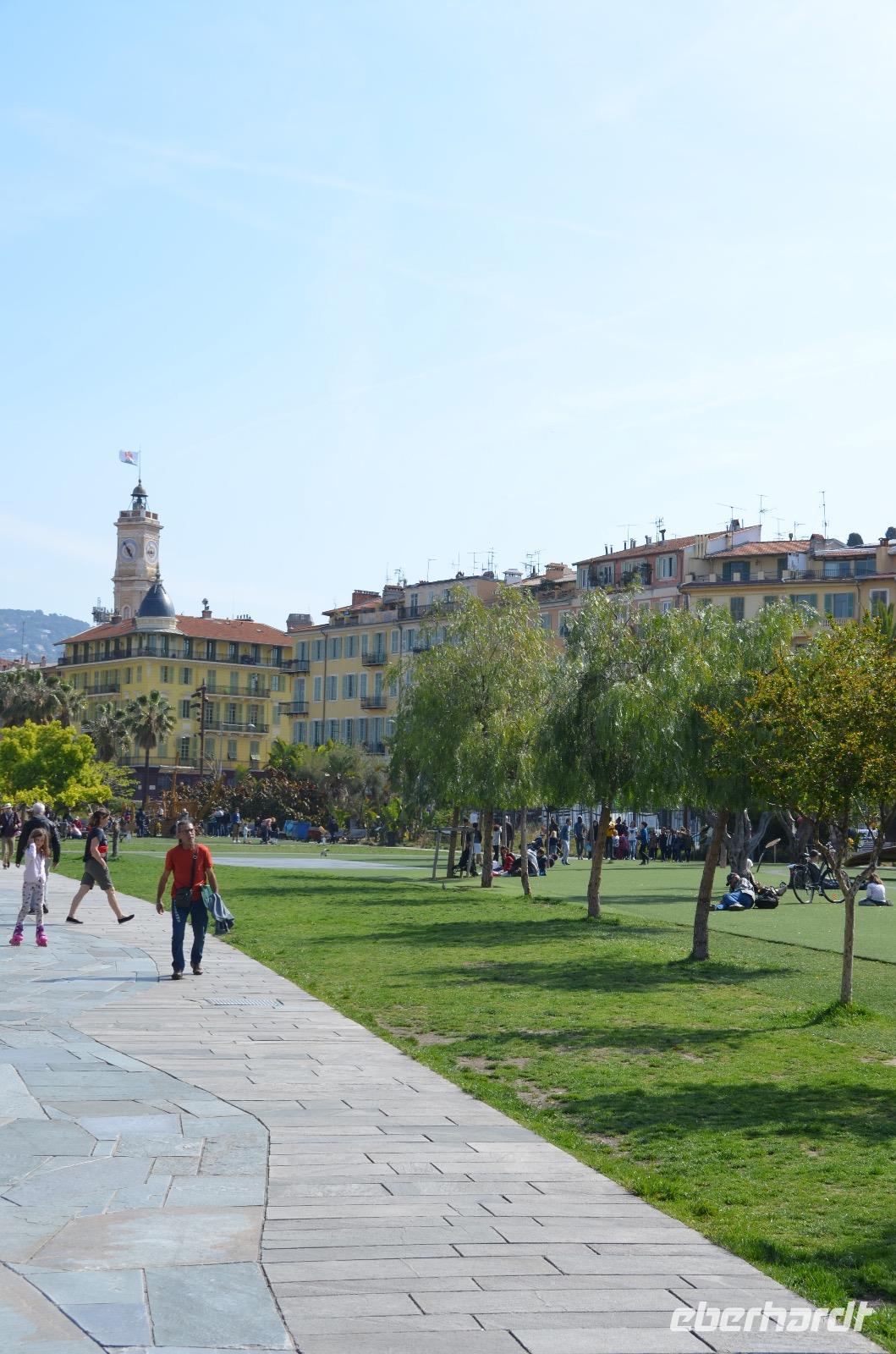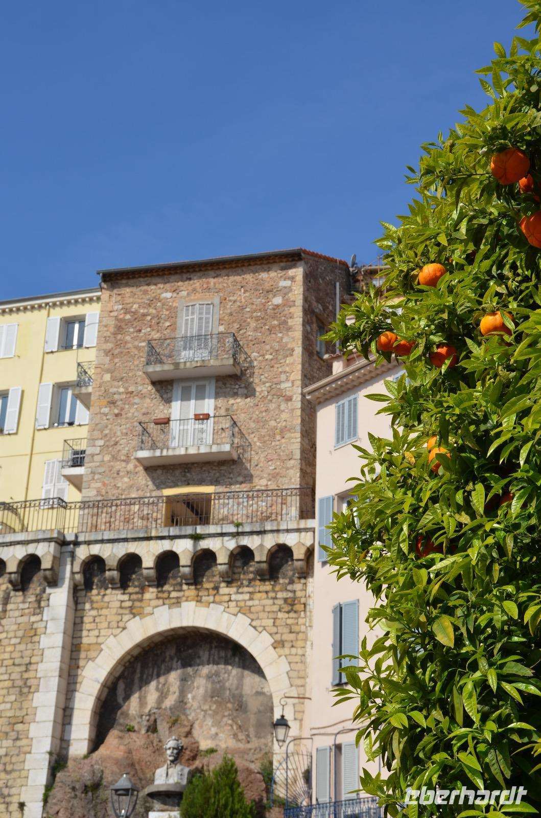 Immer der Sonne entgegen, kamen wir schließlich an dem Franziskaner Kloster mit seiner Kirche aus dem 16. Jahrhundert an. Richard führte uns in den Klostergarten und wir waren beeindruckt von der Blüten- und Pflanzenvielfalt. Der Mohn blühte hier in gelb, orange sowie rot, die Rosen rankten über den Torbögen und die Palmenblätter wehten im Wind. Voller Begeisterung spazierten wir durch den liebevoll angelegten Garten und entdeckten sogar ein paar Mangoldpflanzen, welche als Delikatesse an der Côte d'Azur gelten. Auf dem Rückweg schauten wir auch in die Klosterkirche rein, bevor es mit dem Bus Richtung Altstadt ging. Unser Weg führte uns an dem berühmten, ehemaligen Hotel Regina vorbei. Vor dem großen Komplex steht eine Statue der Königin Viktoria von England, die hier drei Winter verbrachte. Insgesamt hat das Haus 600 Zimmer, welche nach dem 1. Weltkrieg als Appartements verkauft wurden.