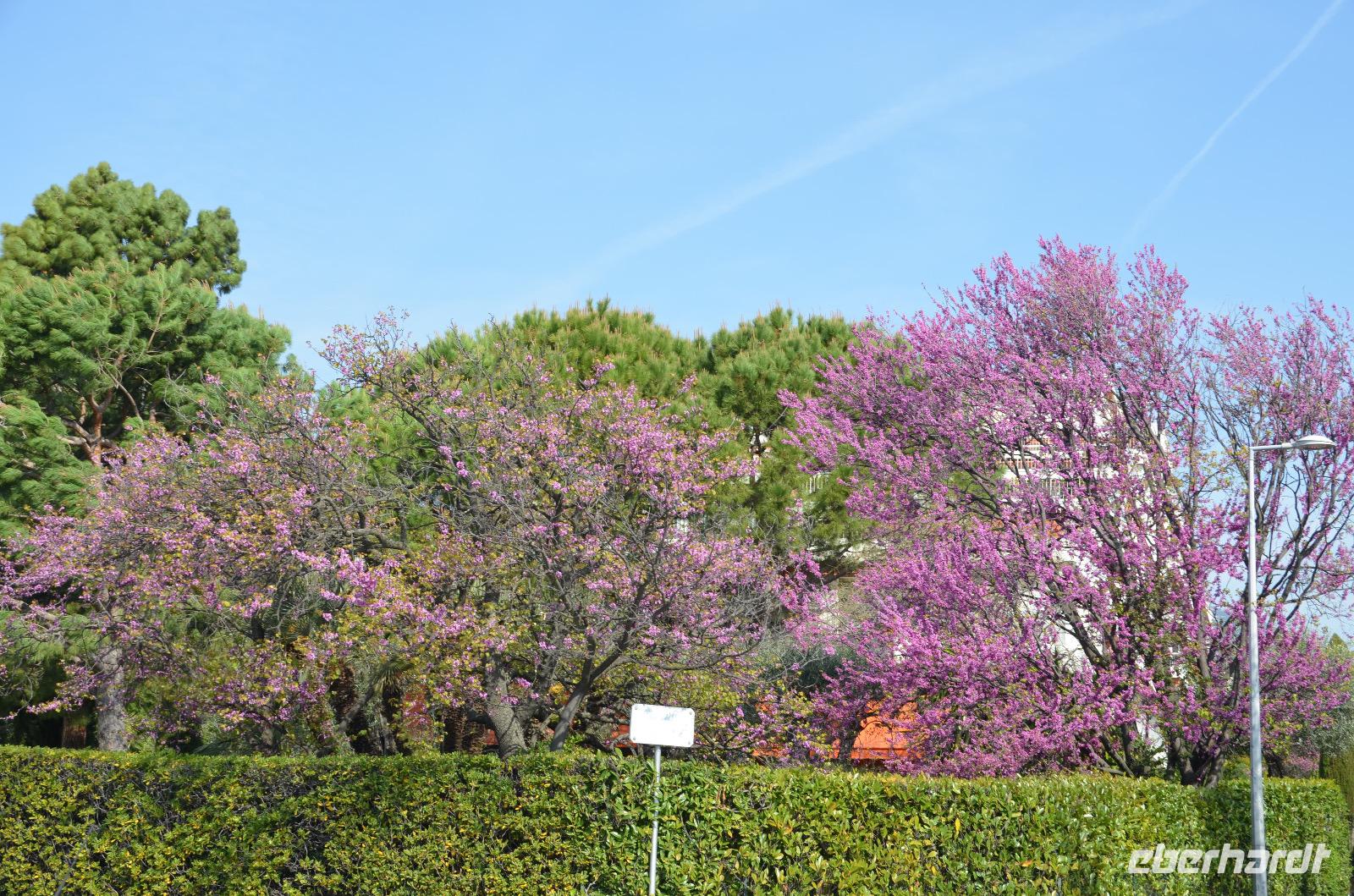 Weiter ging es für uns nach Cimiez auf den Hügel. Man vermutet, dass damals ca. 100.000 Einwohner in der römischen Stadt lebten. Unser Rundgang begann an den Ruinen der römischen Arena, die bis zu 5.000 Leuten Platz bot. Leider wurde die Stadt größtenteils von den Barbaren abgerissen. Vorbei an Johannisbrotbäumen und wunderschön, lila blühenden Judasbäumen, spazierten wir Richtung Matisse Museum. Auffällig an den blühenden Bäumen war, dass sie noch keine Blätter trugen. Denn die Besonderheit der Judasbäume ist, dass die Blätter erst nach der Blütezeit gebildet werden. Diese gaben der Pflanze jedoch ihren Namen, da ihre Form an runde Münzen erinnert.