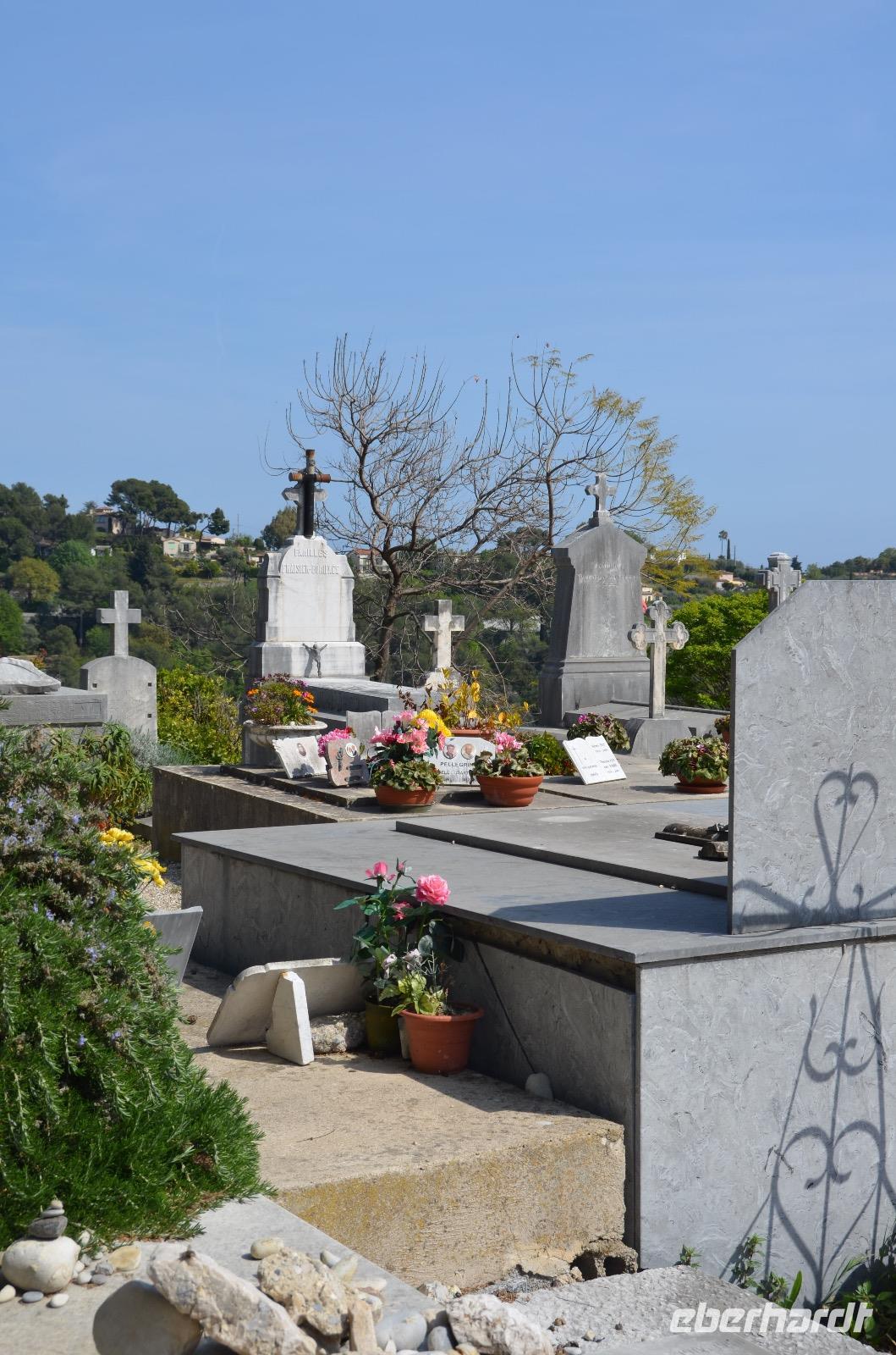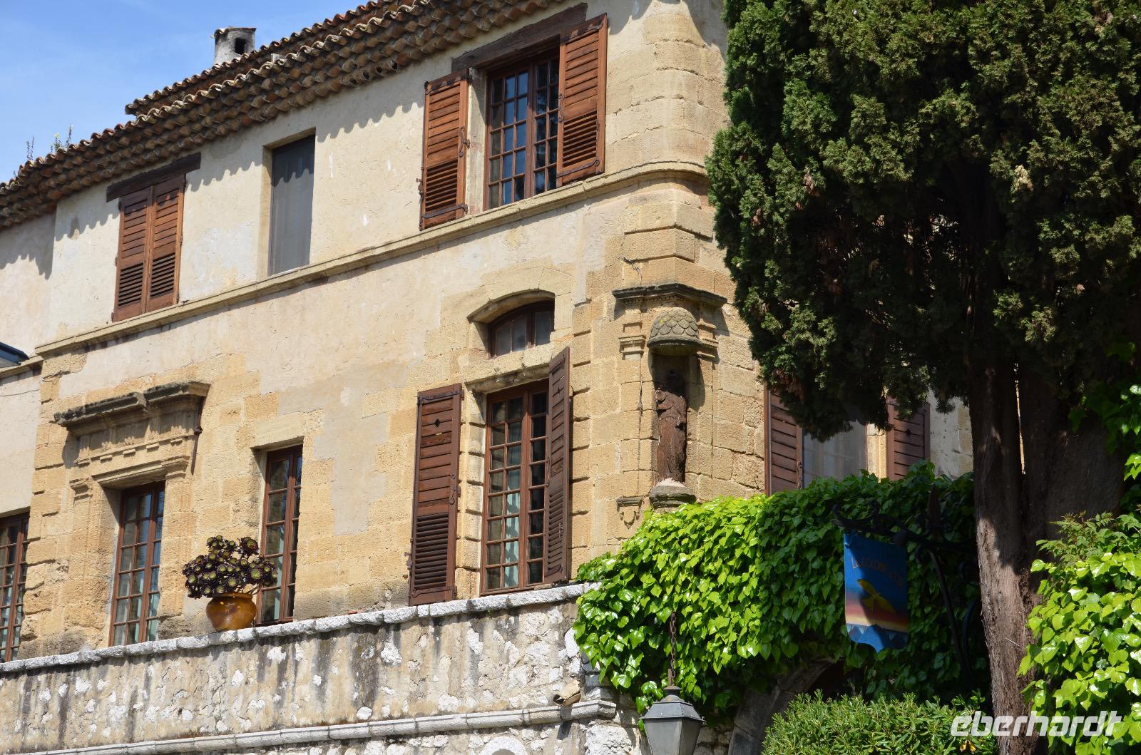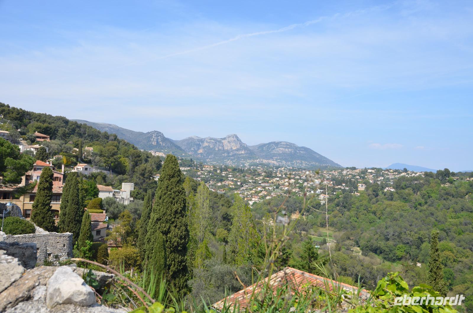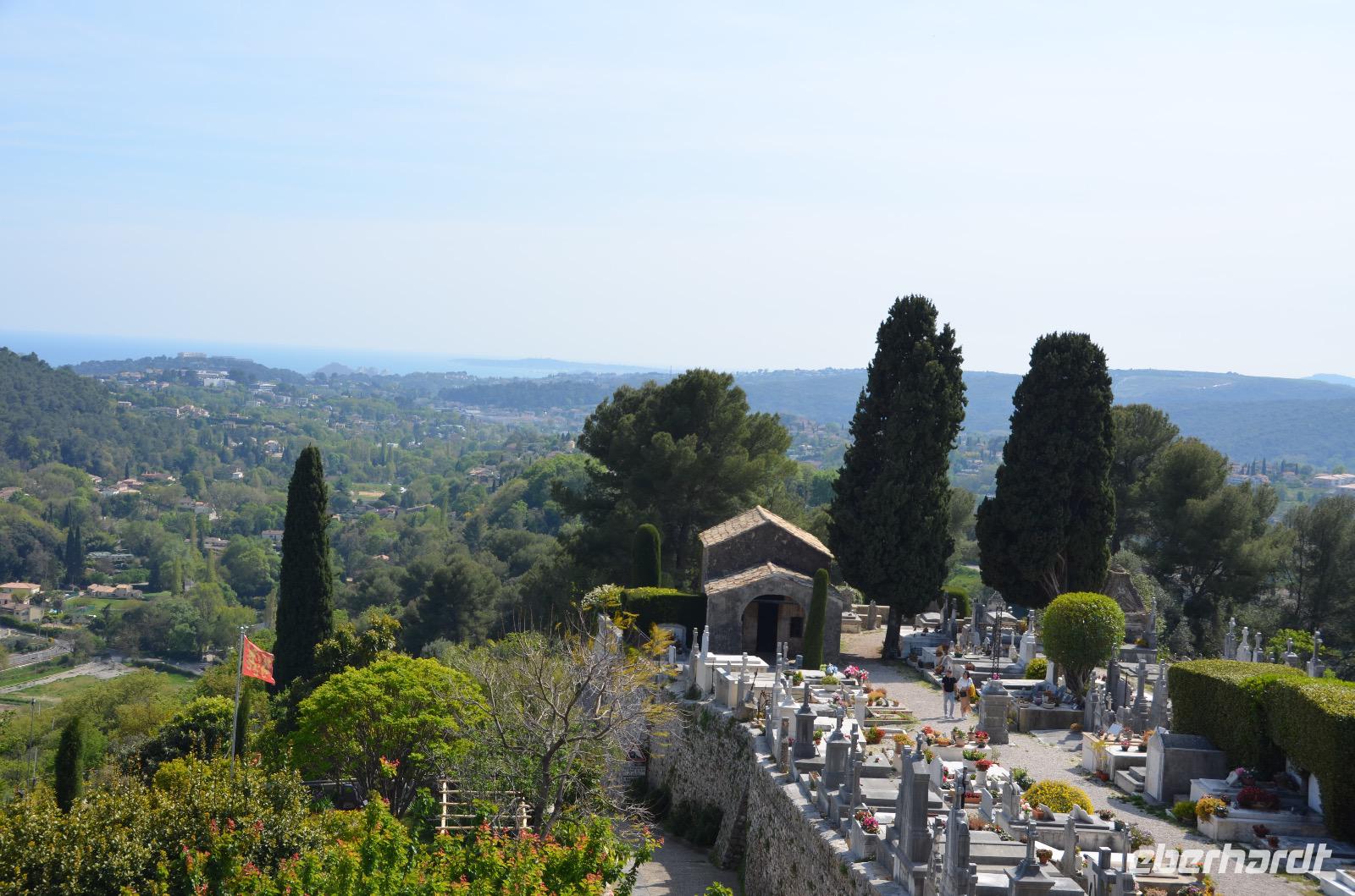 Als wir in Saint-Paul-de-Vence ankamen, wurde uns schnell klar, wieso sich viele Künstler genau diesen Ort ausgesucht hatten. Von dem Bergdorf aus, hatte man eine traumhafte Sicht auf die umliegenden Berge. Bei der Gründung der Ortschaft entschied man sich allerdings aus schütztechnischen Gründen für diese Lage. Auf den Hängen baute man verschiedene Obst- und Gemüsesorten an, heute werden die Berge vor allem als Schaf- und Ziegenweiden genutzt. Wir spazierten durch die engen Gassen mit ihren zahlreichen Galerien, bis wir auf den höchsten Punkt des steinernen Dorfes kamen. Hier befindet sich das Schloss aus dem 13. Jahrhundert. Direkt daneben steht ein hoher Glockenturm. Dieser stammt aus dem 12. Jahrhundert und wurde ursprünglich als Wachturm errichtet. Während unseres Spazierganges entdeckten wir außerdem einen Brunnen von 1850. Zu dieser Zeit war es eine Besonderheit so leicht an Trinkwasser zu kommen. Direkt dahinter befindet sich der ehemalige Waschplatz. Unser Rundgang endete am Friedhof, von wo aus man einen fantastischen Blick auf das Cap d'Antibes hat. Hier liegt unter anderem Marc Chagall begraben. Der Künstler verliebte sich einst in die hier herrschenden Farb- und Lichtverhältnisse.