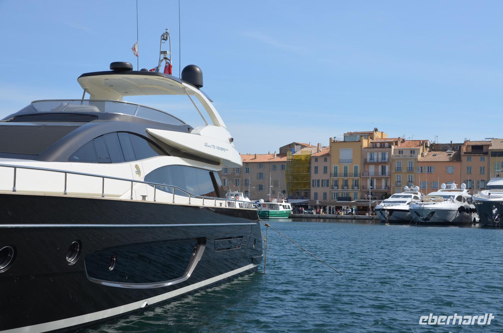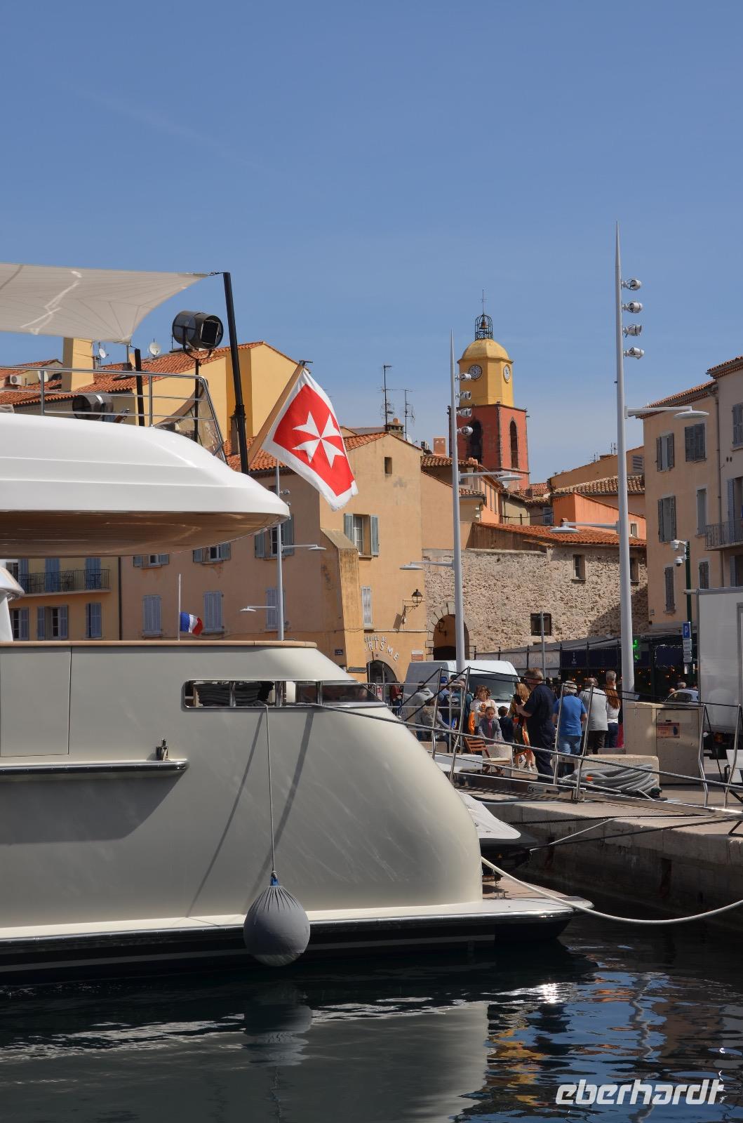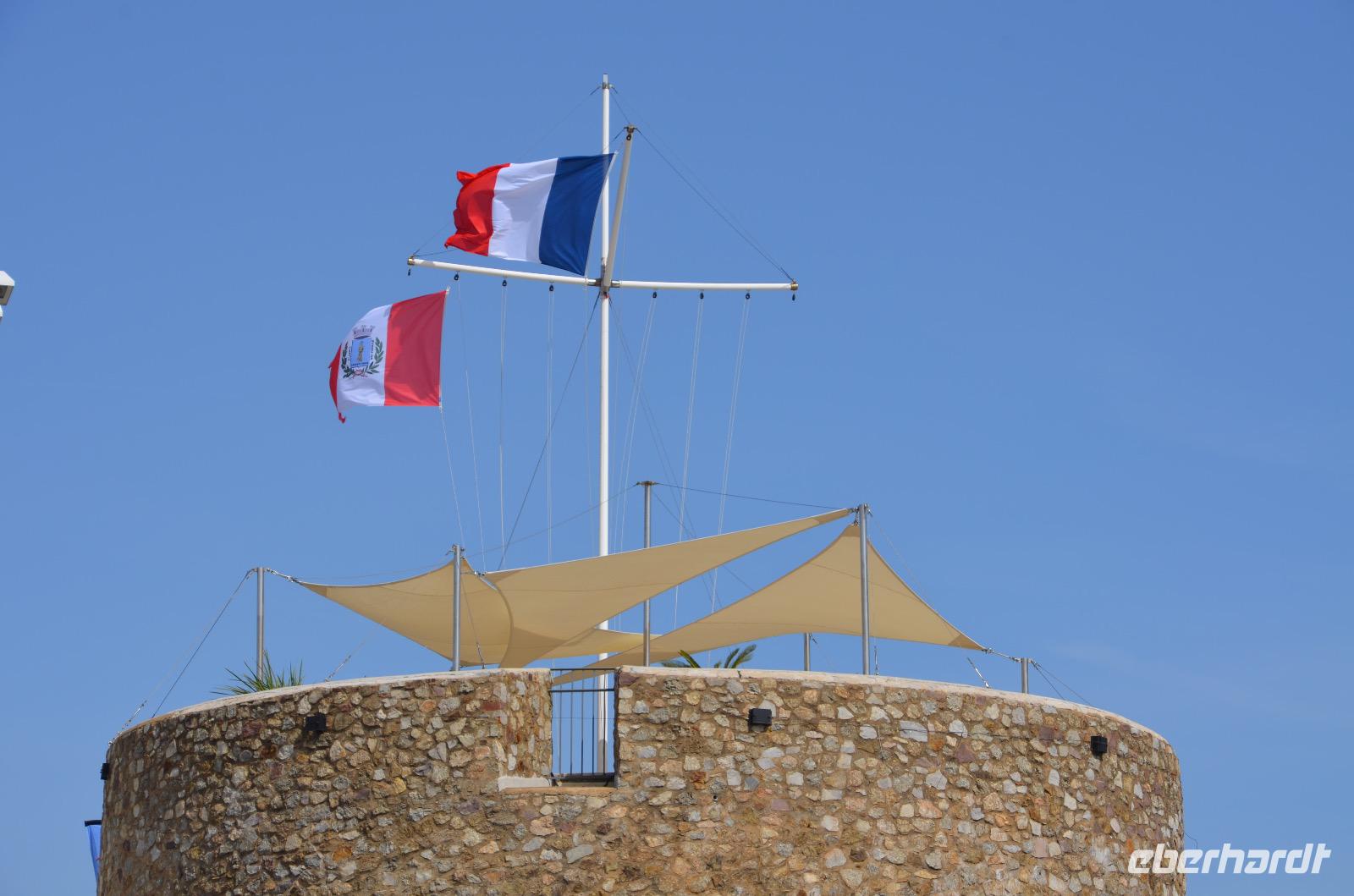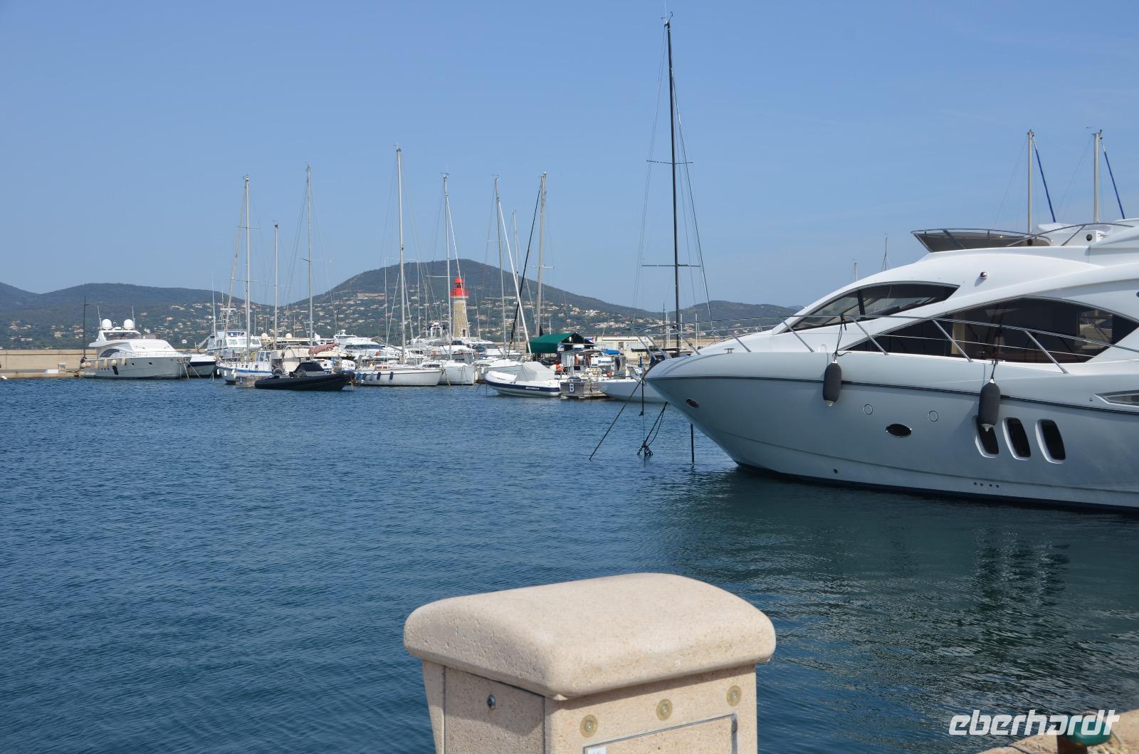 Als wir den Badeort Ste-Maxime erreichten, konnten wir bereits die ersten Blicke auf die Halbinsel von St-Tropez erhaschen. Ursprünglich war der Ort der Reichen und Schönen nur ein kleines Fischerdorf. Mittlerweile gehört die Stadt zu einem der beliebtesten Urlaubsort an der Côte d'Azur. Nur 5.000 Einwohner leben hier, doch es kommen jährlich 100.000 Besucher. Fast 50% der Häuser hier sind Zweitwohnungen. Wir spazierten durch die Stadt, deren Gebäude meist nach dem 2. Weltkrieg errichtet wurden. Vorbei an der berühmten Gendarmerie, ging es für uns Richtung Hafen wo eine Yacht neben der anderen liegt. Nur daran erkennt man, welches Publikum hier in St-Tropez die meiste Zeit verkehrt. Die kleine Ortschaft ist hübsch, aber versprüht nichts von Reichtum und High-Society. Während unseres Rundgangs erfuhren wir von Richard, woher die Stadt ihren Namen hat. Im Jahr 68 n. Chr. wurde der heilige Tropez für seinen Christenglauben geköpft. Man legte den leblosen Körper in ein Boot, welches im heutigen St-Tropez strandete.