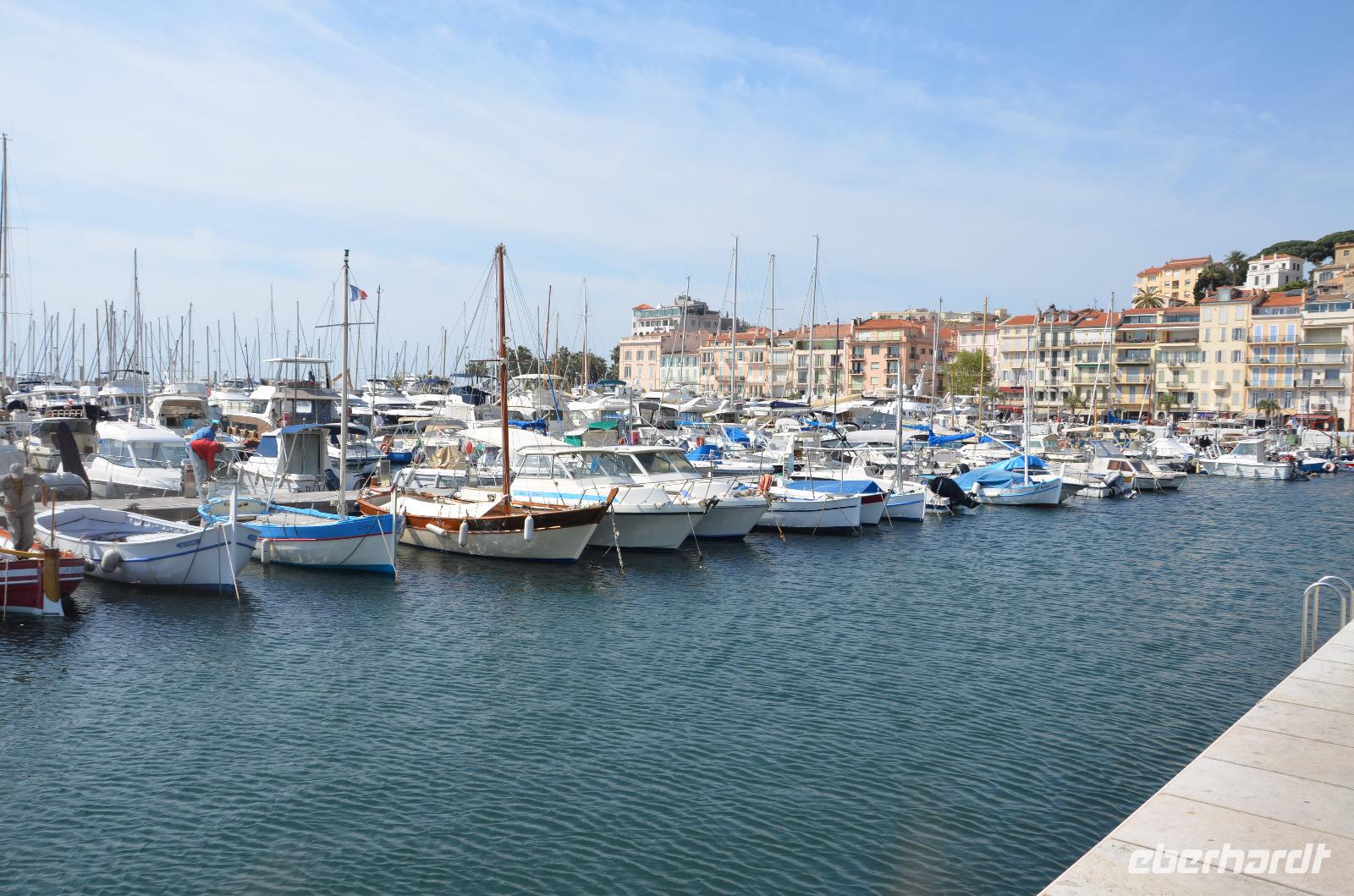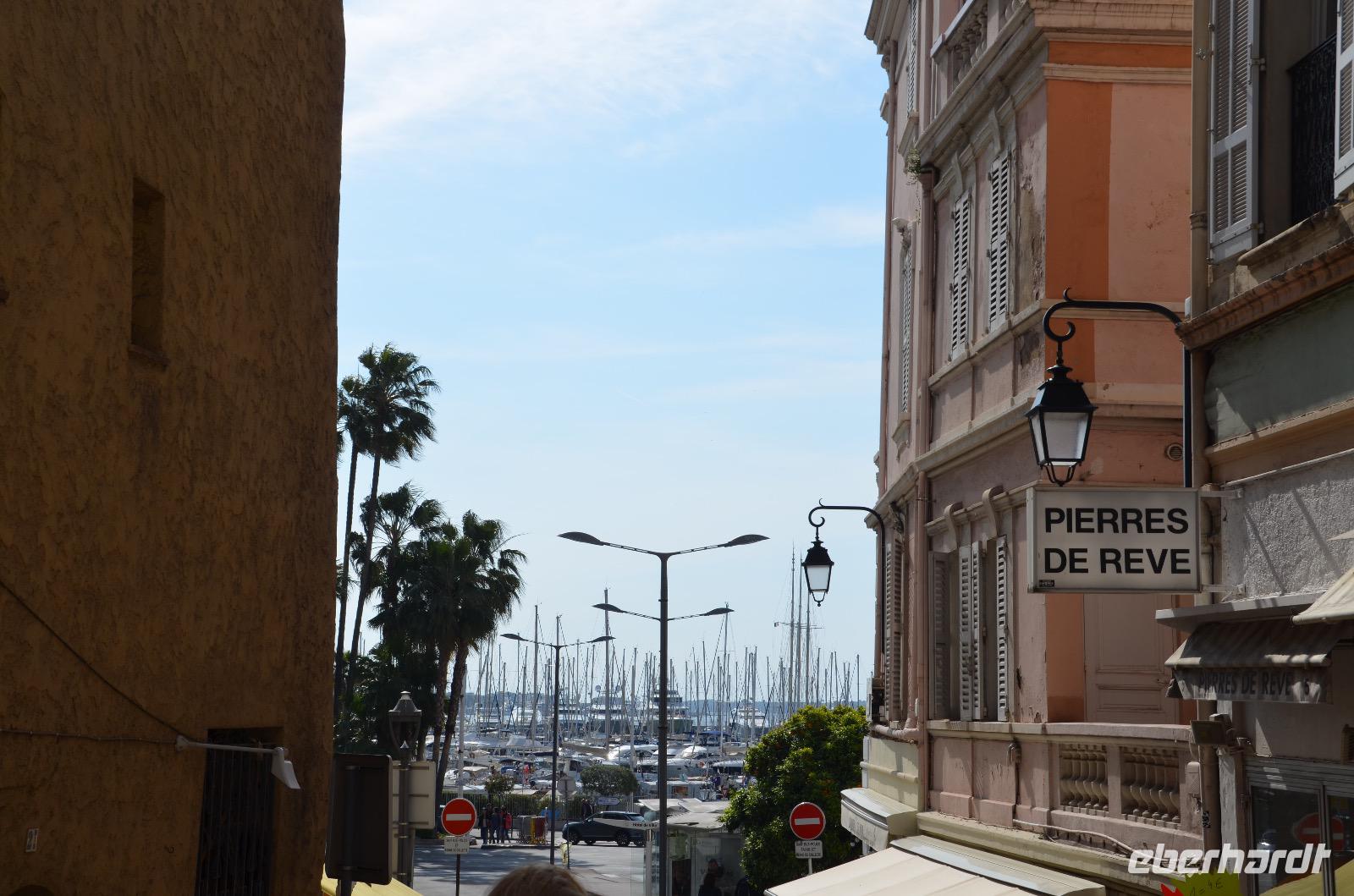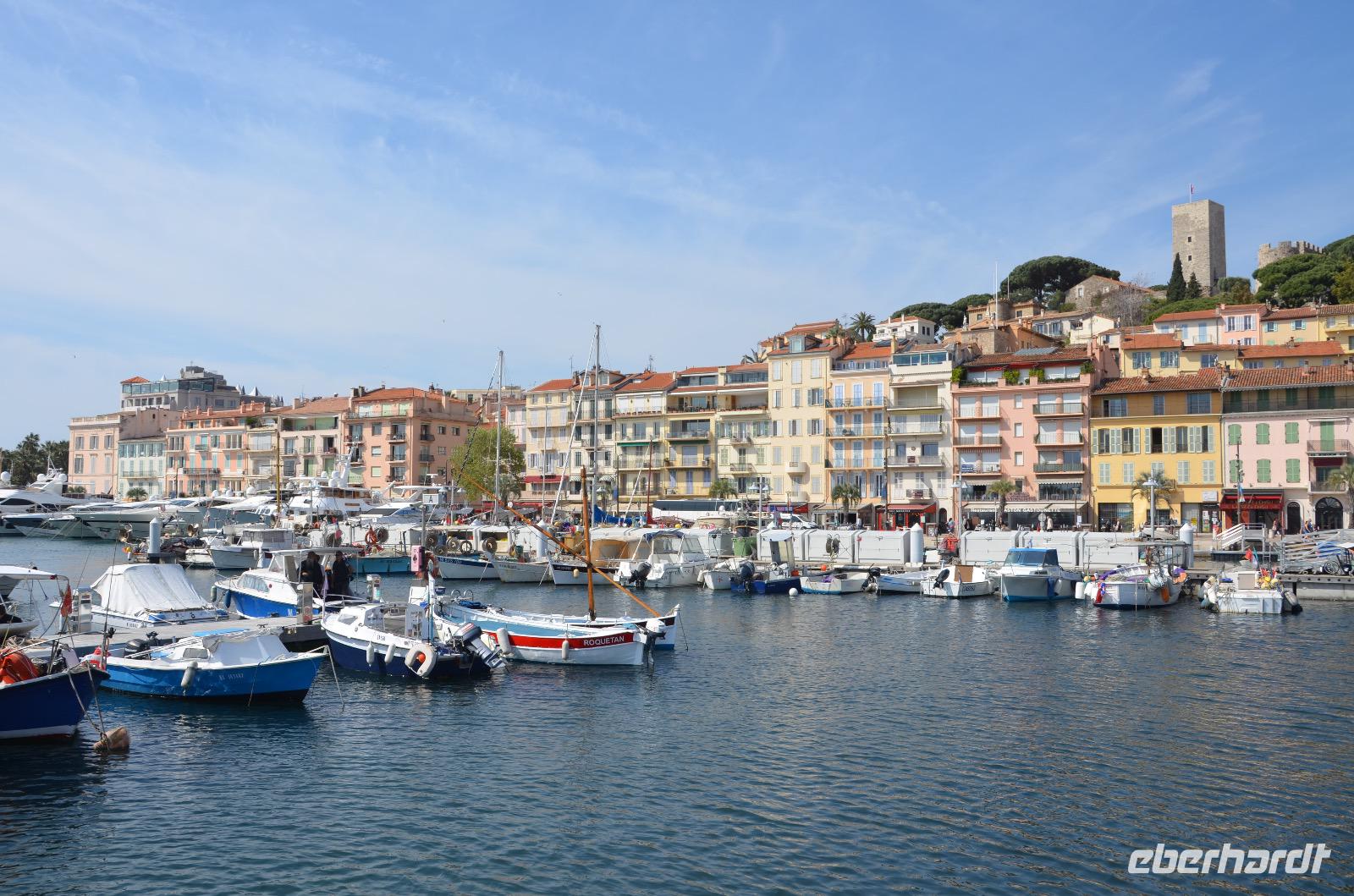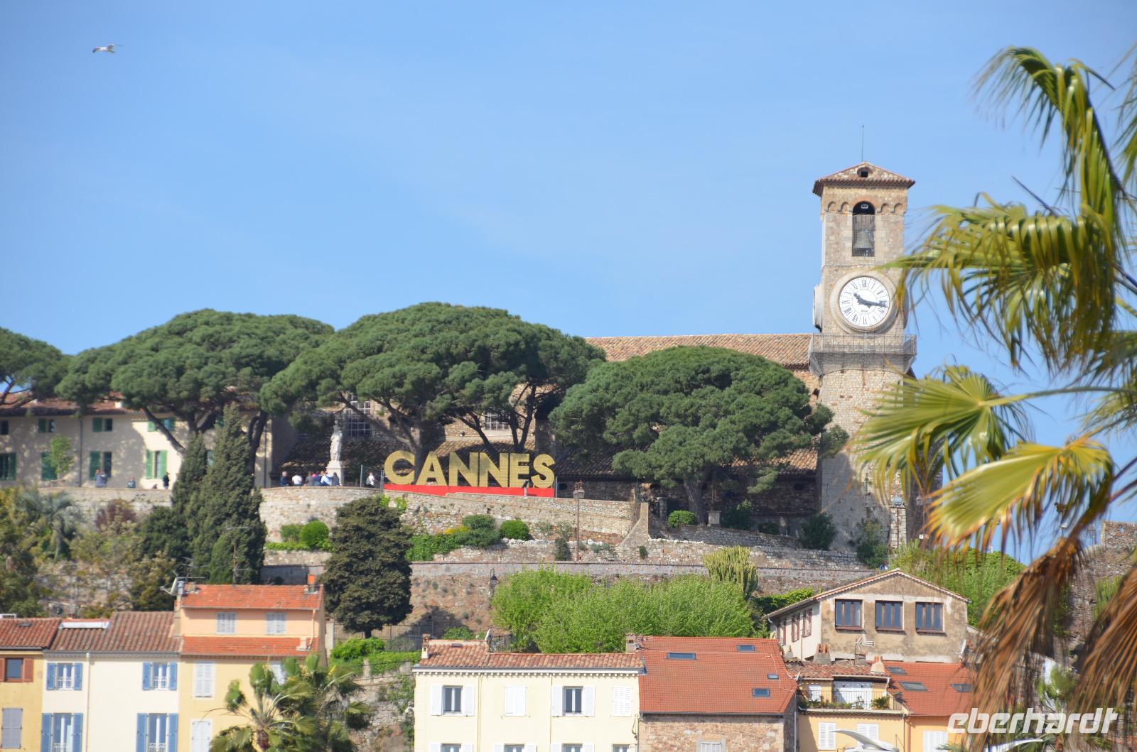 Hier angekommen, stiegen wir am alten Hafen aus dem Bus. Auch hier lag wieder eine Yacht, nach der anderen. Als erstes Fotomotiv bot sich uns der Gare Routière, dessen Fassade mit vielen Berühmtheiten der Filmgeschichte bemalt ist. Wir stiegen hinauf in die Altstadt Le Suquet. Oben auf dem Berg befindet sich unter anderem ein Wachturm aus dem 11. Jahrhundert, mit dem Schloss und seiner Kapelle. Man hat aber außerdem eine unglaubliche Sicht auf die zu Füßen liegende Stadt mit Hafen und Filmpalast. Zurück durch die schmalen Gassen mit den bepflanzten, schmiedeeisernen Balkonen, ging es Richtung Hafen. Bei der anschließenden Freizeit, nutzten viele von uns die Gelegenheit ein Bild auf dem roten Teppich zu ergattern, der auf der Treppe des Filmpalasts liegt. Um das Casino und den Saal herum befindet sich außerdem der Boulevard der Stars mit den Handabdrücken und Unterschriften vieler Filmstars.