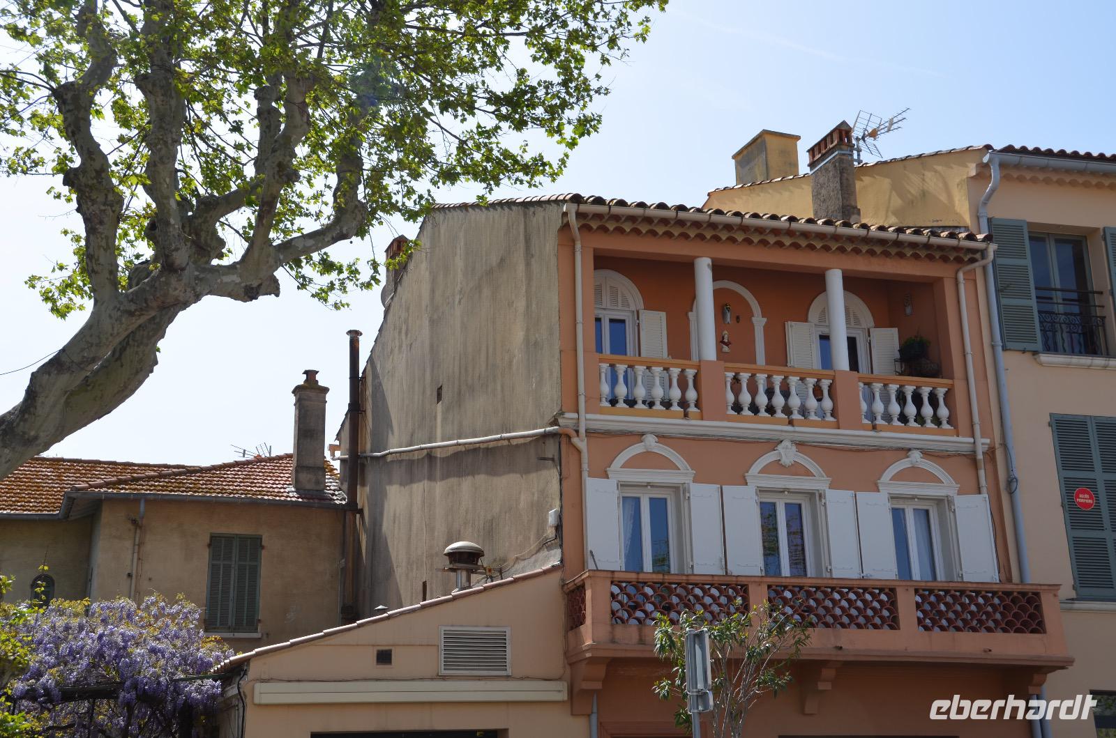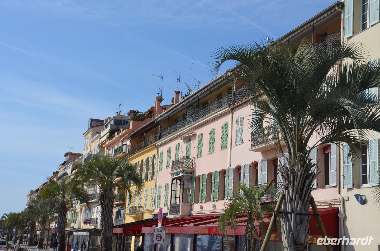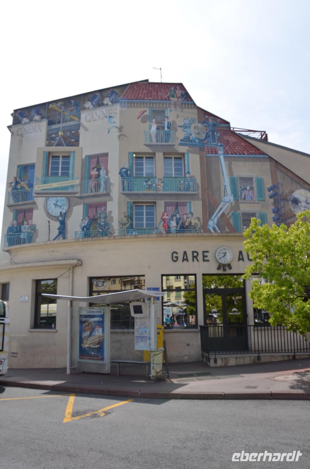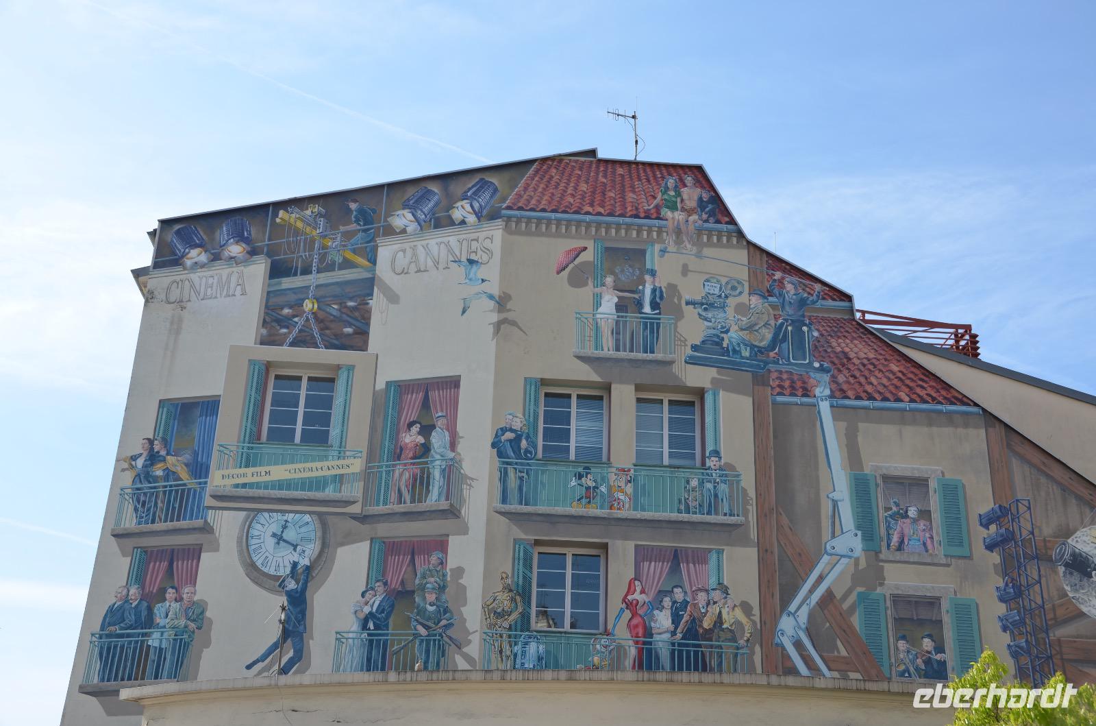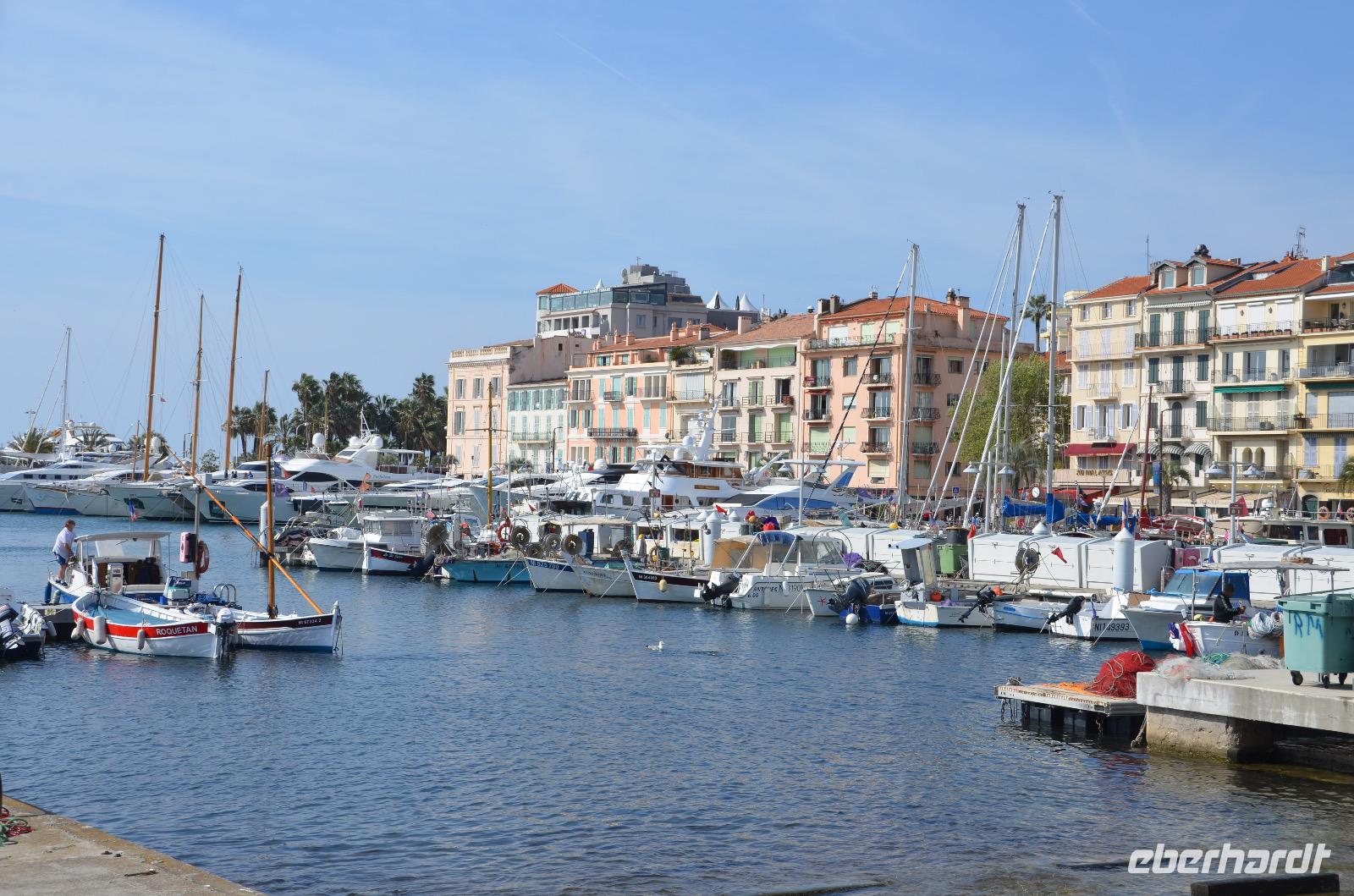 Hier angekommen, stiegen wir am alten Hafen aus dem Bus. Auch hier lag wieder eine Yacht, nach der anderen. Als erstes Fotomotiv bot sich uns der Gare Routière, dessen Fassade mit vielen Berühmtheiten der Filmgeschichte bemalt ist. Wir stiegen hinauf in die Altstadt Le Suquet. Oben auf dem Berg befindet sich unter anderem ein Wachturm aus dem 11. Jahrhundert, mit dem Schloss und seiner Kapelle. Man hat aber außerdem eine unglaubliche Sicht auf die zu Füßen liegende Stadt mit Hafen und Filmpalast. Zurück durch die schmalen Gassen mit den bepflanzten, schmiedeeisernen Balkonen, ging es Richtung Hafen. Bei der anschließenden Freizeit, nutzten viele von uns die Gelegenheit ein Bild auf dem roten Teppich zu ergattern, der auf der Treppe des Filmpalasts liegt. Um das Casino und den Saal herum befindet sich außerdem der Boulevard der Stars mit den Handabdrücken und Unterschriften vieler Filmstars.