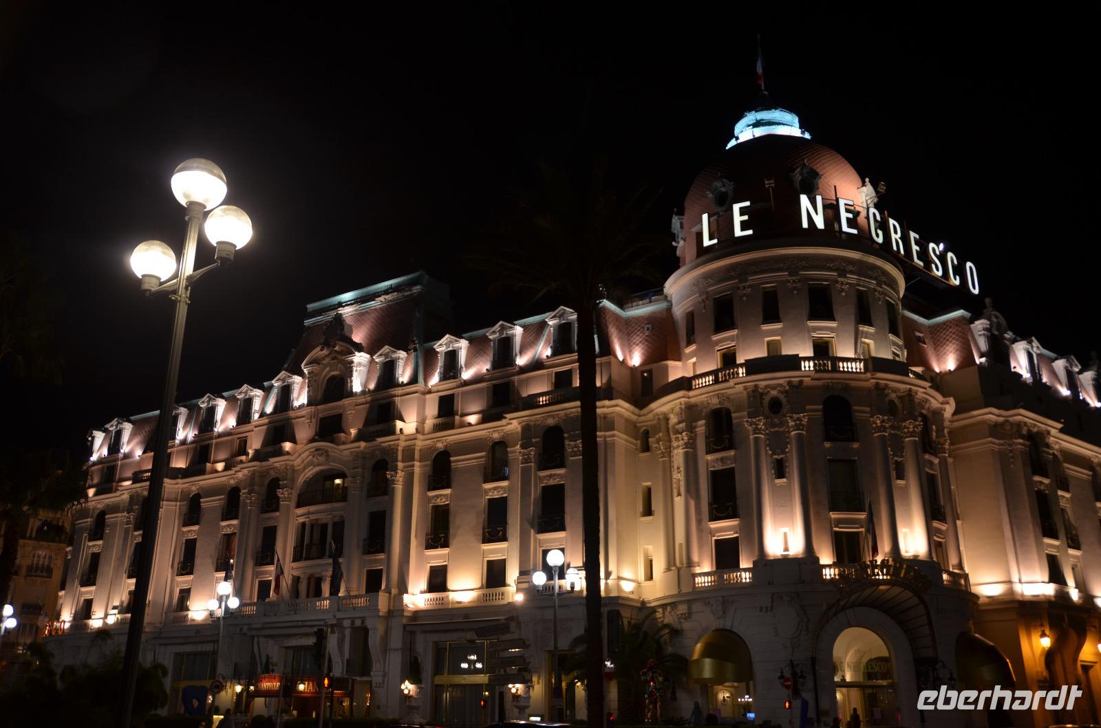 Am Nachmittag führte uns unsere Reise gen Westen, in das Künstlerdorf Saint-Paul-de-Vence. Wir fuhren zunächst die 7 km lange Promenade des Anglais entlang. Sie erhielt ihren Namen aufgrund der ersten englischen Touristen in Nizza, im 18. Jahrhundert. Das wohl bekannteste Bauwerk hier ist das Hotel Negresco aus der Belle Epoche. Es wurde im Jahr 1912 eingeweiht und erinnert durch seine Farben und Verzierungen an süße Bonbons. Wir kamen auch am Flughafen vorbei, welcher in den 70er-Jahren so erweitert wurde, dass man neues Land geschaffen hat.