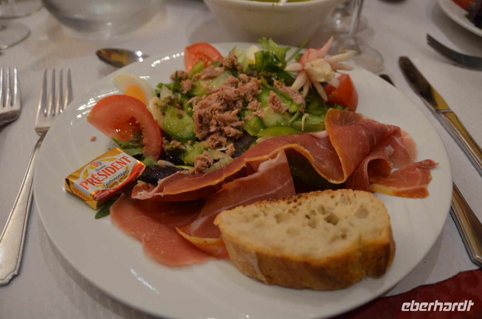 Wir hatten Glück und unser Zug kam direkt, sodass wir nach einer Dreiviertelstunde Fahrt zurück in Nizza waren. An diesem Abend ging es für uns in ein typisch nizzaisches Restaurant. Wir probierten den Salade Nicoise, die Daube Nicoise (eine Art Gulasch) mit Kichererbsenfladen und den bekannten Mangoldkuchen.