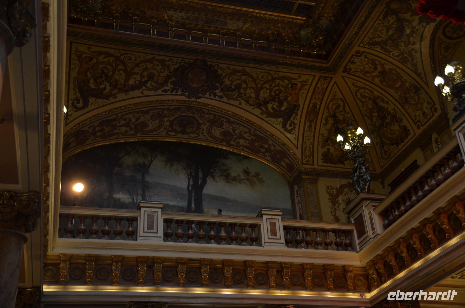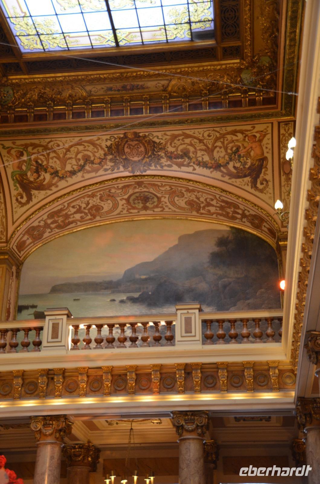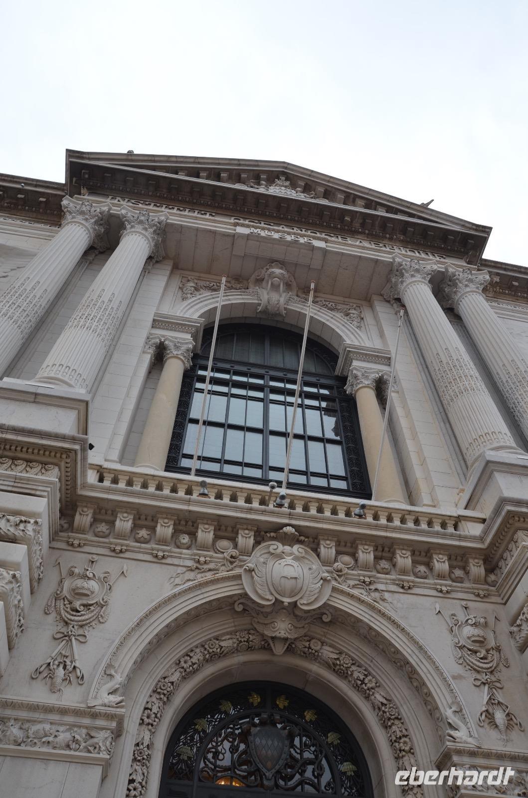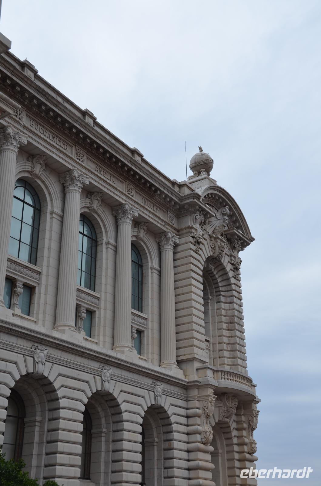 Über einen Kreisverkehr gelangten wir in das 2 Hektar kleine Land. Hier gibt es mehr Arbeiter, als Einwohner. Von den 40.000 Einwohnern, sind nur 9.000 Personen wirkliche Monegassen. Als erstes fuhren wir ein Stück auf der weltbekannten Formel-1-Rennstrecke, bevor es zu Fuß zum Casino ging. Es ist ein beeindruckendes Gebäude von 1858, welches durch seine vielen Salons erst nach 50 Jahren fertiggestellt werden konnte. Die Oper von Montecarlo, eines der 7 Stadtviertel von Monaco, in welchem wir uns gerade befanden, ist ebenfalls im Gebäude des Casinos. Es wurde vom gleichen Architekten, wie die Oper in Paris entworfen, Charles Garnier. Wir hatten ein bisschen Zeit, um die beeindruckenden Gebäude zu bestaunen und in das Casino hineinzugehen. Das Innere steht der Außenansicht in keinster Weise nach. Auf dem Place du Casino befindet sich außerdem das Hôtel de Paris mit dem gegenüberliegenden Café de Paris. Schon hier merkten wir, dass wir wohl heute nicht die einzige Touristengruppe in Monaco sind. Wir konnten einen Blick auf die teuerste Wohnung erhaschen. Für 450 Mio. Euro wurde ein Penthouse auf drei Etagen verkauft.