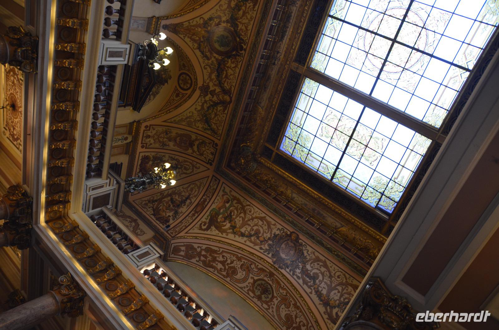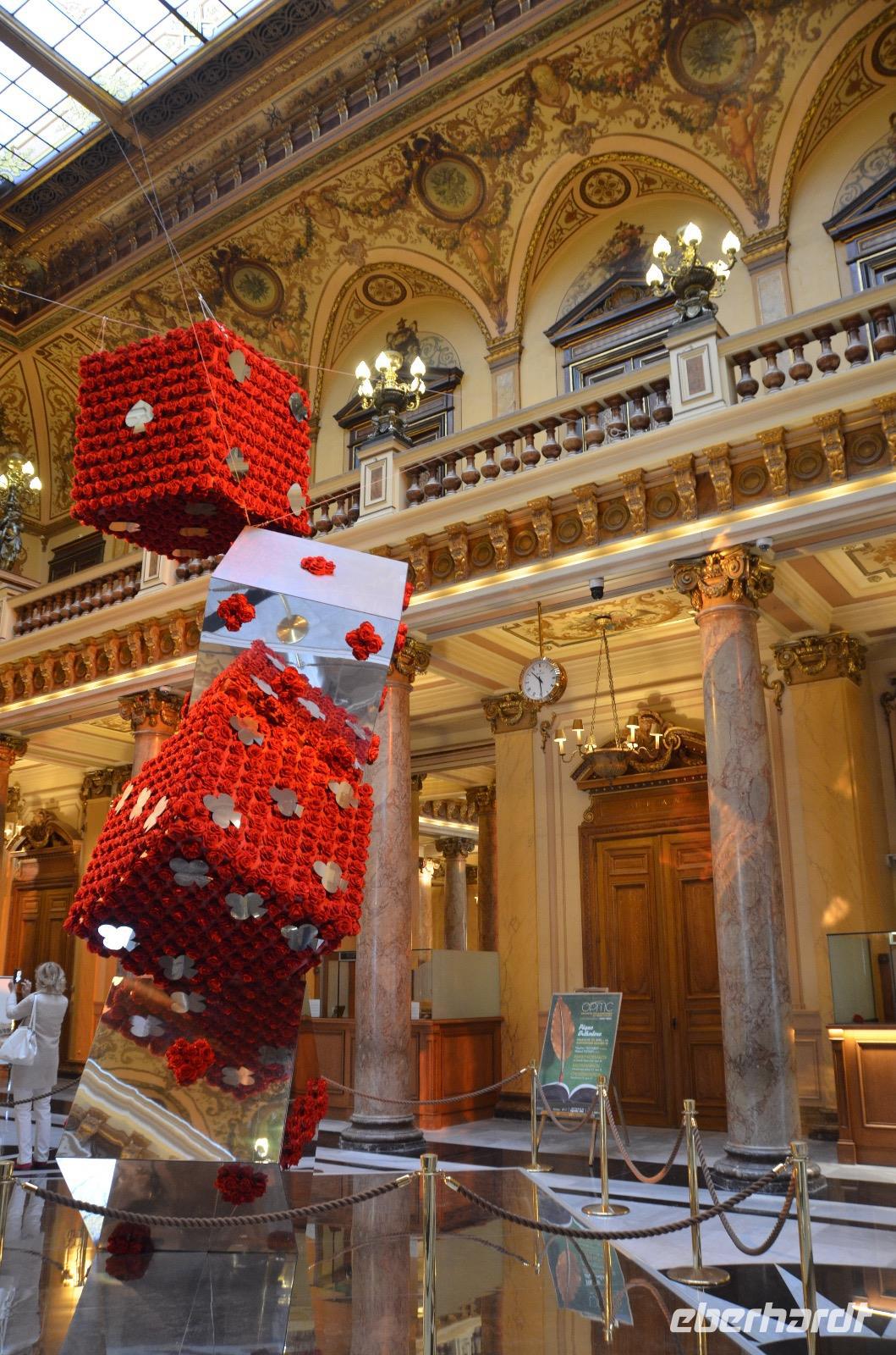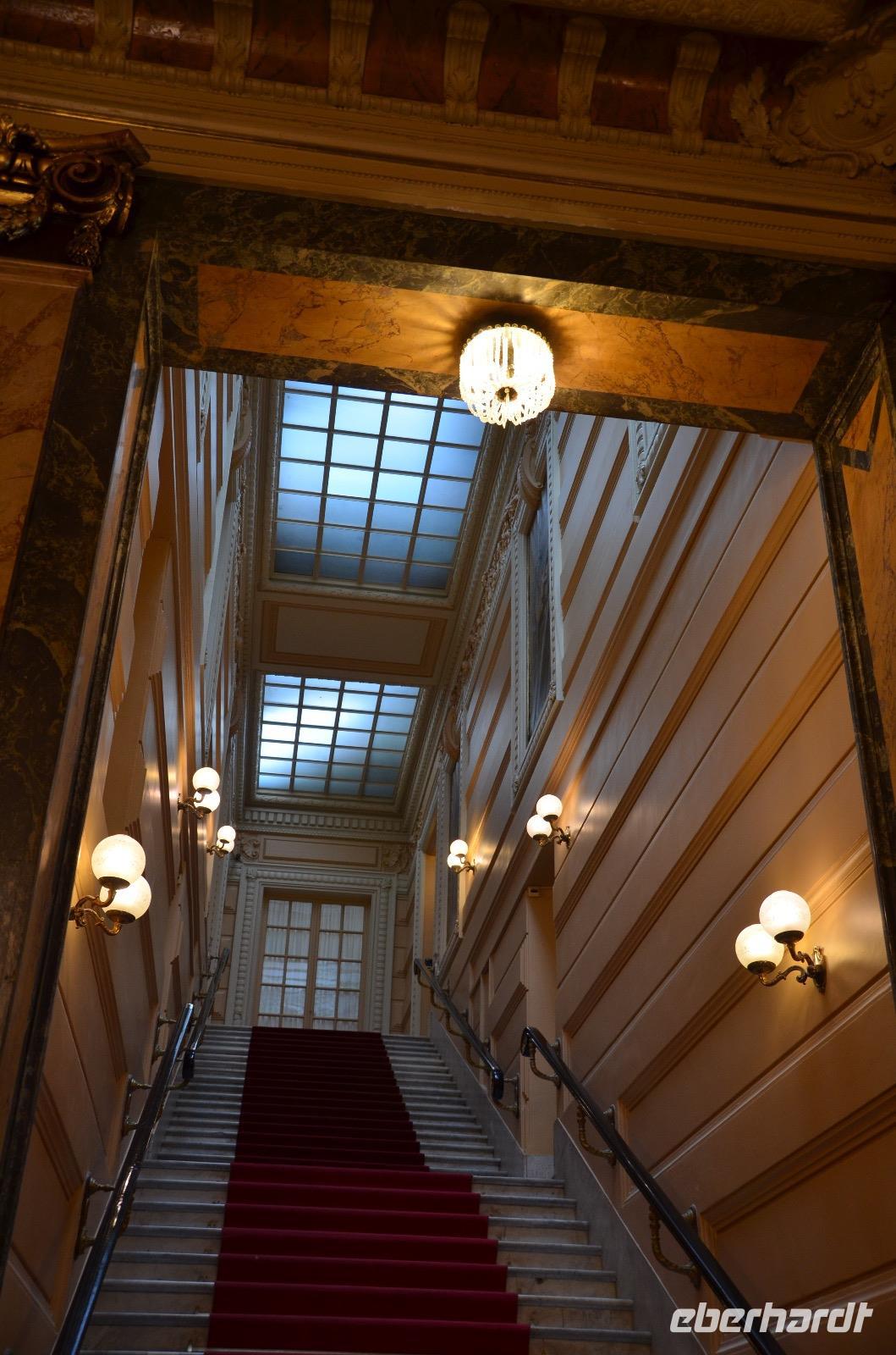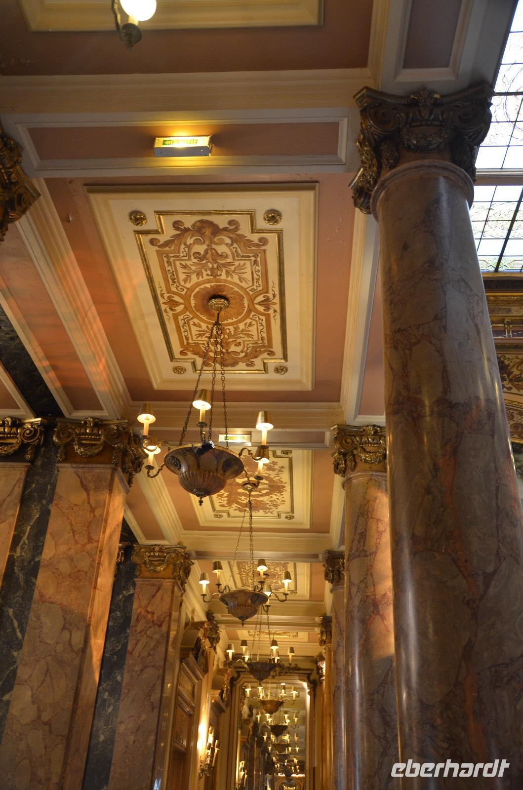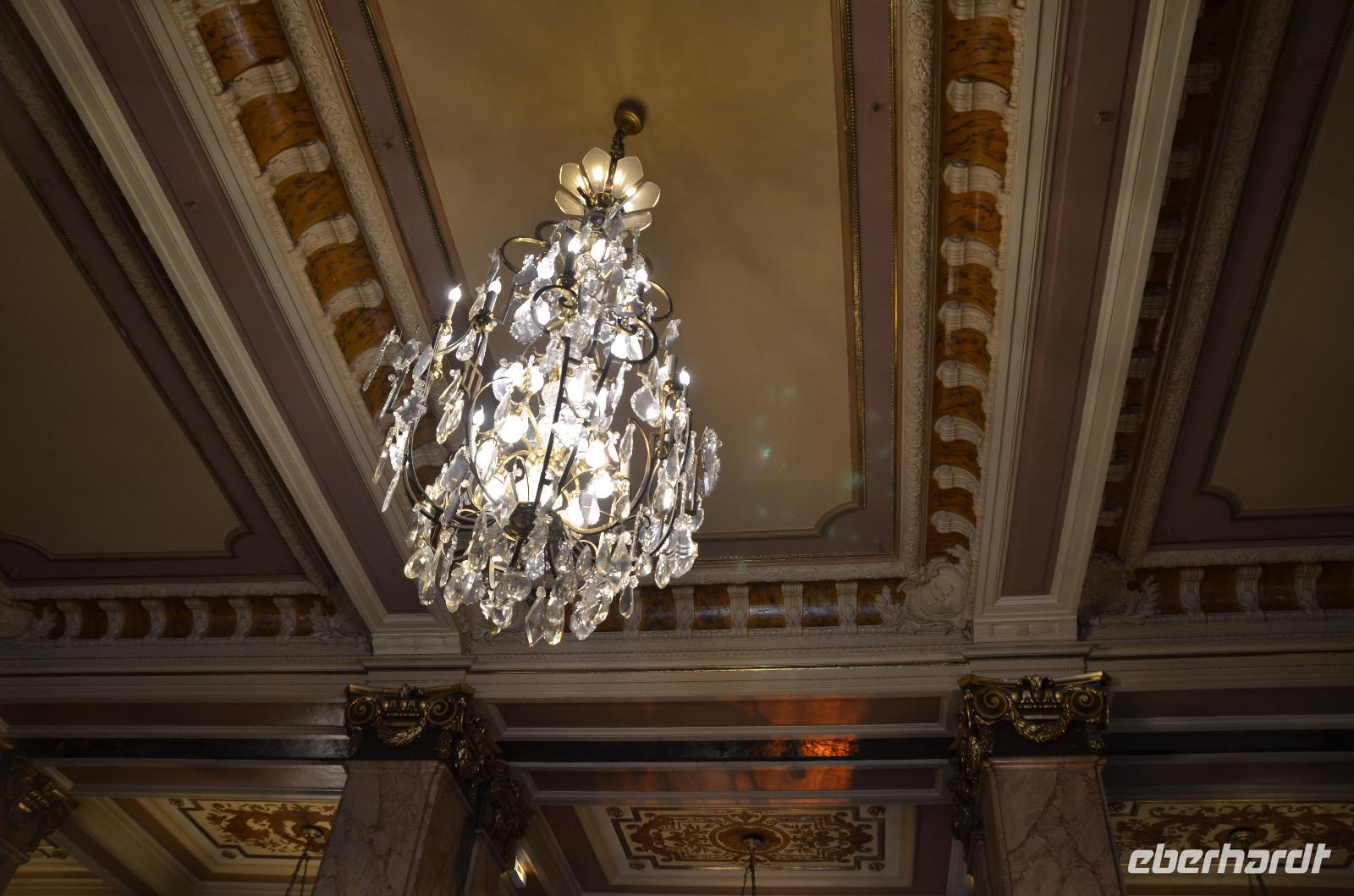 Über einen Kreisverkehr gelangten wir in das 2 Hektar kleine Land. Hier gibt es mehr Arbeiter, als Einwohner. Von den 40.000 Einwohnern, sind nur 9.000 Personen wirkliche Monegassen. Als erstes fuhren wir ein Stück auf der weltbekannten Formel-1-Rennstrecke, bevor es zu Fuß zum Casino ging. Es ist ein beeindruckendes Gebäude von 1858, welches durch seine vielen Salons erst nach 50 Jahren fertiggestellt werden konnte. Die Oper von Montecarlo, eines der 7 Stadtviertel von Monaco, in welchem wir uns gerade befanden, ist ebenfalls im Gebäude des Casinos. Es wurde vom gleichen Architekten, wie die Oper in Paris entworfen, Charles Garnier. Wir hatten ein bisschen Zeit, um die beeindruckenden Gebäude zu bestaunen und in das Casino hineinzugehen. Das Innere steht der Außenansicht in keinster Weise nach. Auf dem Place du Casino befindet sich außerdem das Hôtel de Paris mit dem gegenüberliegenden Café de Paris. Schon hier merkten wir, dass wir wohl heute nicht die einzige Touristengruppe in Monaco sind. Wir konnten einen Blick auf die teuerste Wohnung erhaschen. Für 450 Mio. Euro wurde ein Penthouse auf drei Etagen verkauft.