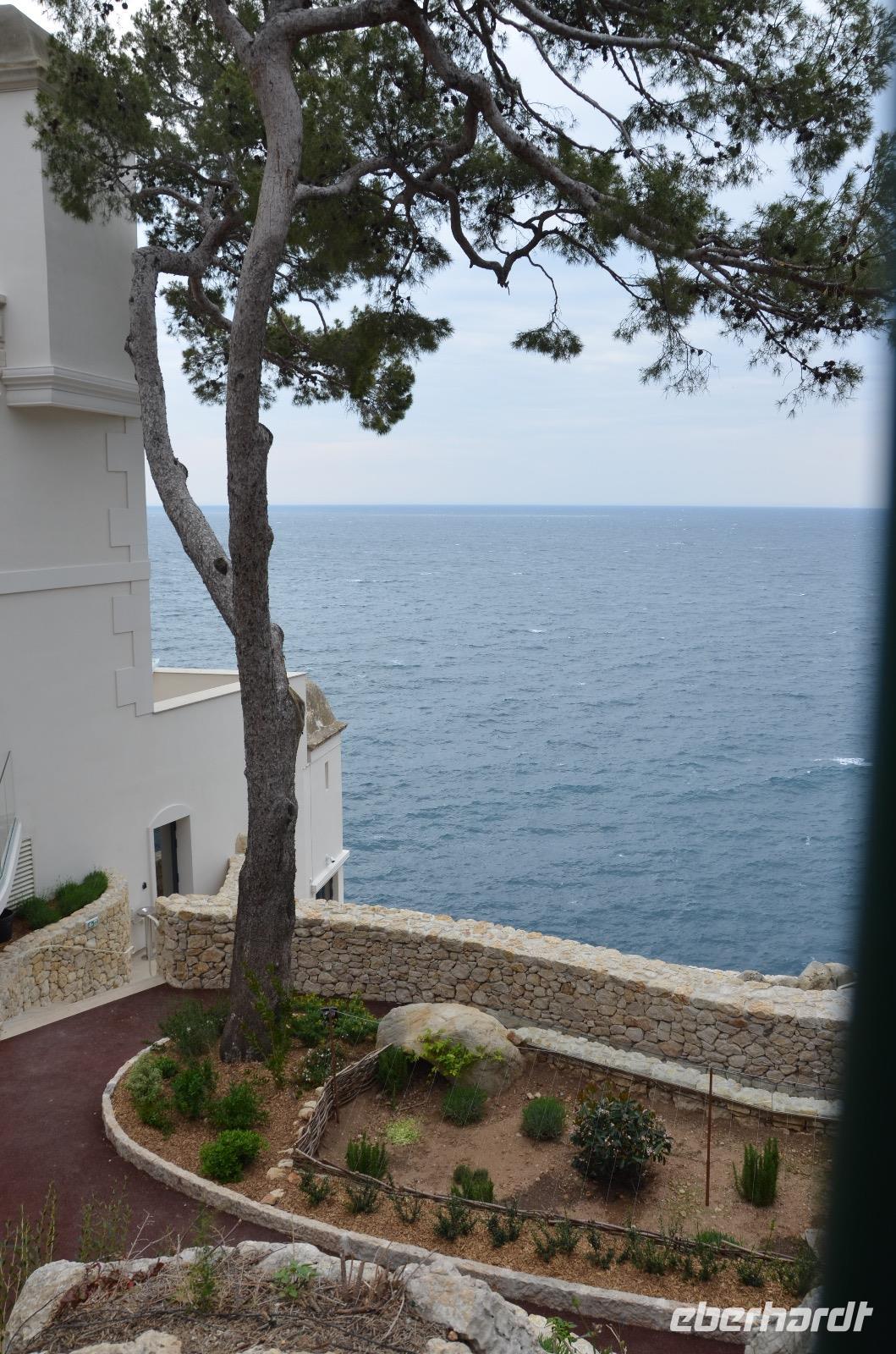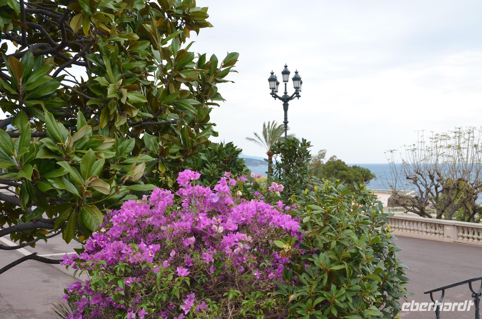 Für uns ging es als erstes zu der Kathedrale, in der Grace Kelly begraben liegt. Sie starb nach einem tragischen Autounfalll im September 1982. Das Gotteshaus stammt aus dem späten 19. Jahrhundert und befindet sich gegenüber des Gerichtspalastes. Nach einem kurzen Gang durch die Kathedrale, liefen wir zurück zum Palast der Grimaldis. Zur vollen Stunde erwartete uns hier eine kleine Wachablösung. Es ist wirklich beeindruckend mit welcher Disziplin die Wächter vor dem Palast ausharren. Ungefähr 100 Männer zählt die Wache der Grimaldis, alles Franzosen aus der Armee. Sie wohnen direkt gegenüber des Palasts. So langsam kam das Hungergefühl und wir entschieden uns für einen Snack in der Gassen der Altstadt. Diesen genossen wir mit Blick auf das Meer. Nach dieser kleinen Mittagspause entschieden wir uns für einen ausgiebigen Spaziergang durch den exotischen Garten von Monaco. Wir bestaunten die Blüten- und Pflanzenpracht und hatten an den Aussichtspunkten tolle Möglichkeiten für einmalige Fotos.