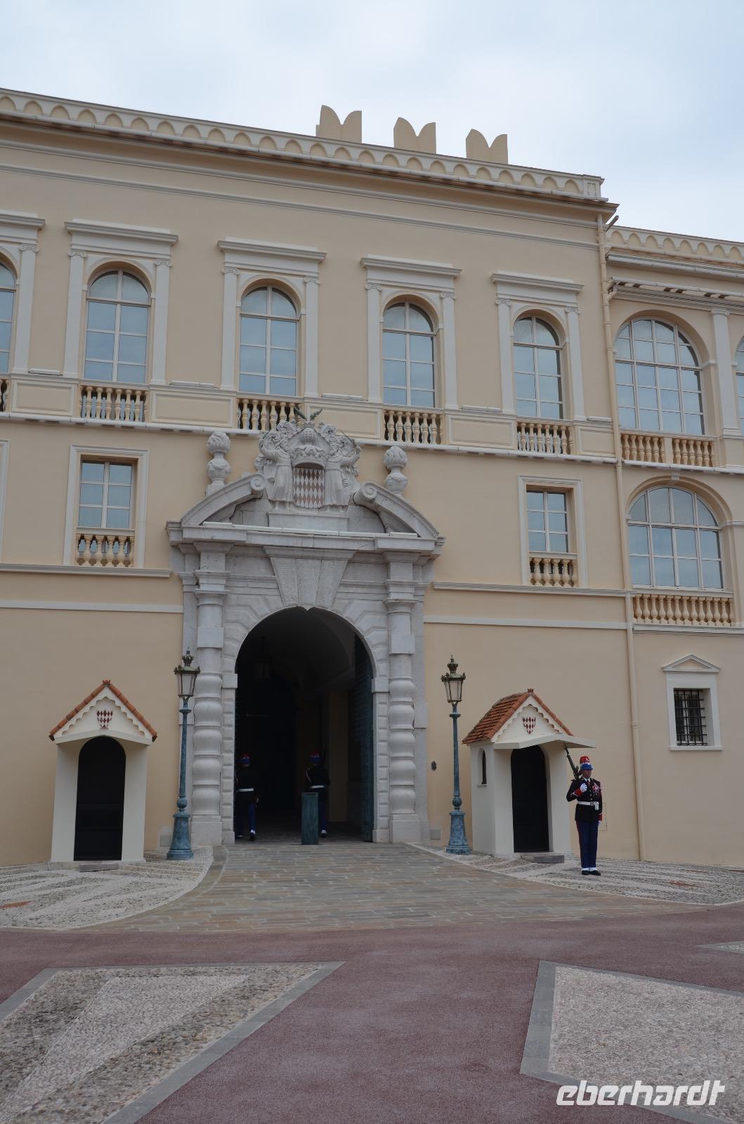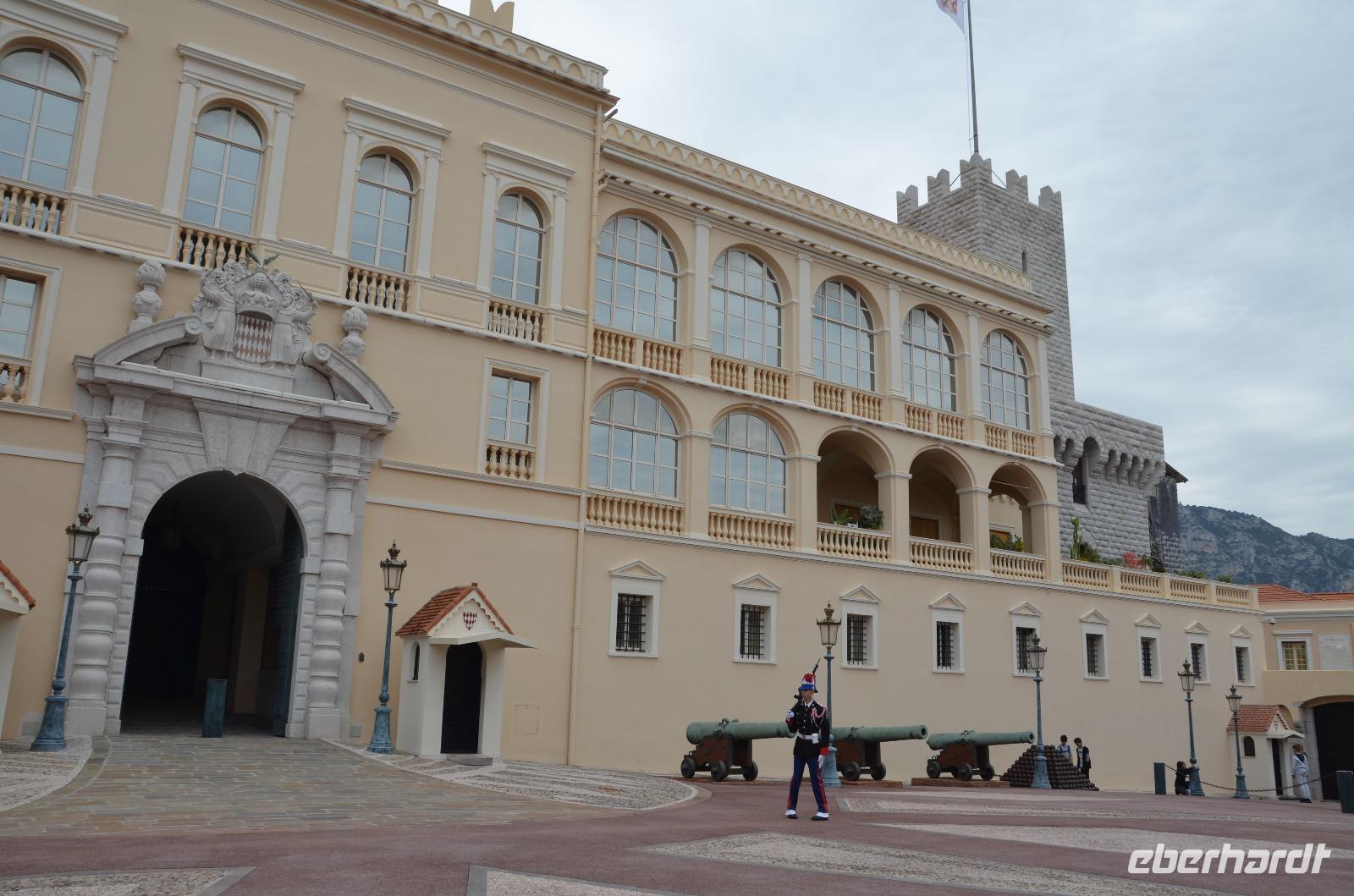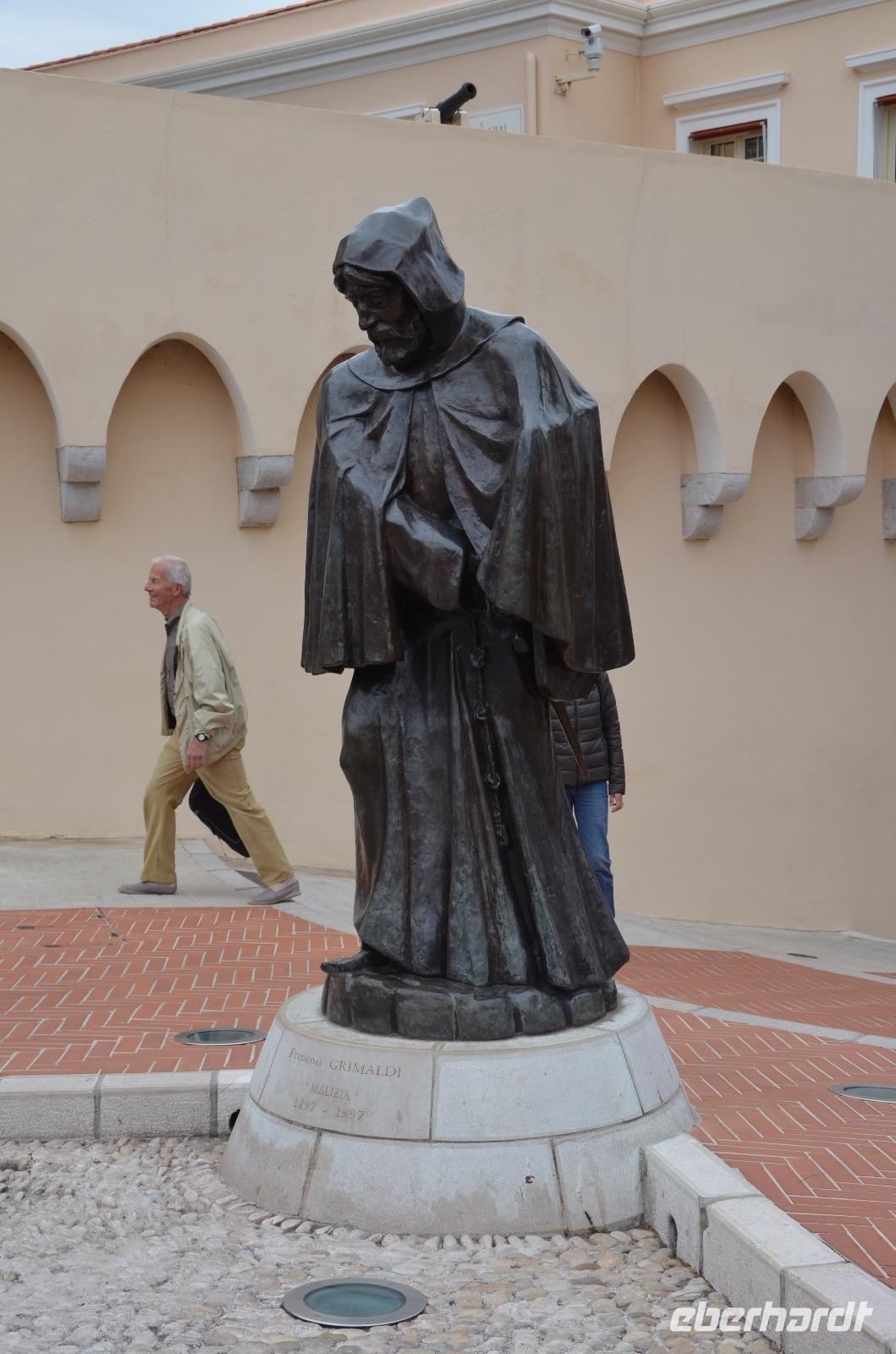 Für uns ging es weiter in die Altstadt aus dem 19. Jahrhundert. Monaco versprühte sofort einen multikulturellen und lebendigen Charme, was bei 150 verschiedenen Staatsangehörigkeiten, die hier leben, kein Wunder ist. Unser Bus ließ uns in der Nähe des ozeanographischen Museums raus. Wir waren mächtig beeindruckt von dem prächtigen Bau. Gegenüber steht die erste öffentliche Schule Monacos. Wir liefen durch den exotischen Garten des Fürstentums zu einem Aussichtspunkt. Hier konnte man gut sehen, wie durch Aufschüttung Land für das neue Viertel gewonnen wurde. Das hat ungefähr 7-8 Jahre lang gedauert. Man konnte auch das Fußballstadion entdecken, indem bis zu 20.000 Zuschauer Platz haben. Vorbei an der Kathedrale und dem Gerichtspalast aus den 30er-Jahren, liefen wir Richtung Grimaldipalast. Uns fiel auf, dass die Straßenschilder alle zweisprachig beschriftet waren. Oberhalb Französisch und unterhalb Monegassisch. Zwischen den Straßen, wo sich die Touristen drängten, konnte man auch immer wieder überdachte Gassen finden. Diese dienten früher dem Zusammentreffen der Leute. Hier waren Sie vor Wind und Wetter geschützt und konnten sich trotzdem über die aktuellen Neuigkeiten austauschen. Auf dem Place du Palais steht eine Statue von Francois Grimaldi. Er schlich sich als Mönch verkleidet im Jahr 1297 in die Festung und besetzte sie mit Soldaten.