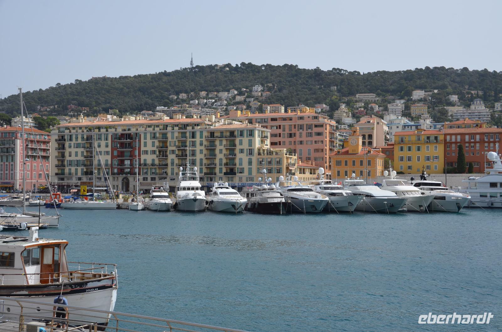 Also entschieden wir uns für einen Bummel weiter entlang der Küste bis zum Hafen von Nizza. Noch einmal bestaunten wir die riesigen Yachten. Heute war wohl der heißeste Tag unserer Reise, sodass wir einen Stopp am Supermarkt machten, um uns ein paar Getränke zu holen. Durch die Straßen, Gassen und über größere Platze liefen wir wieder Richtung Altstadt. Hier suchten wir uns ein nettes Restaurant, wo wir auf einem Freisitz Platz fanden. Langsam begann es stärker zu stürmen und wir konnten nun verstehen, weshalb die Parks geschlossen wurden. Trotzdem nutzen wir den Tag in Nizza in vollen Zügen. Die Gruppe kannte sich mittlerweile sehr gut und wir hatten viel Spaß miteinander und einiges zu lachen. Wir genossen die Wege durch die kleinen Gassen und endeten in einem Café mit Blick auf das azurblaue Meer. Wir nahmen Abschied von der Côte d'Azur und unserer gemeinsamen Reise. Gemeinsam traten wir die Heimreise an, mit vielen neuen, unvergesslichen Eindrücken im Gepäck.