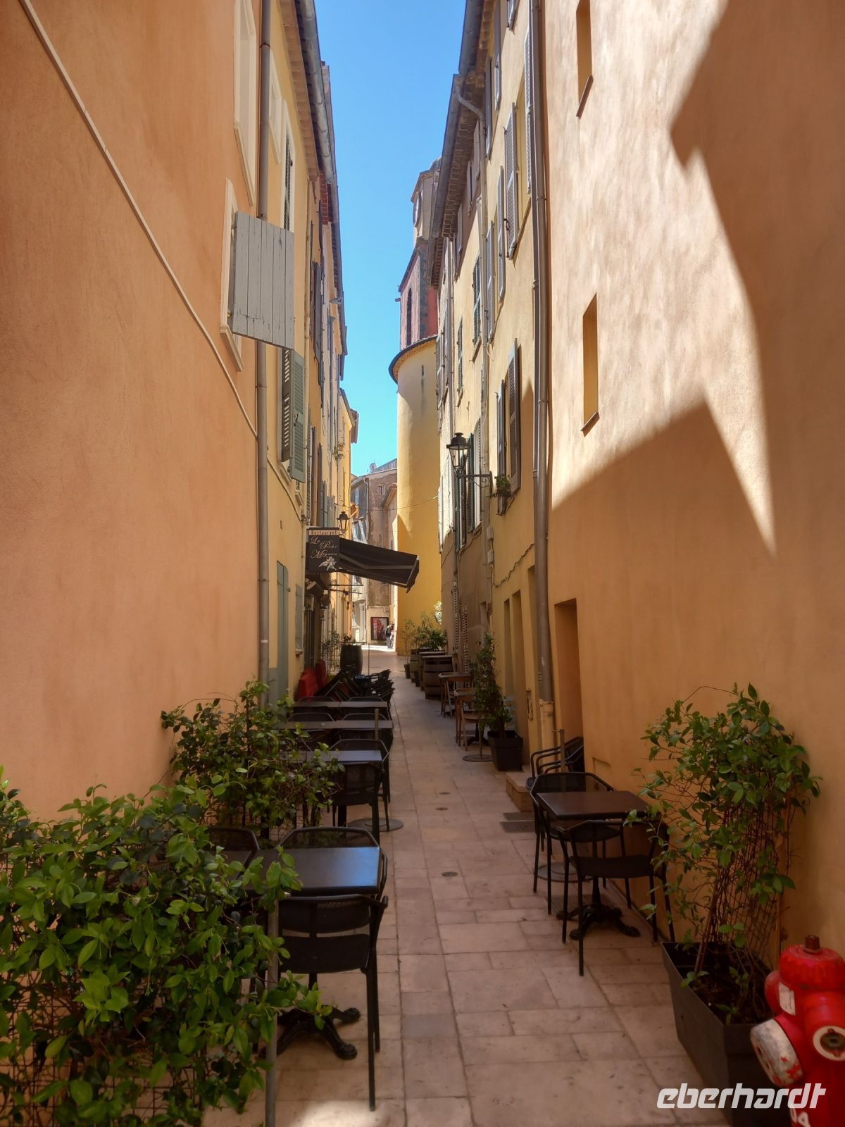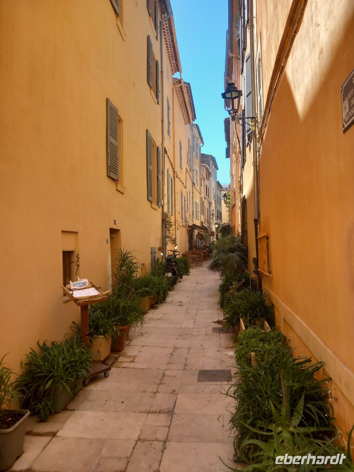 Am Beginn des ersten vollen Tages im Frankreich stand ein Ausflug nach Saint-Tropez an. Wohl wenige Orte stehen so für das, was man mondänes Leben nennt. Vorbei an Louis-de-Funes Gendarmerie und der goldenen Flamme, die Brigitte Bardot gewidmet ist, ging es hinein in die Stadt mit dem malerischen Hafen. Natürlich muss man hier nicht nur sehen. Viel wichtiger, man muss gesehen werden. Die zahlreichen Restaurant und Bistrots laden ausgiebig dazu ein. Über den Fischmarkt, durch die engen Gassen wagten sich einige Gäste auf den höchsten Punkt im Zentrum, unbedingt sehenswert, für andere war die Gasse wichtiger, wo es die Tarte Tropezienne gab und natürlich die berühmten handgefertigten Sandalen der Stadt.
