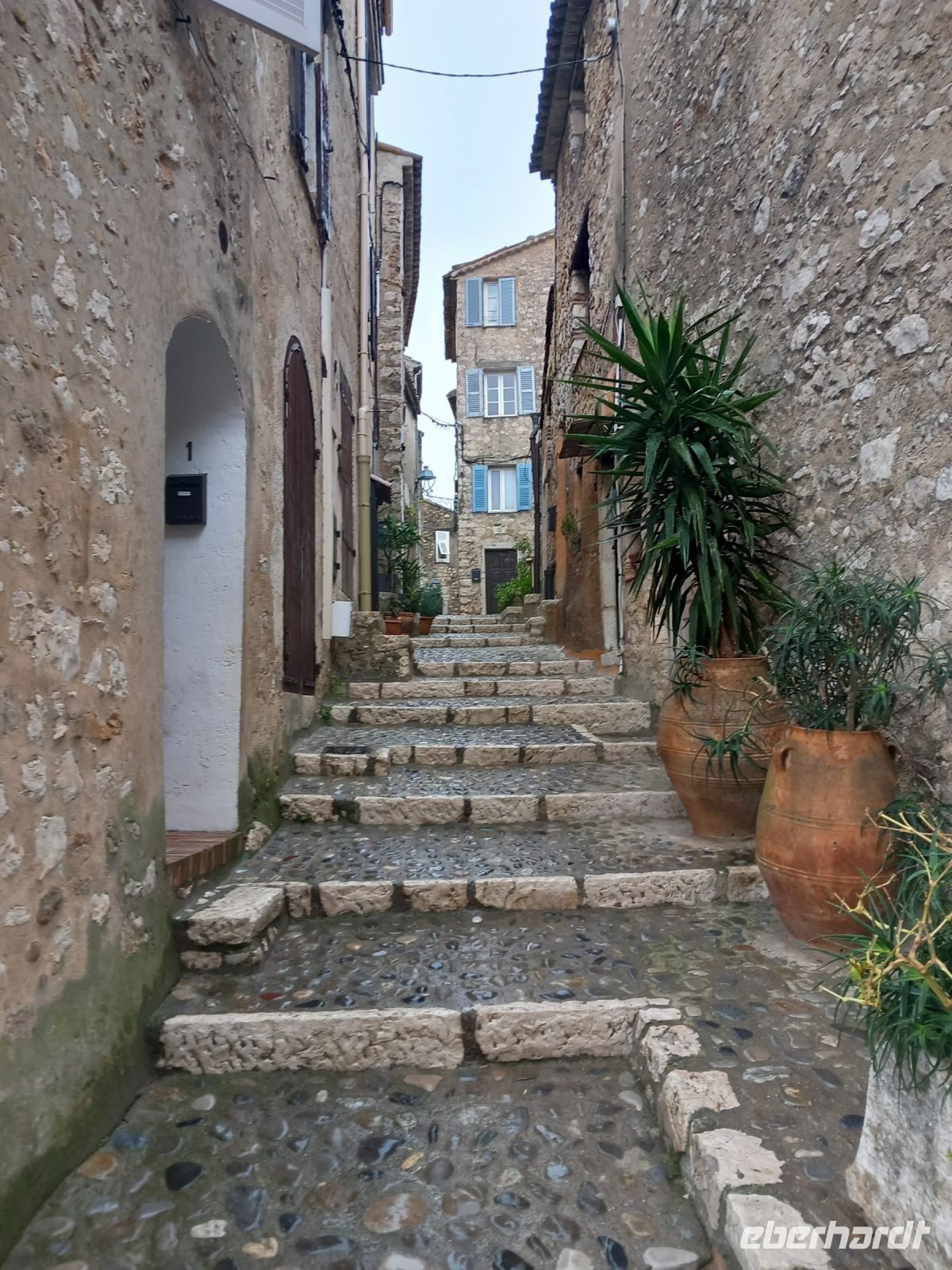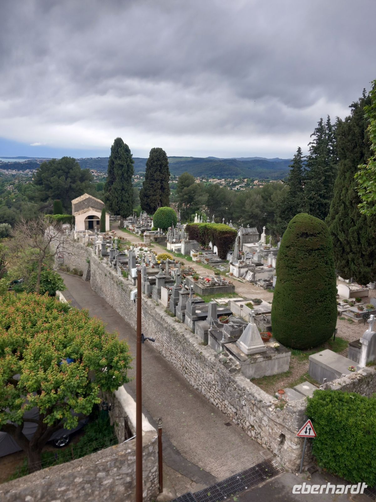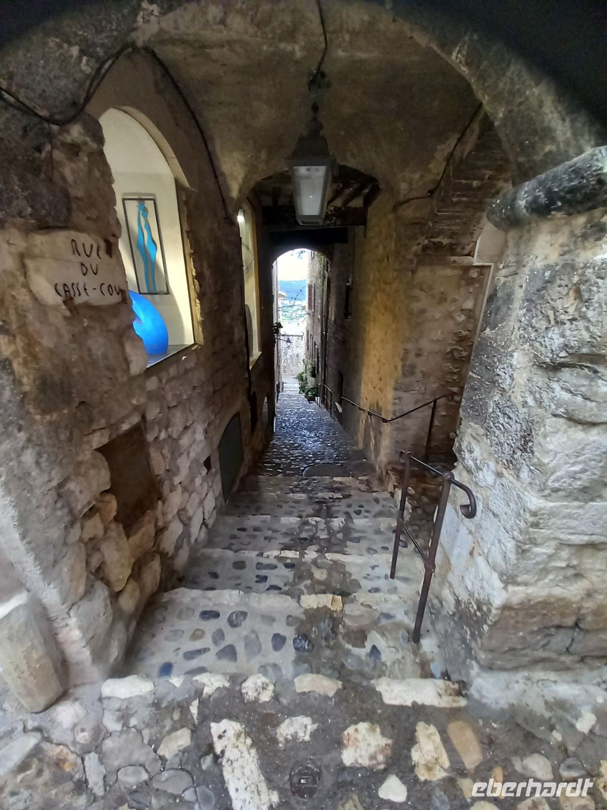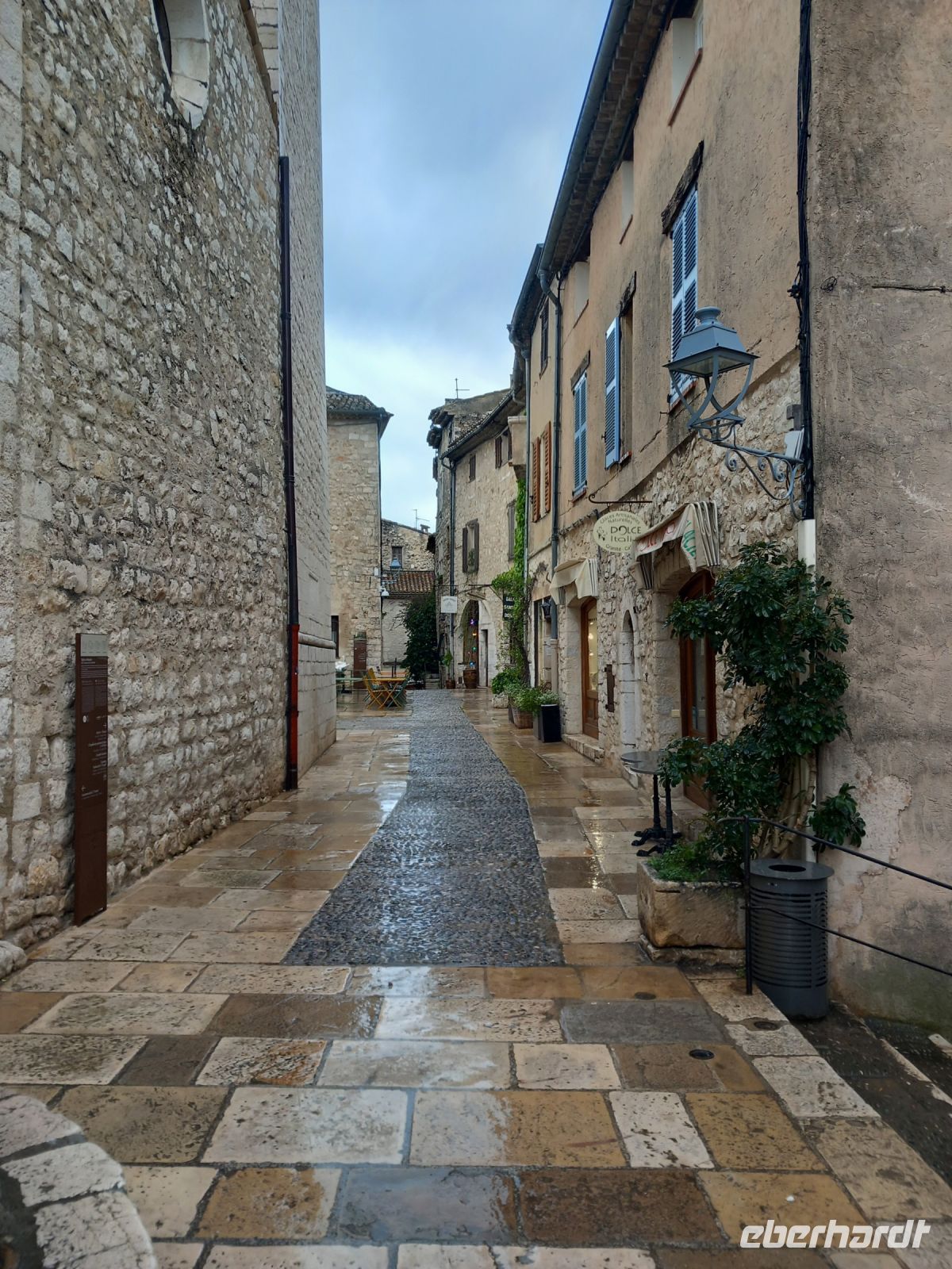 Nach der Altstadt stand eine Besuch des Künstlerdorfes Saint-Paul-de-Vence an, der aber beinahe wegen strömenden Regens in Wasser zu fallen drohte. Mit Erreichen der Stadtmauer hatte das Wetter ein Erbarmen. Die Gruppe konnte ganz in Ruhe durch die wunderschönen Gassen zum Grab von Marc Chagall gehen.