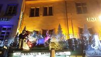 Durch die alte Stadtmauer gelangen wir in das kleine Städtchen mit vielen Fachwerkhäusern, engen Gassen, dem Rathaus im Renaissancestil, einem der schönsten Marktplätze im Elsass mit dem Odilienbrunnen, hier ist eine lebende Krippe und ein sehr schöner Weihnachtsbaum aufgestellt. Wahrzeichen von Obernai ist auch der kunstvolle Sechs Eimer Brunnen in Renaissance. Gemeinsam spazieren wir durch die Stadt und trinken Glühwein auf dem kleinen Weihnachtsmarkt, der nach Weihnachten noch geöffnet hat. Gegen Mittag setzen wir unsere Fahrt fort nach Colmar, drittgrößte Stadt im Elsass. Unser Besuch in Colmar beginnt mit einer Stadtführung, die ich mit den Gästen durch die schönsten Ecken der „Perle des Elsass" wie man Colmar auch nennt, unternehme.Viele Gebäude sind geschmückt wie im Märchen, so sehen wir diese Stadt, in der Bartholdi das Licht der Welt erblickte, der Schöpfer der New Yorker Freiheitsstatue. Fünf Märkte in der Altstadt mit üppiger Dekoration und spektakulärer Beleuchtung locken jährlich zur Adventszeit tausende Besucher aus Deutschland, ganz Frankreich, der Schweiz aber auch aus den USA und viele Asiaten an. Ein besonderes Plätzchen befindet sich am Fluss, das Klein Venedig von Colmar „Petite Venise". Päckchen beladene Boote und liebevolle Dekoration sehen wir hier. Zurück spazieren wir gemeinsam durchs Gerberviertel vorbei an vielen kleinen Restaurants und Geschäften, immer darauf achtend, keinen unserer Reisegäste zu verlieren, denn es ist voll in den Gassen von Colmar. Mit den Gästen, die im Unterlindenmuseum unterwegs waren, mache ich eine Extra Führung durch Colmar. Überwältigt von der Atmosphäre hier auf den Elsässer Weihnachtsmärkten mit fantastischen Dekorationen an den Häusern, kehren wir zum Bus zurück. Die anschließende Weinverkostung in der Domaine Dela Ville De Colmar ist ein krönender Abschluss unseres Ausfluges auf der Weinstraße. Nach der Führung wird uns als Erstes ein Sekt ausgeschenkt, danach ein Weißwein gemischt aus mehreren Trauben und zum Abschluss ein Gewürztraminer. Nach Einkäufen geht die Fahrt zurück nach Straßburg.